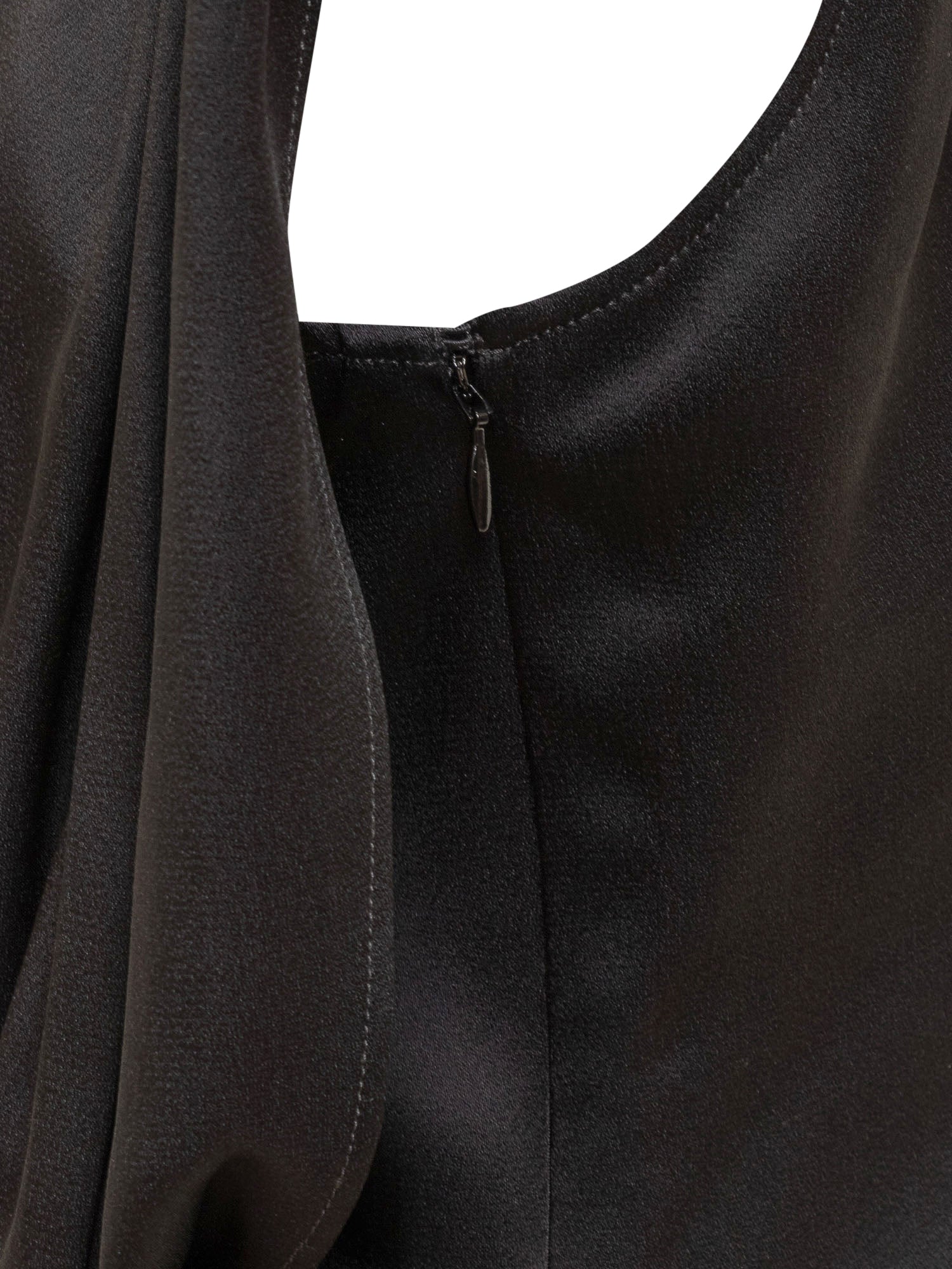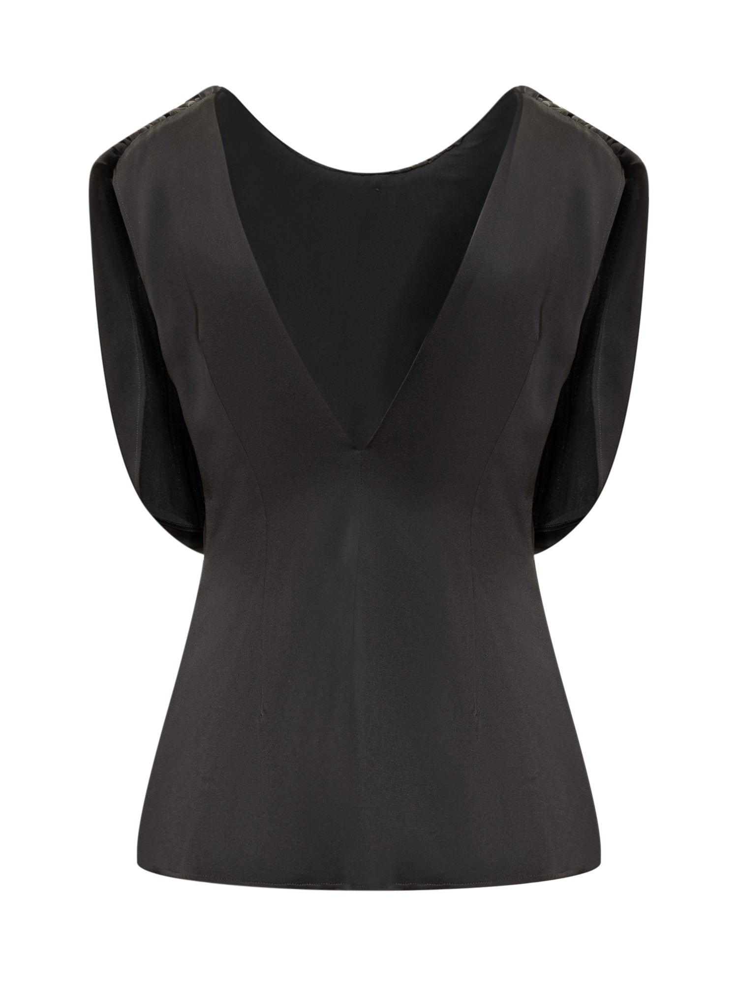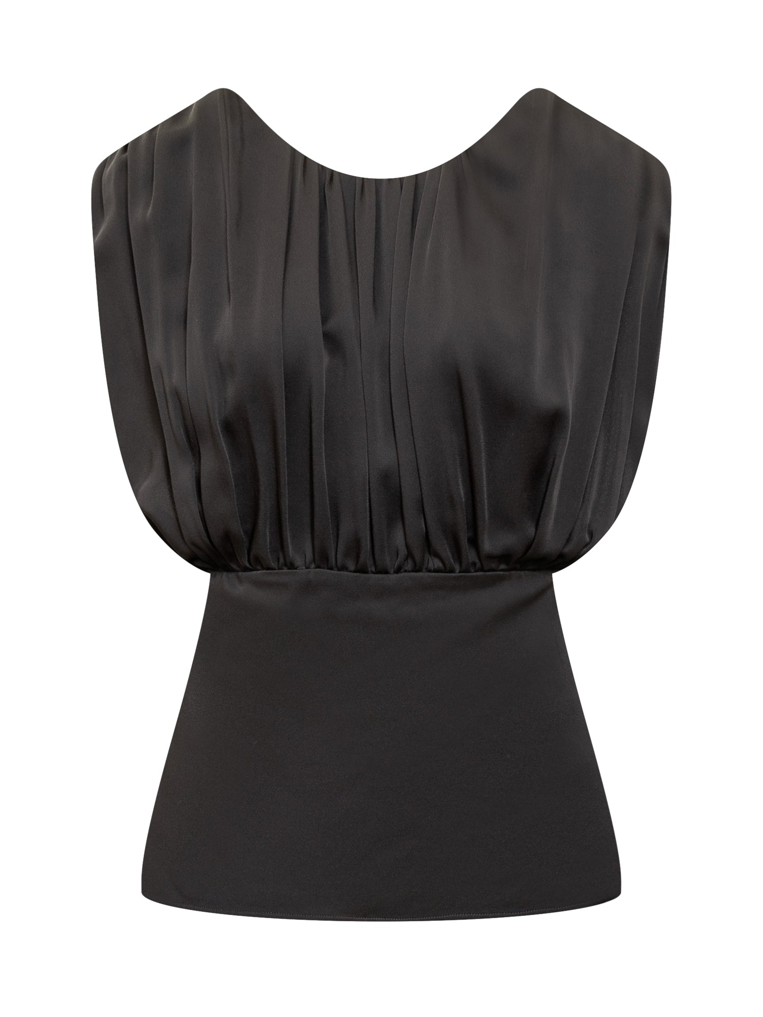 Top smanicato in satin di viscosa. Girocollo. Chiusura con zip laterale. Scollo a V sul retro. Dettaglio plastron arricciato sul davanti. Vestibilità slim.