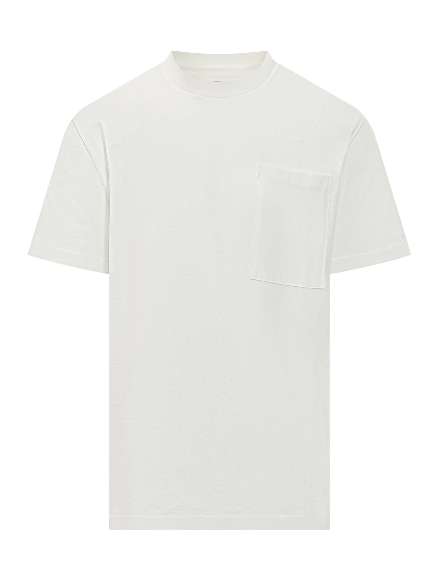 T-shirt maniche corte. Tasca applicata sul davanti. Orli a costine.