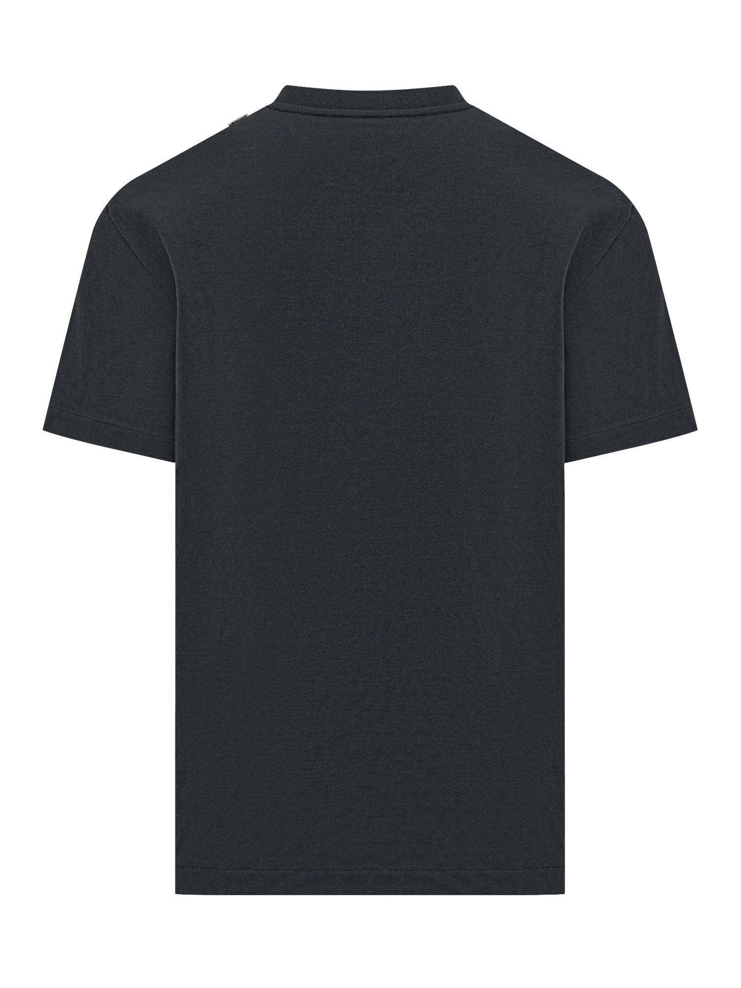 T-shirt maniche corte. Tasca applicata sul davanti. Orli a costine.