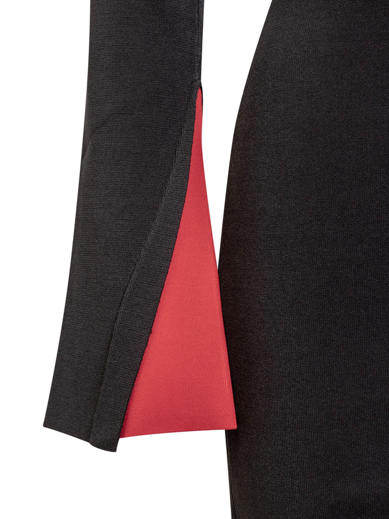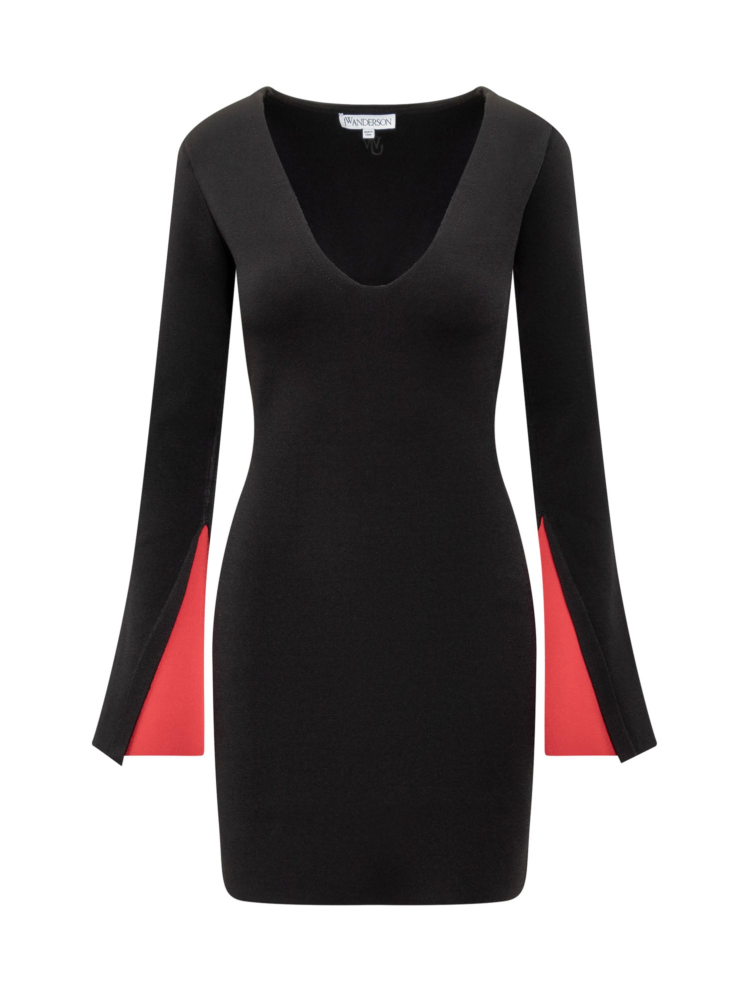 Abito midi a maniche lunghe. Scollo a V. Maniche svasate con dettaglio a contrasto. Logo JWA sul retro.