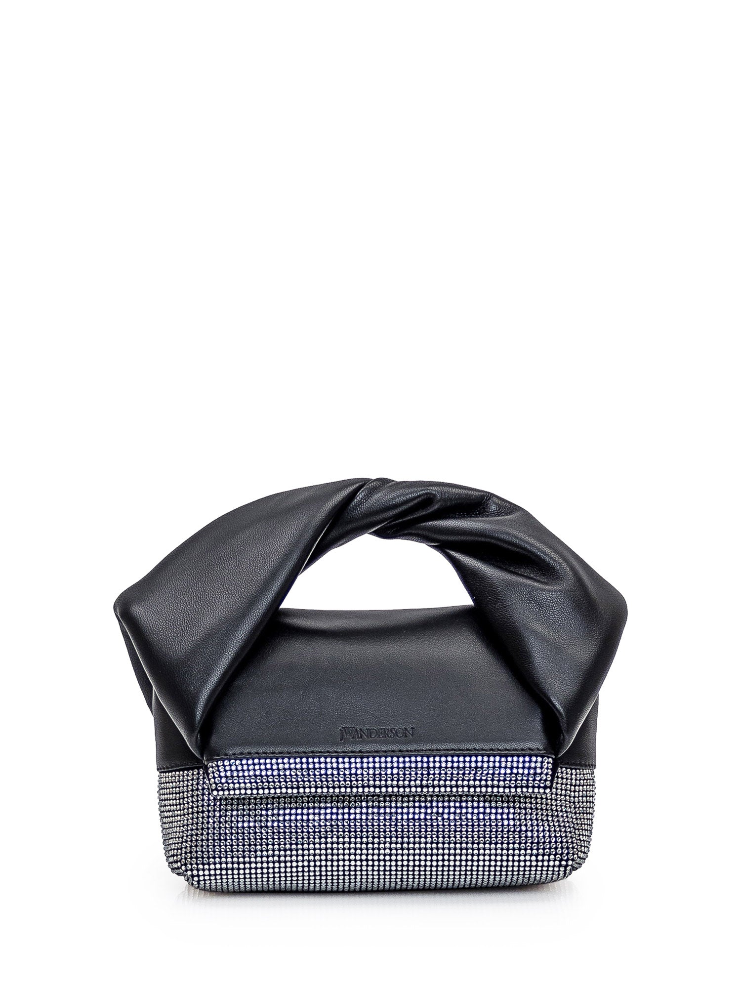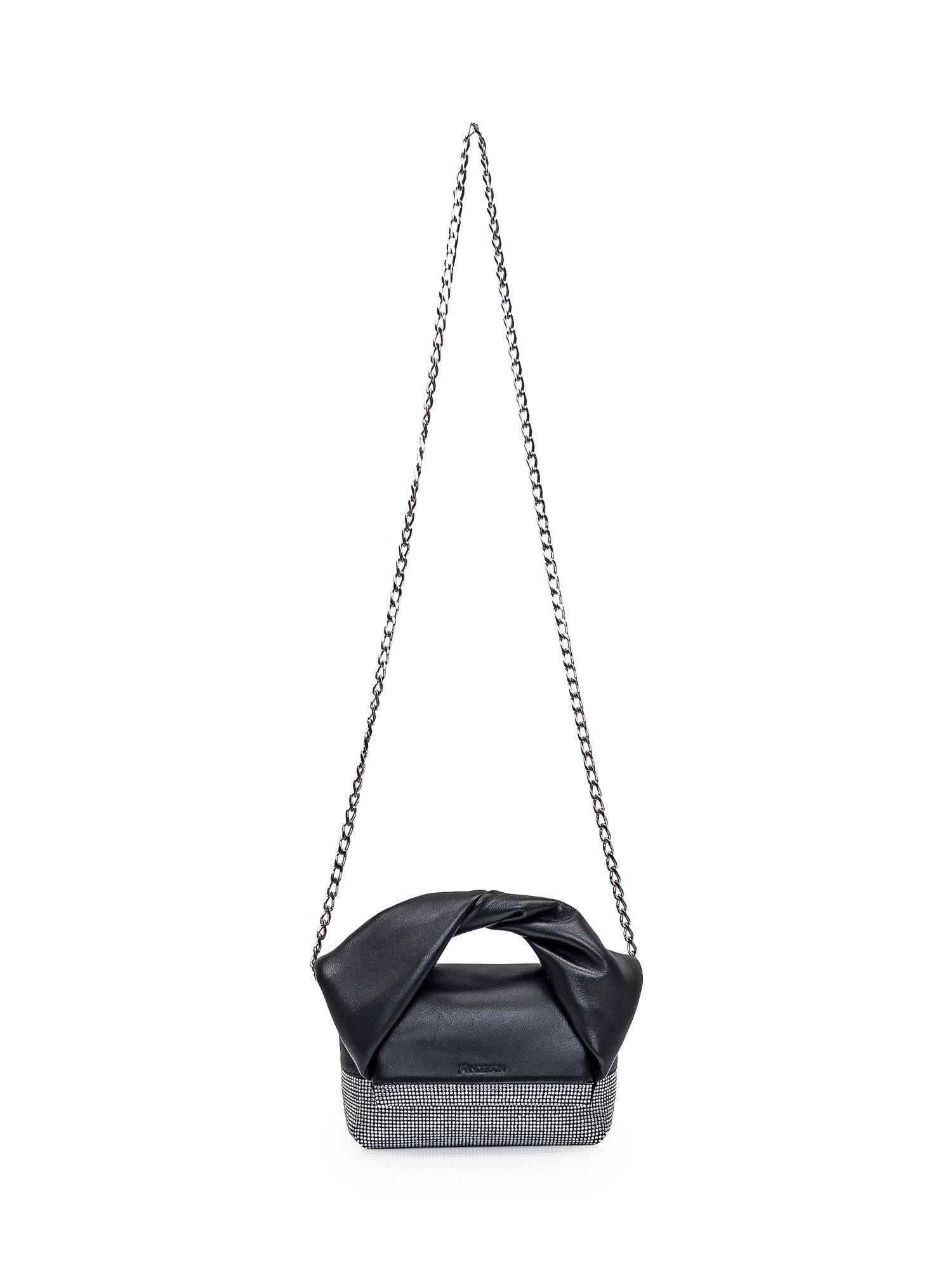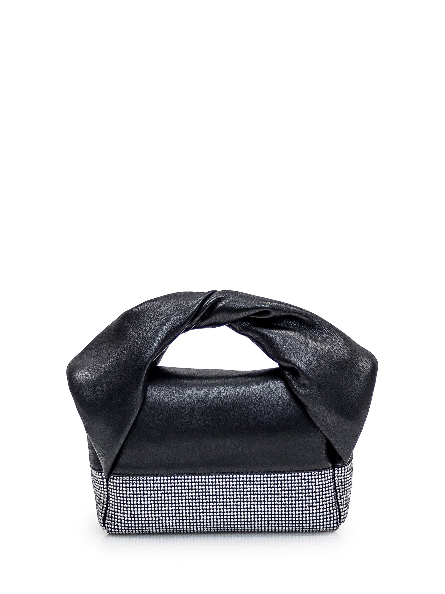 Borsa a mano nera in pelle con strass sul fondo. Un manico in pelle. Tracolla a catena rimovibile. Chiusura con patta con magnete. Logo sul davanti.