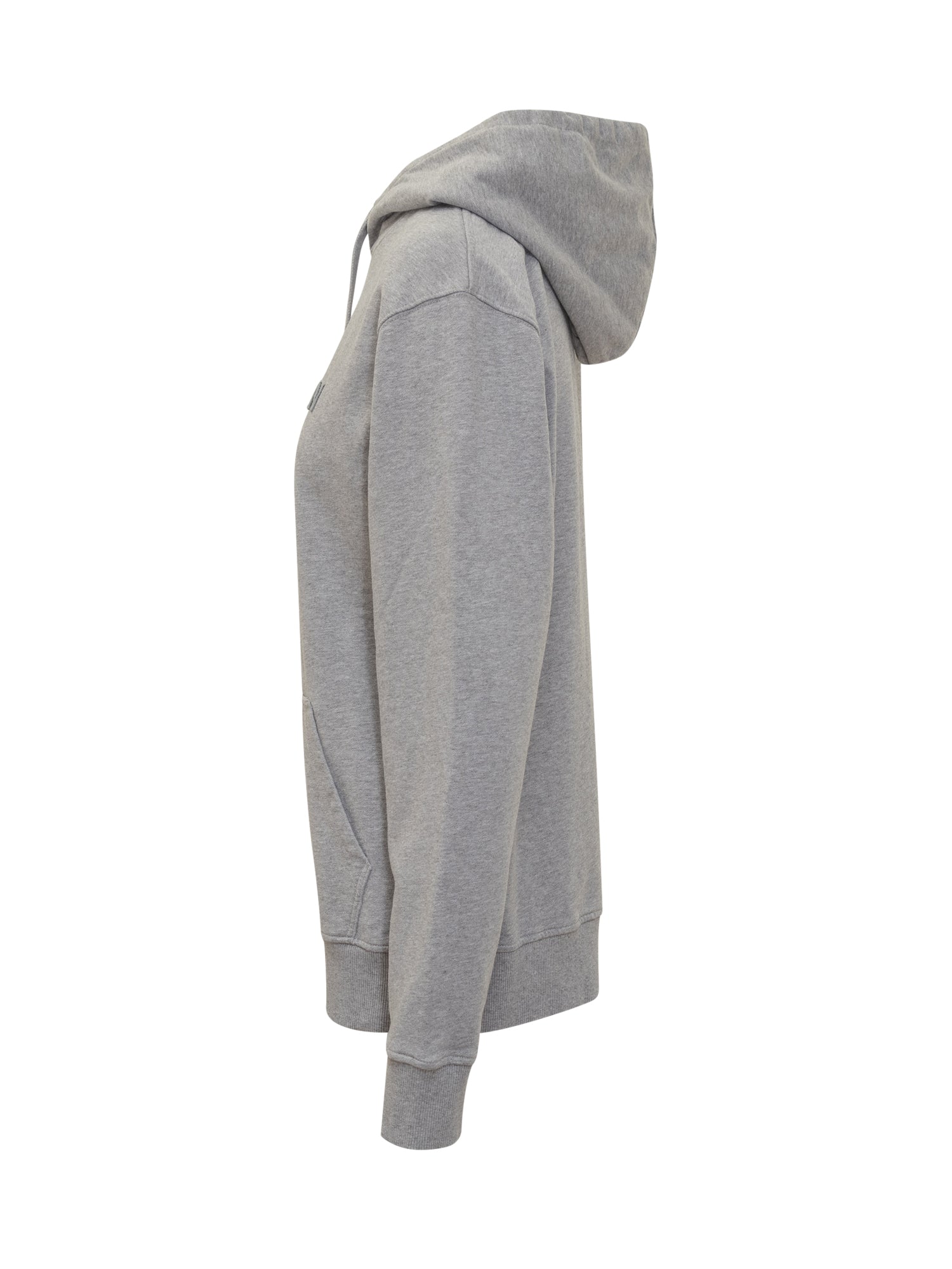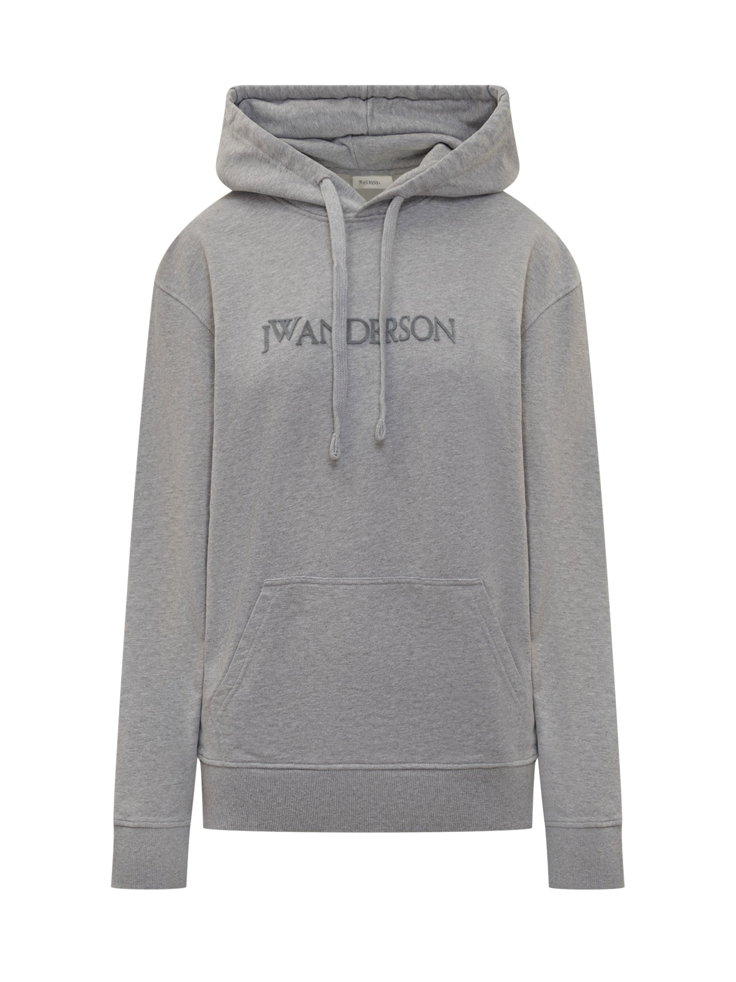 Felpa grigia con cappuccio JW Anderson in morbido cotone, logo tono su tono ricamato sul petto.