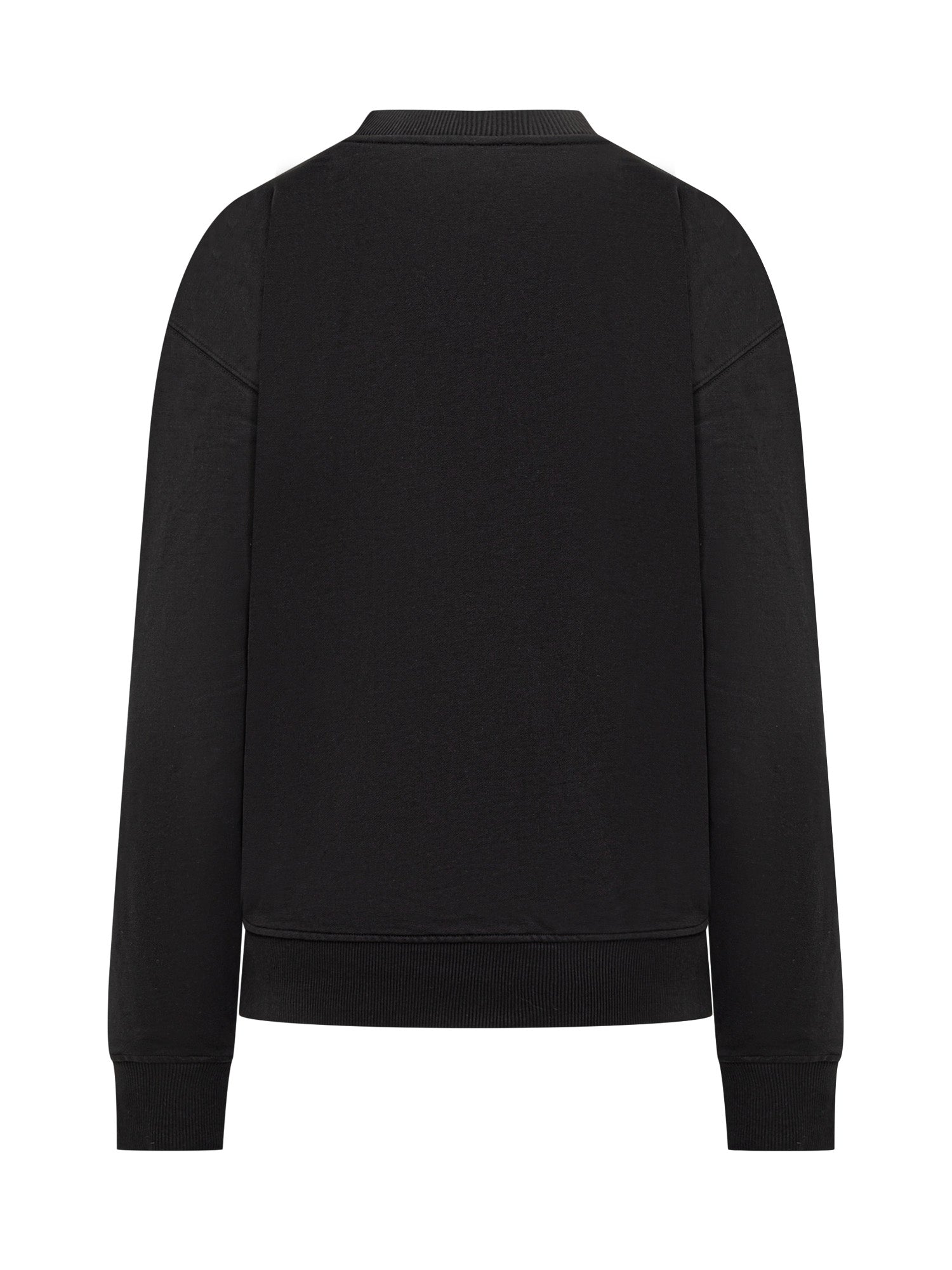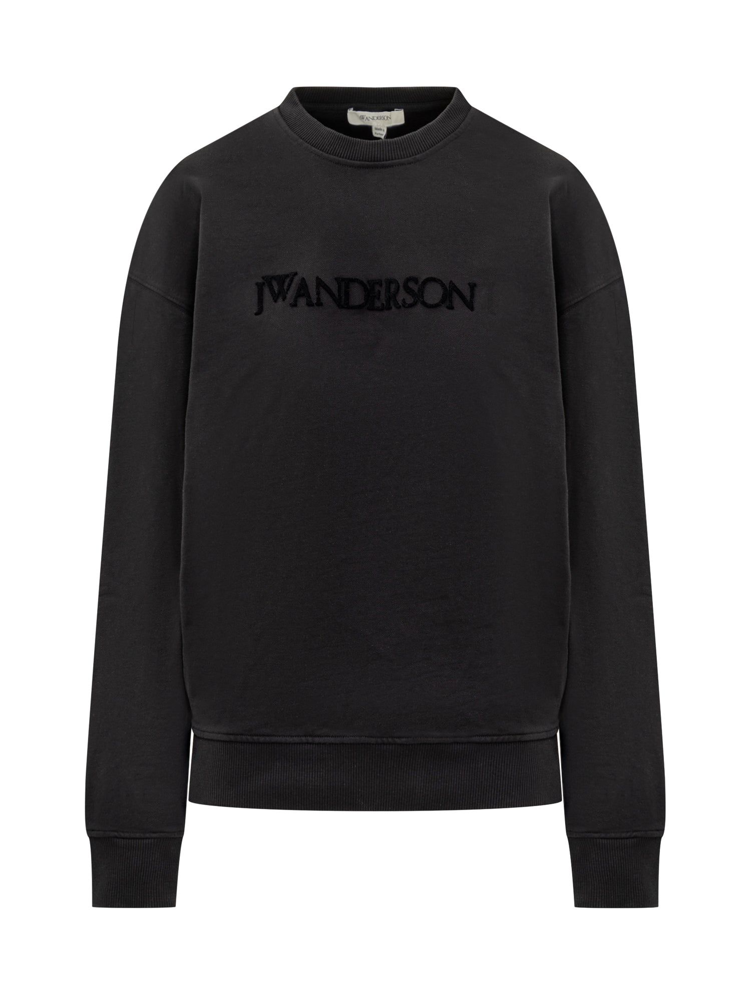 Felpa nera JW Anderson in cotone con logo tono su tono ricamato sul petto.