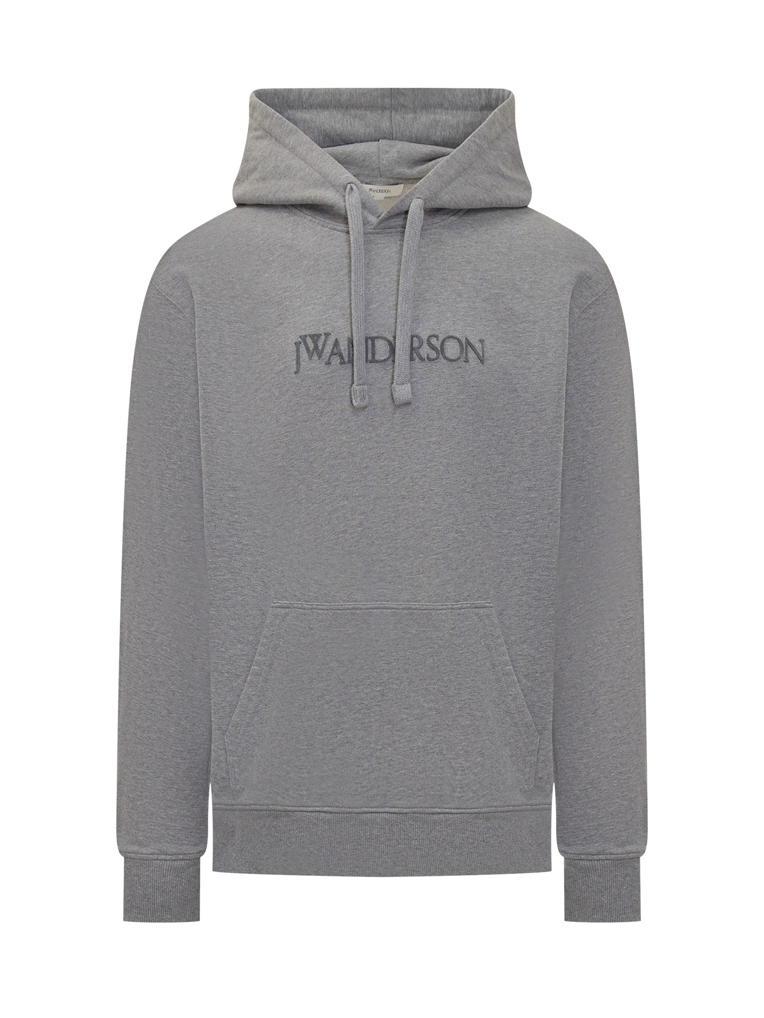 Felpa con cappuccio JW Anderson in cotone grigio con logo ricamato.