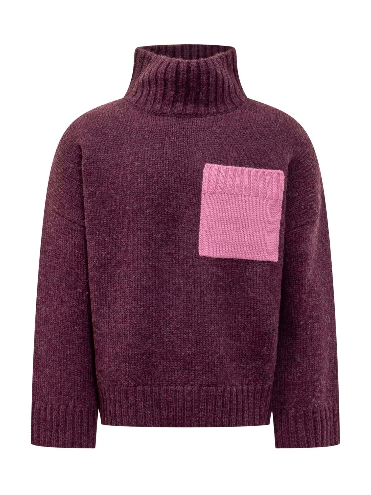 Maglia a maniche lunghe in lana misto alpaca. Collo alto. Orli a coste. Tasca sul petto. Logo ricamato sul retro.
