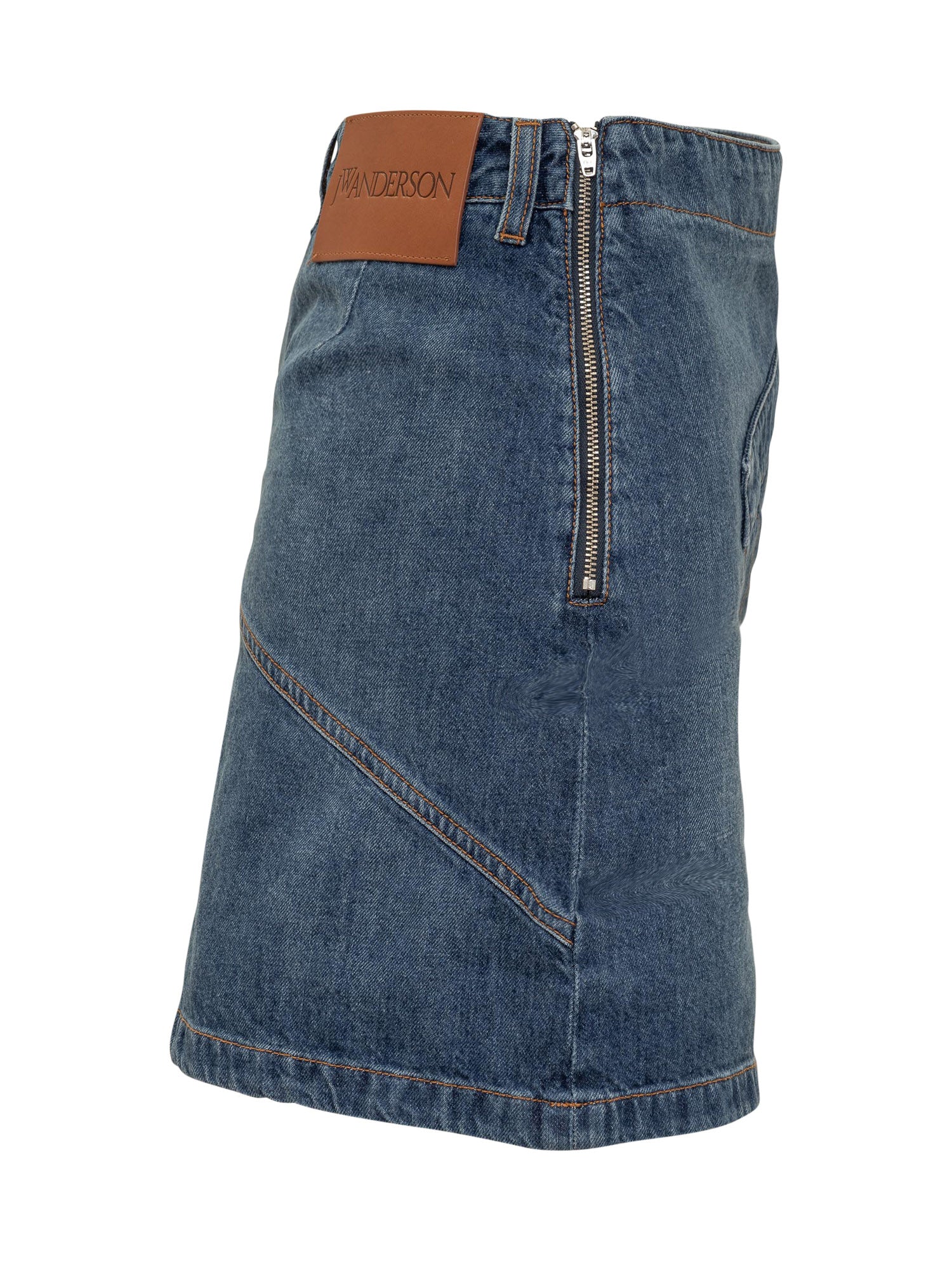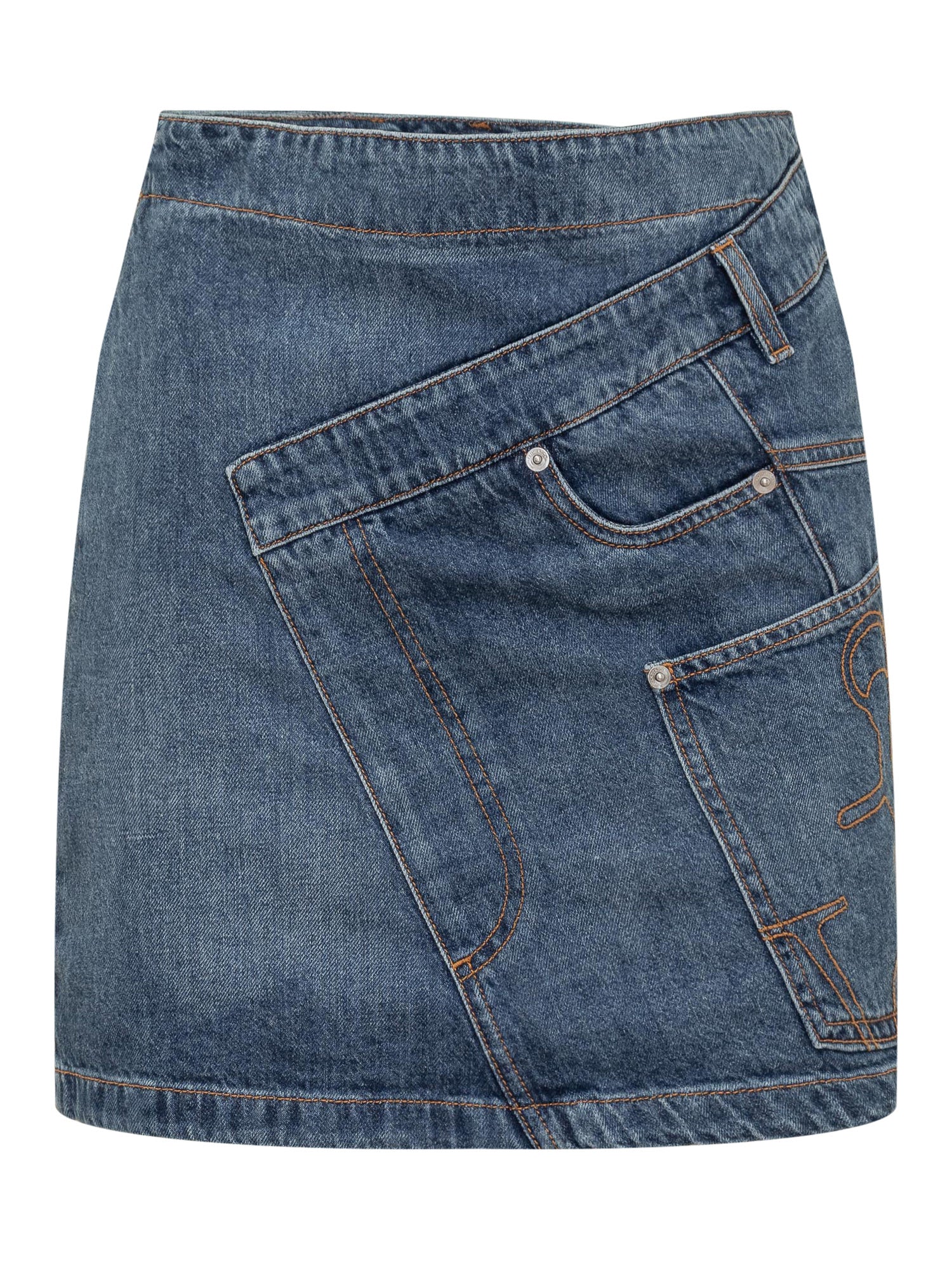 Mini gonna in denim. Chiusura con zip sul lato. Logo ancora cucito. Patch logo sul retro.