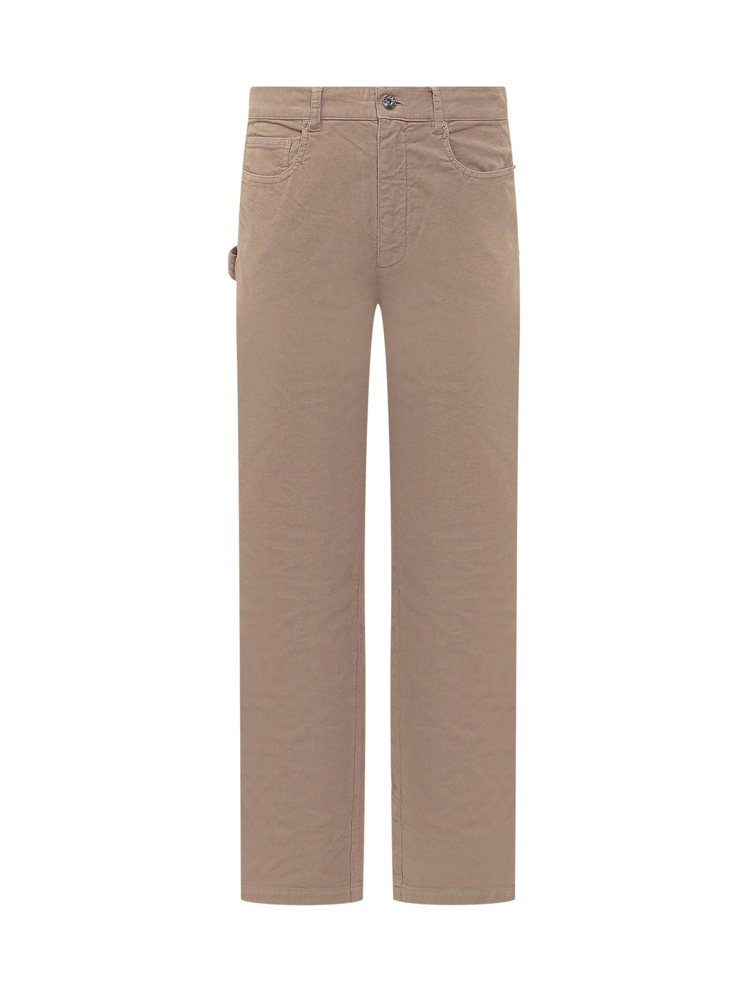 Pantaloni lunghi in velluto. Realizzati a coste a gamba dritta. Chiusura con bottone e zip. Passanti per cintura. Cinque tasche. Logo patch in pelle sul retro. Dettaglio etichetta workwear sul lato. Vestibilità morbida.
