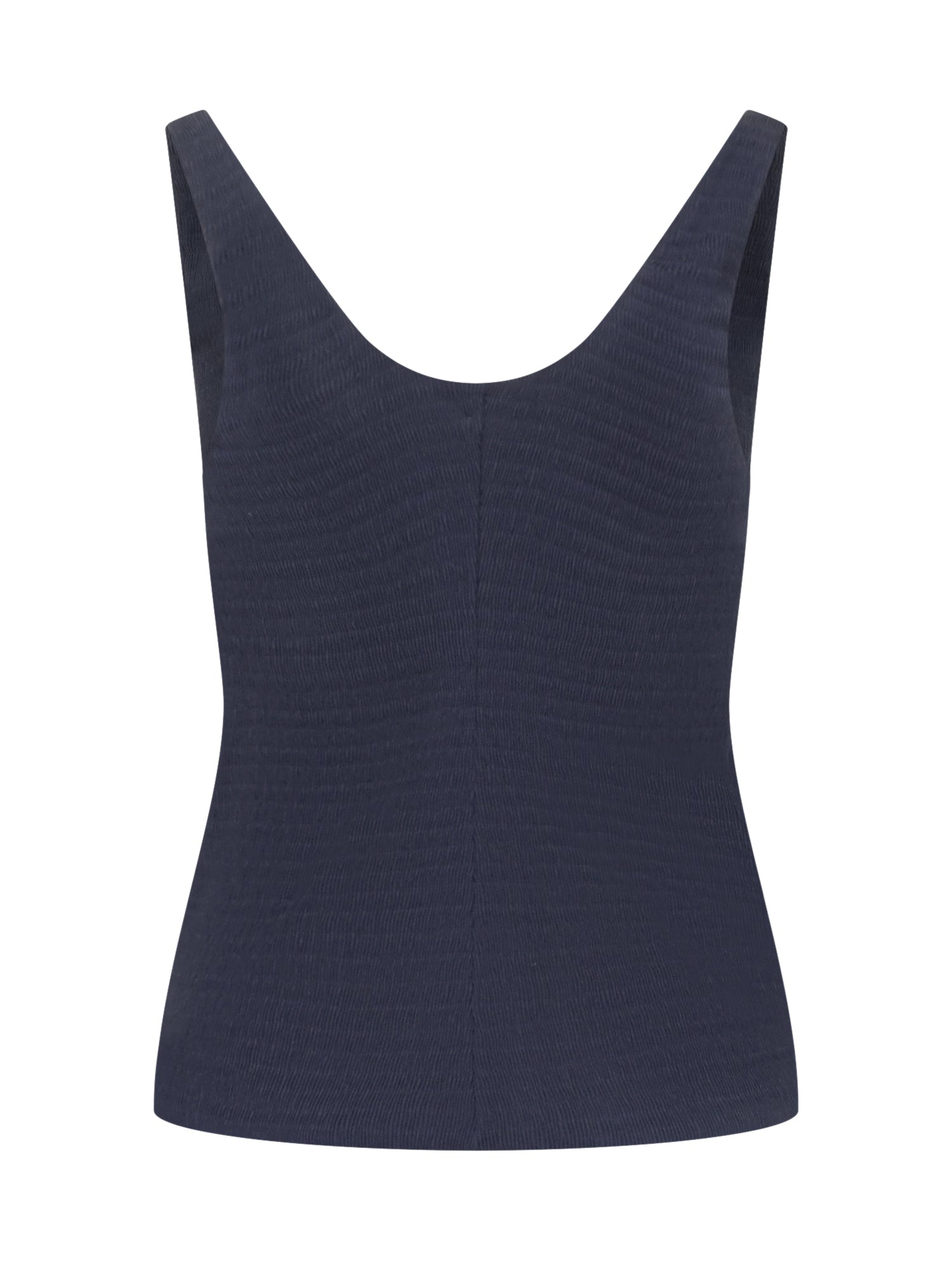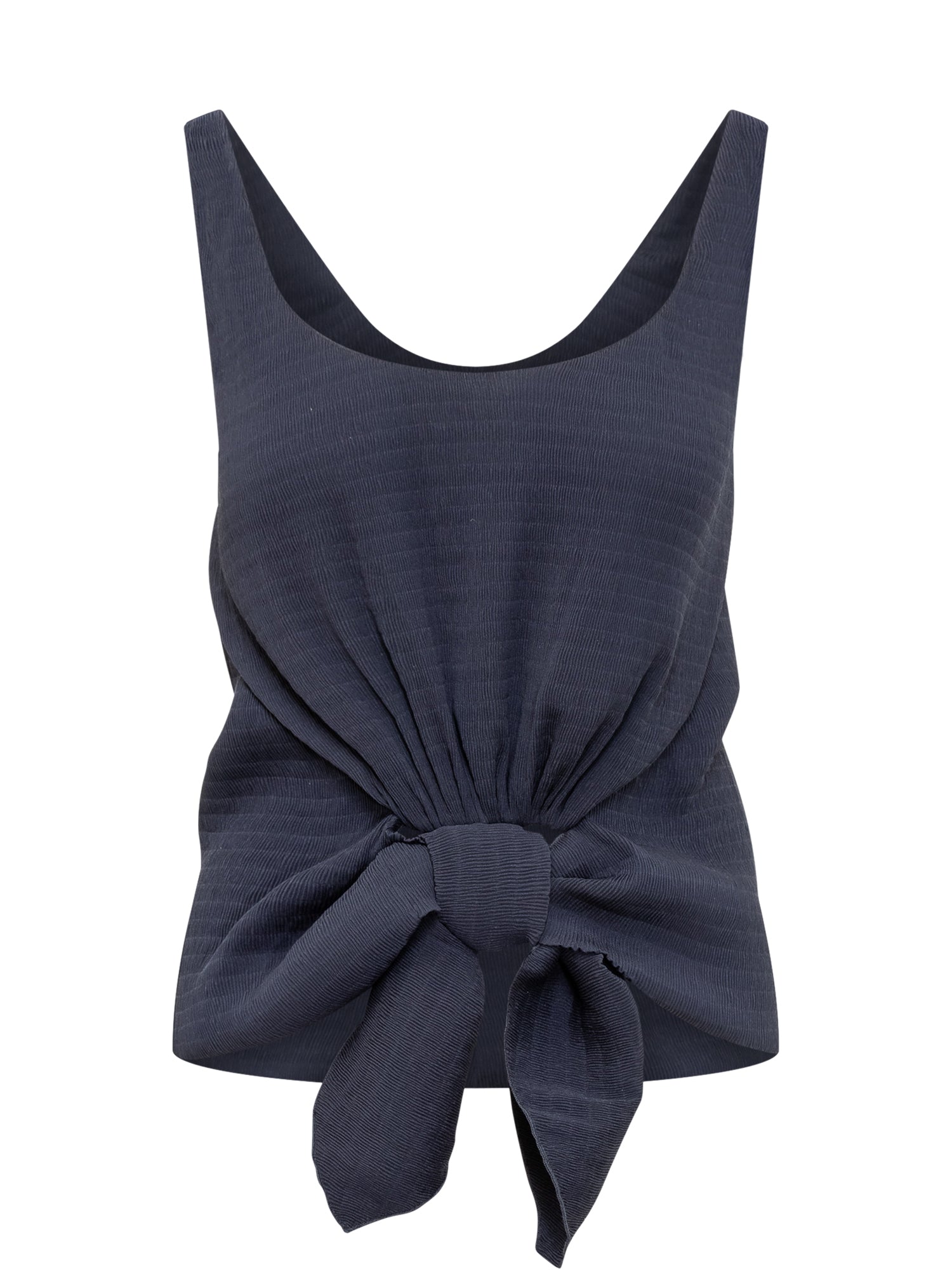 Top blu con spalline. Dettaglio annodato sull'orlo. Scollatura ampia.