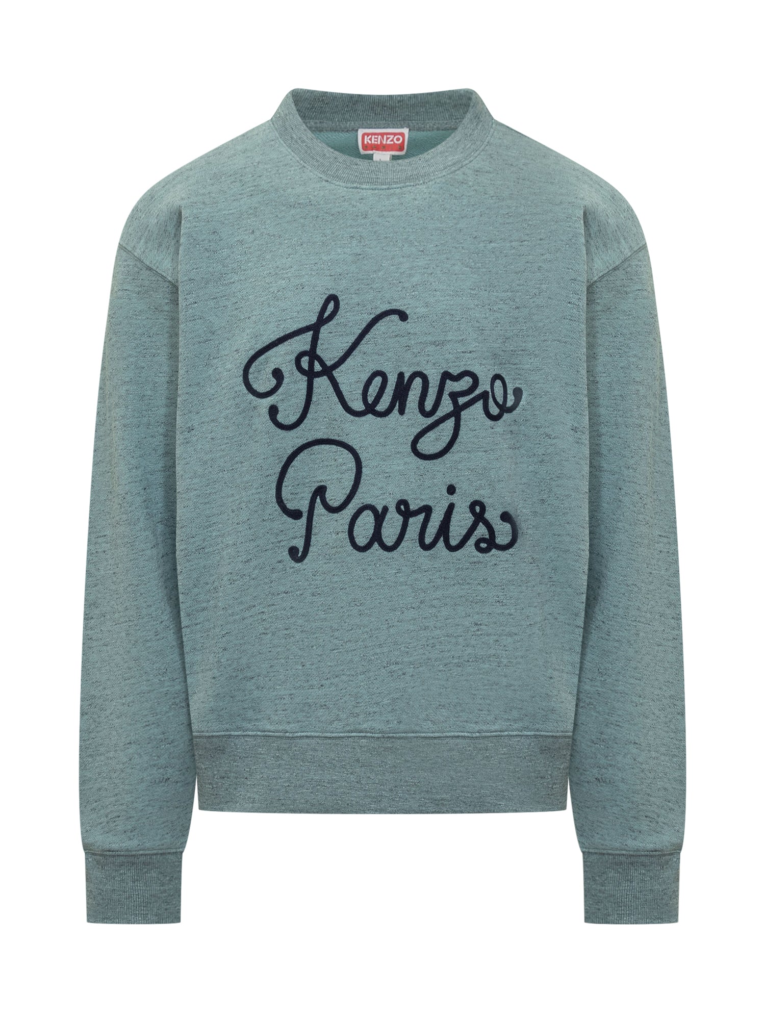 Felpa Kenzo in cotone azzurro con logo Kenzo Paris ricamato a contrasto sul davanti.