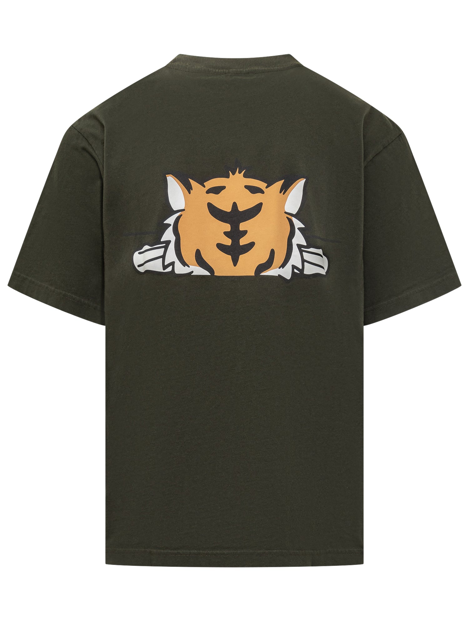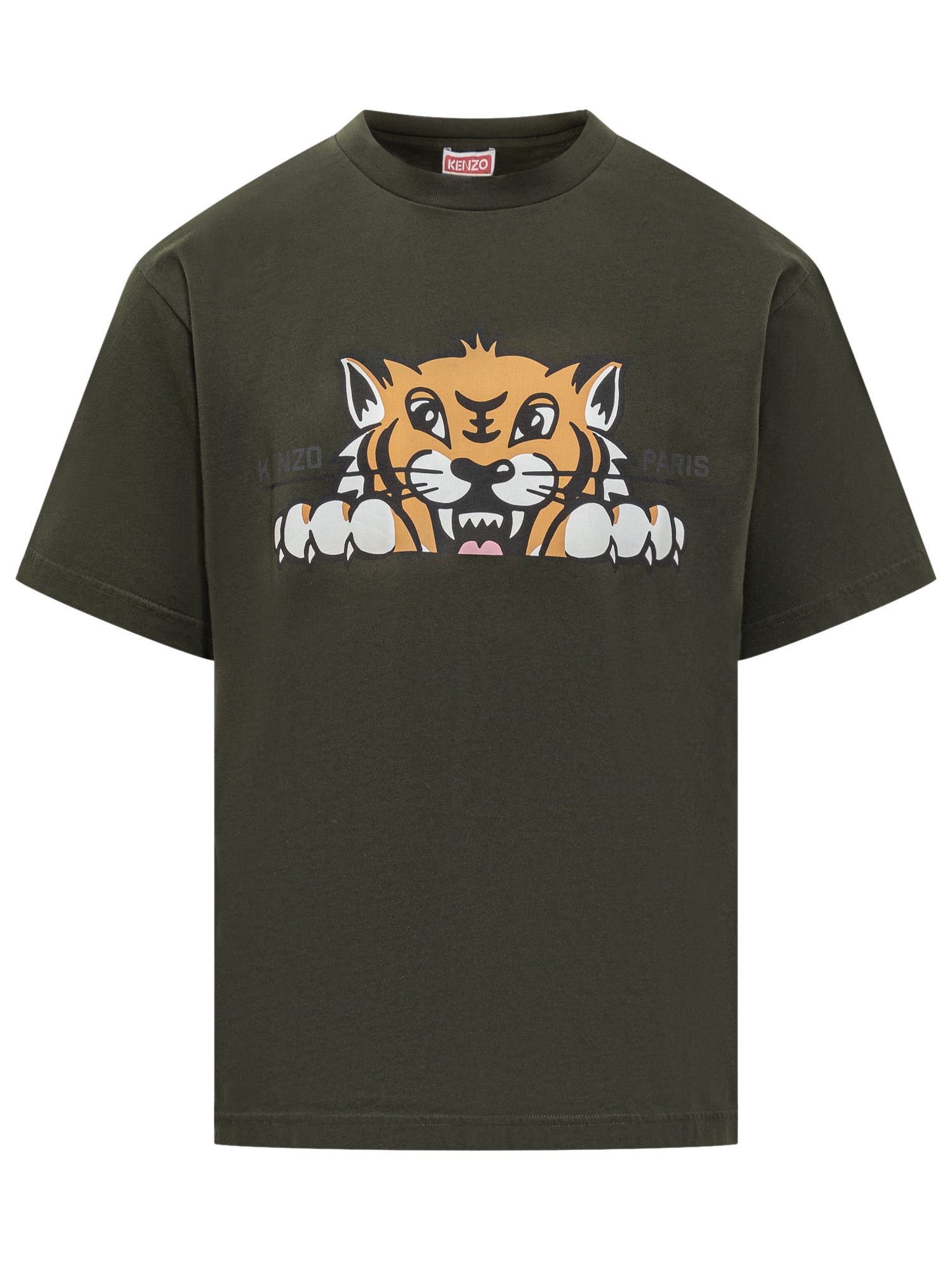 T-shirt Kenzo in cotone verde con iconica stampa tigre frontale multicolore.