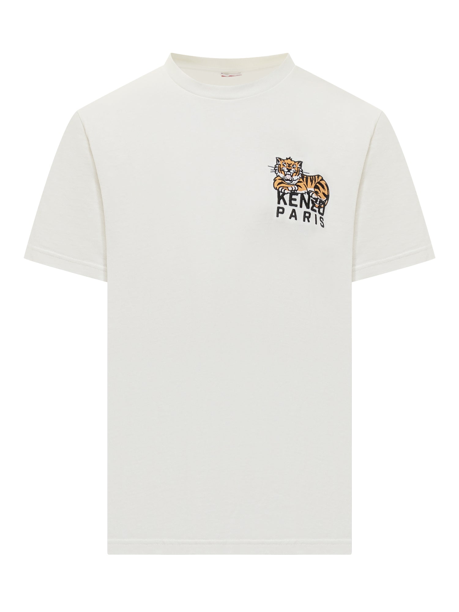 White Kenzo Paris women's t-shirt with iconic embroidered tiger on chest.