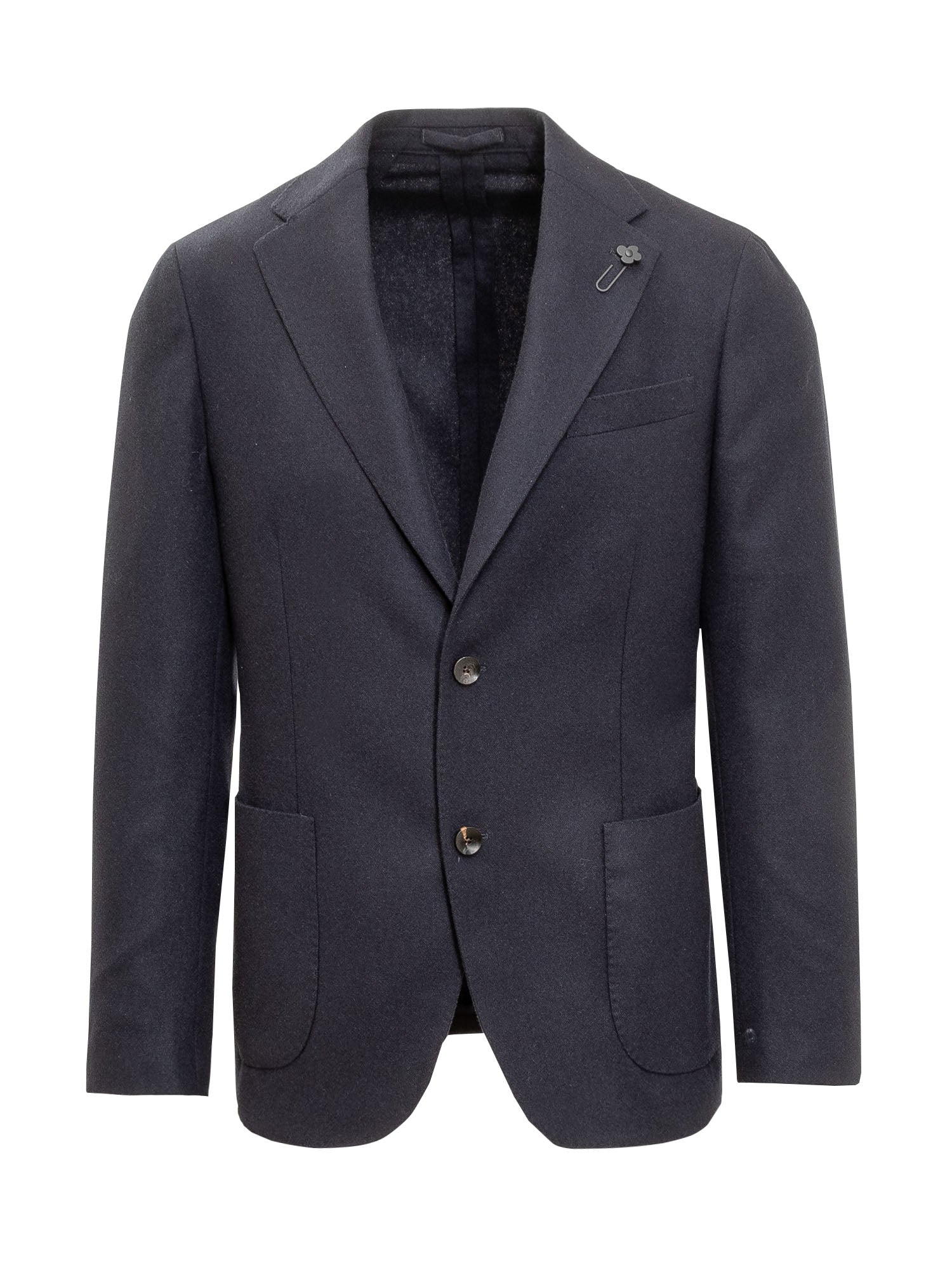 Blazer blu. Maniche lunghe. Chiusura monopetto con bottoni. Collo revers. Tasche applicate. Taschino sul petto. Spacchi sui fianchi. Spilla logo all'occhielo.