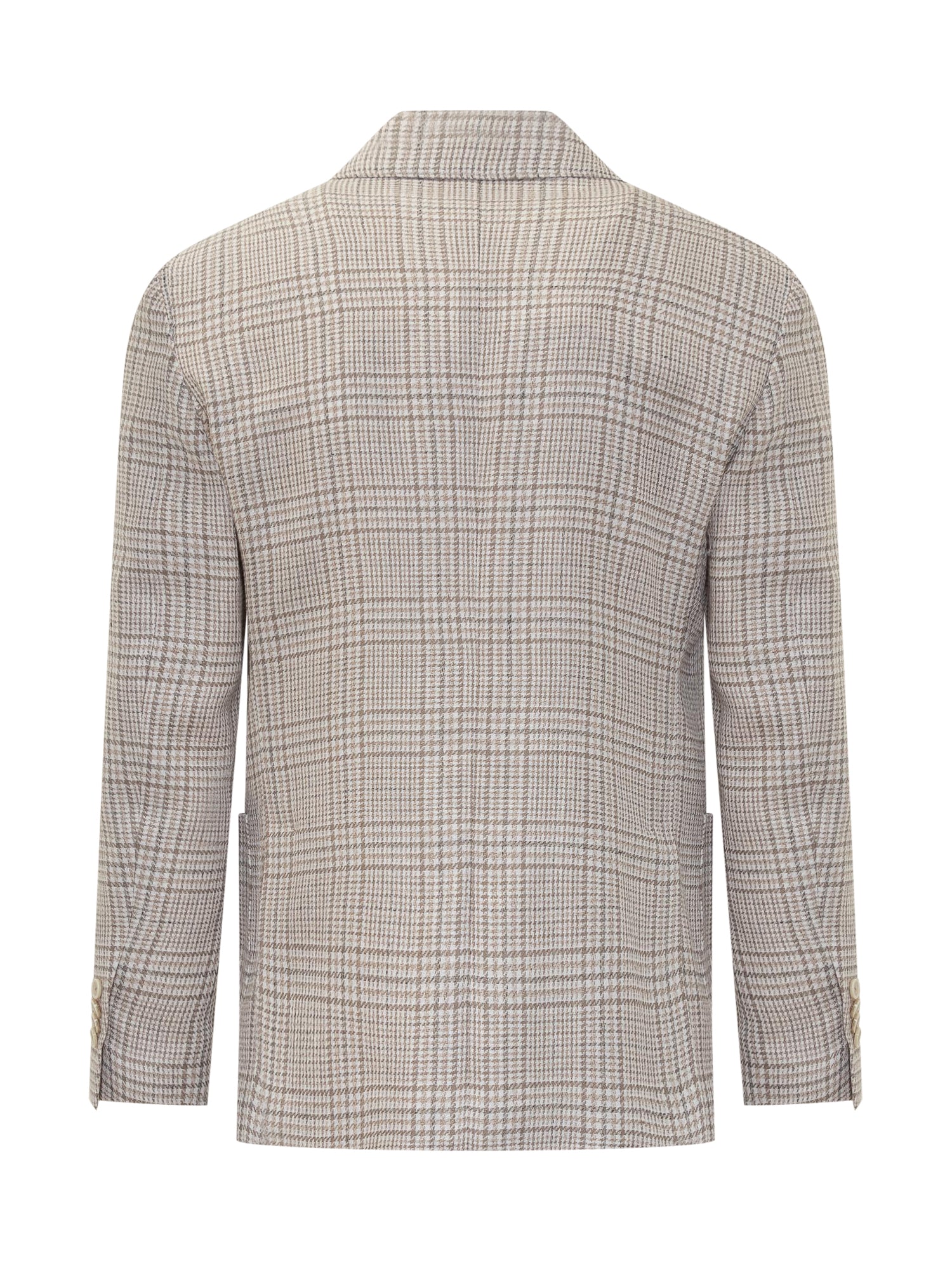 Collo rever. Monopetto. Tasche applicate. Taschino a filo. Spacchi sul retro.