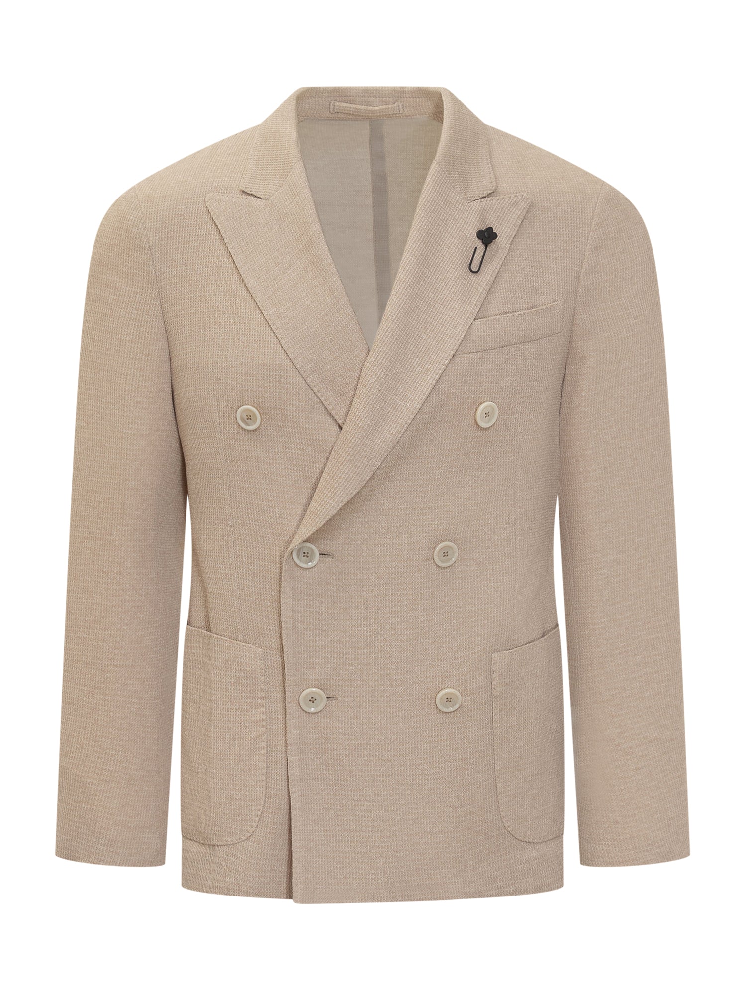 Collo rever. Doppipetto. Tasche applicate. Taschino a filo. Spacchi sul retro.