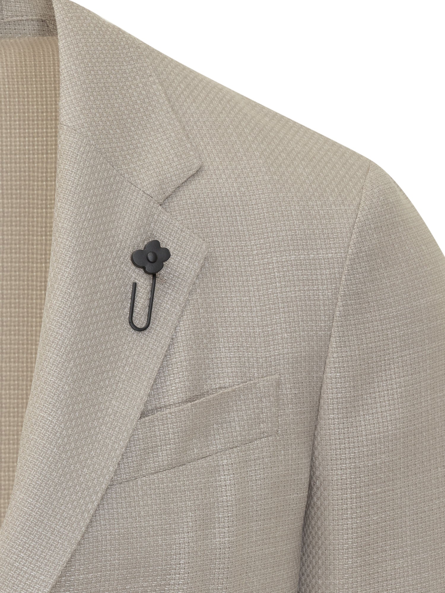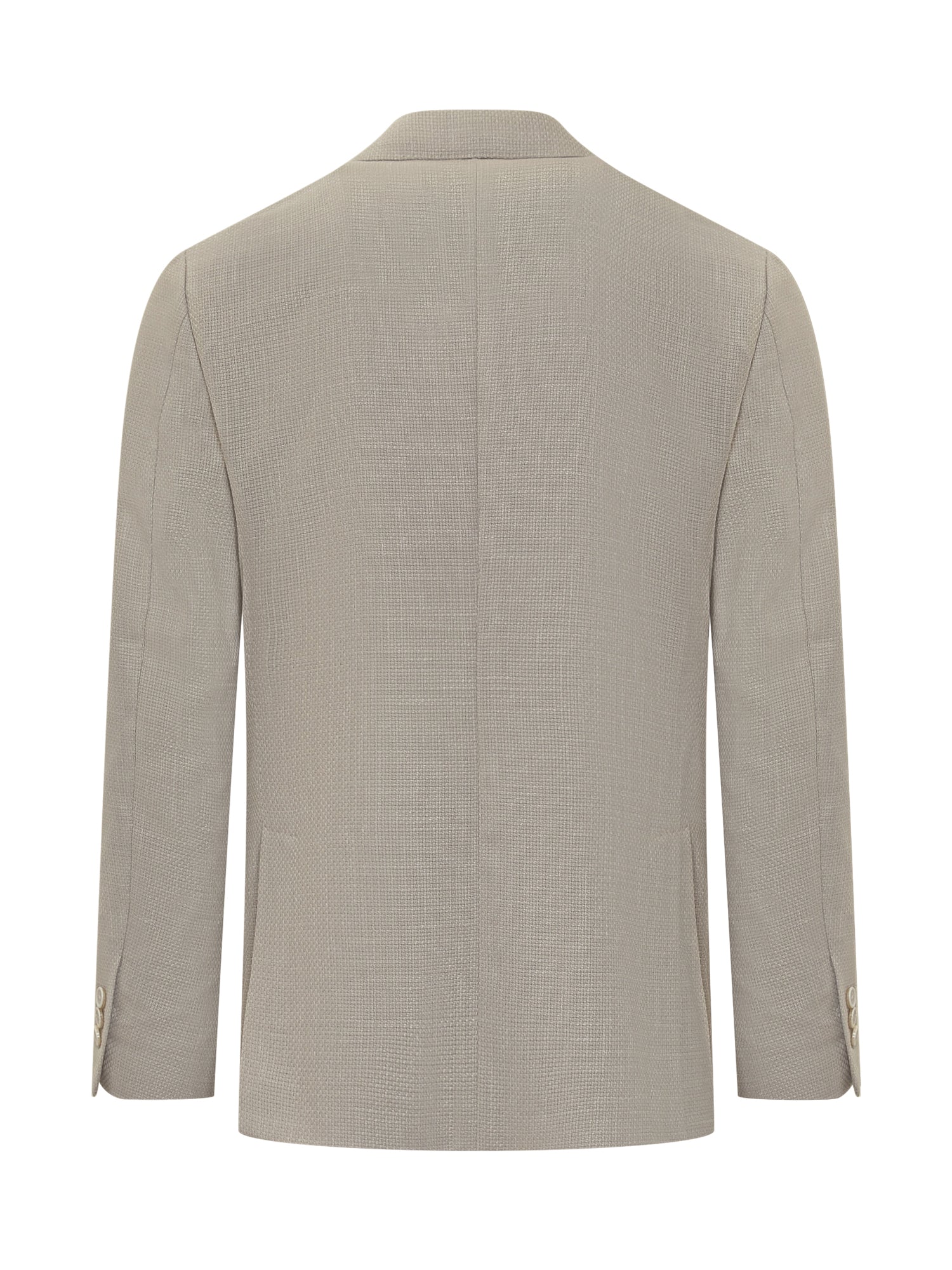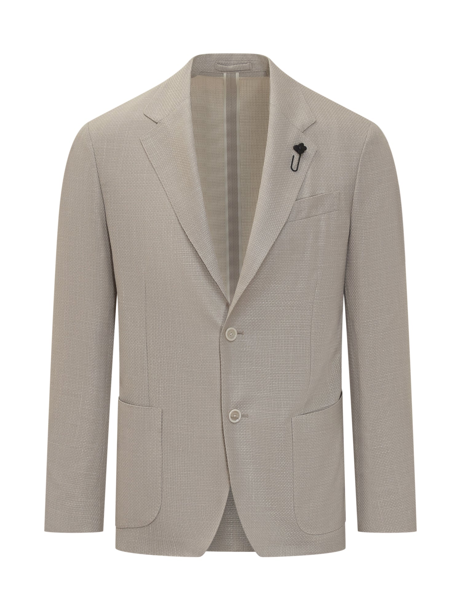 Collo rever. Monopetto. Tasche applicate. Taschino a filo. Spacchi sul retro.