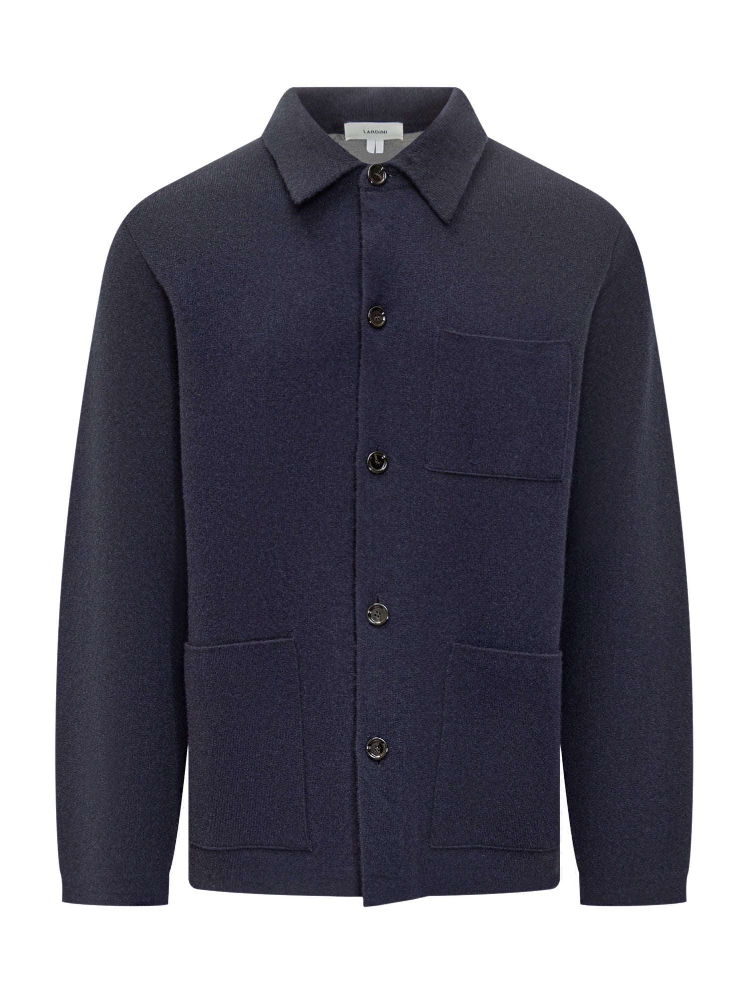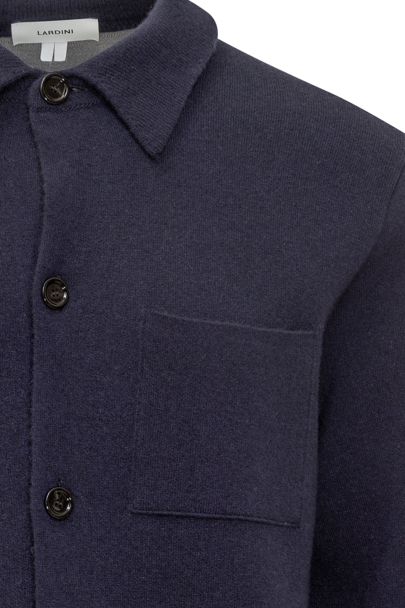 Giacca in maglia Lardini blu con chiusura monopetto. Design essenziale con colletto classico, tasche applicate.