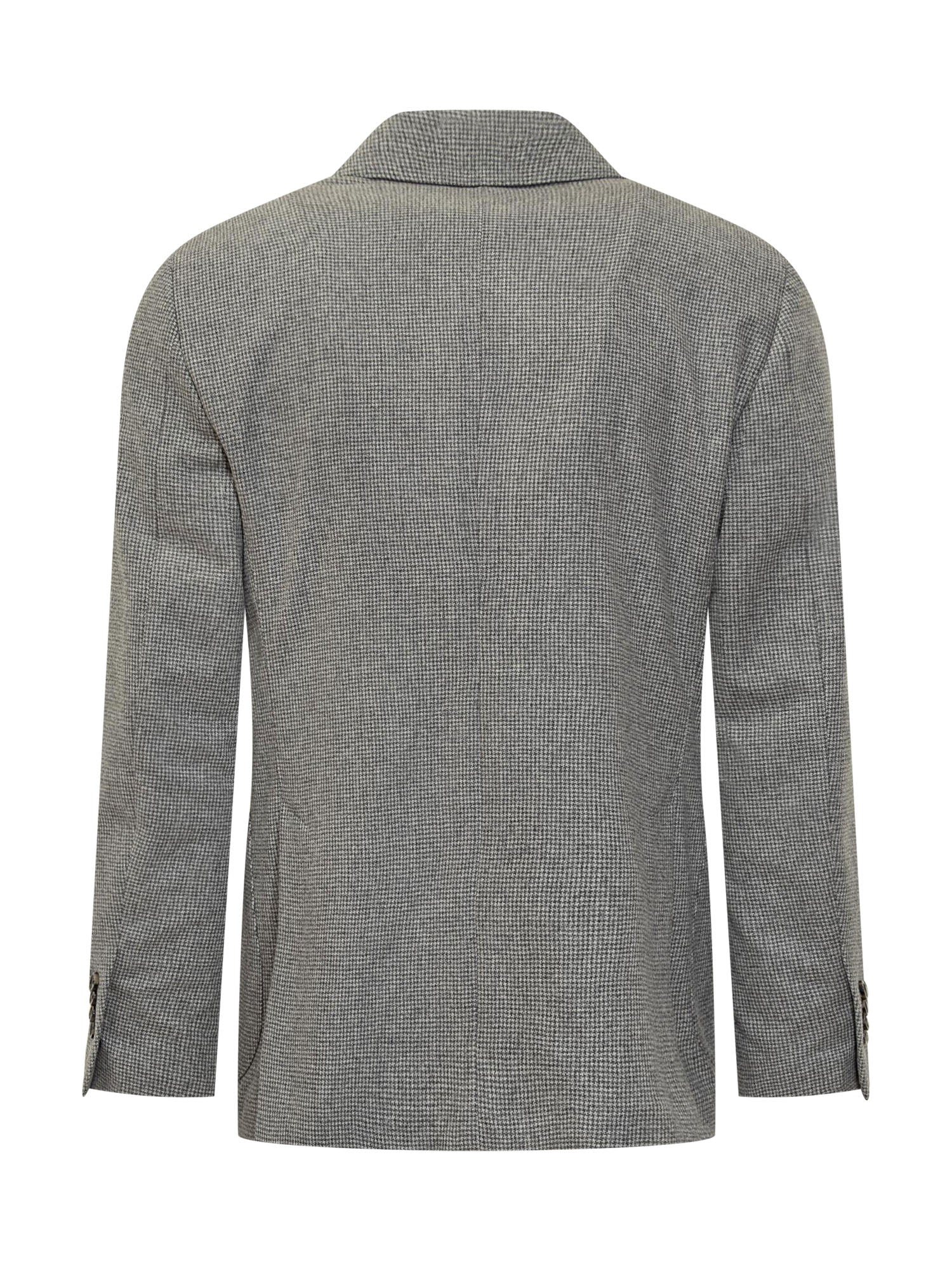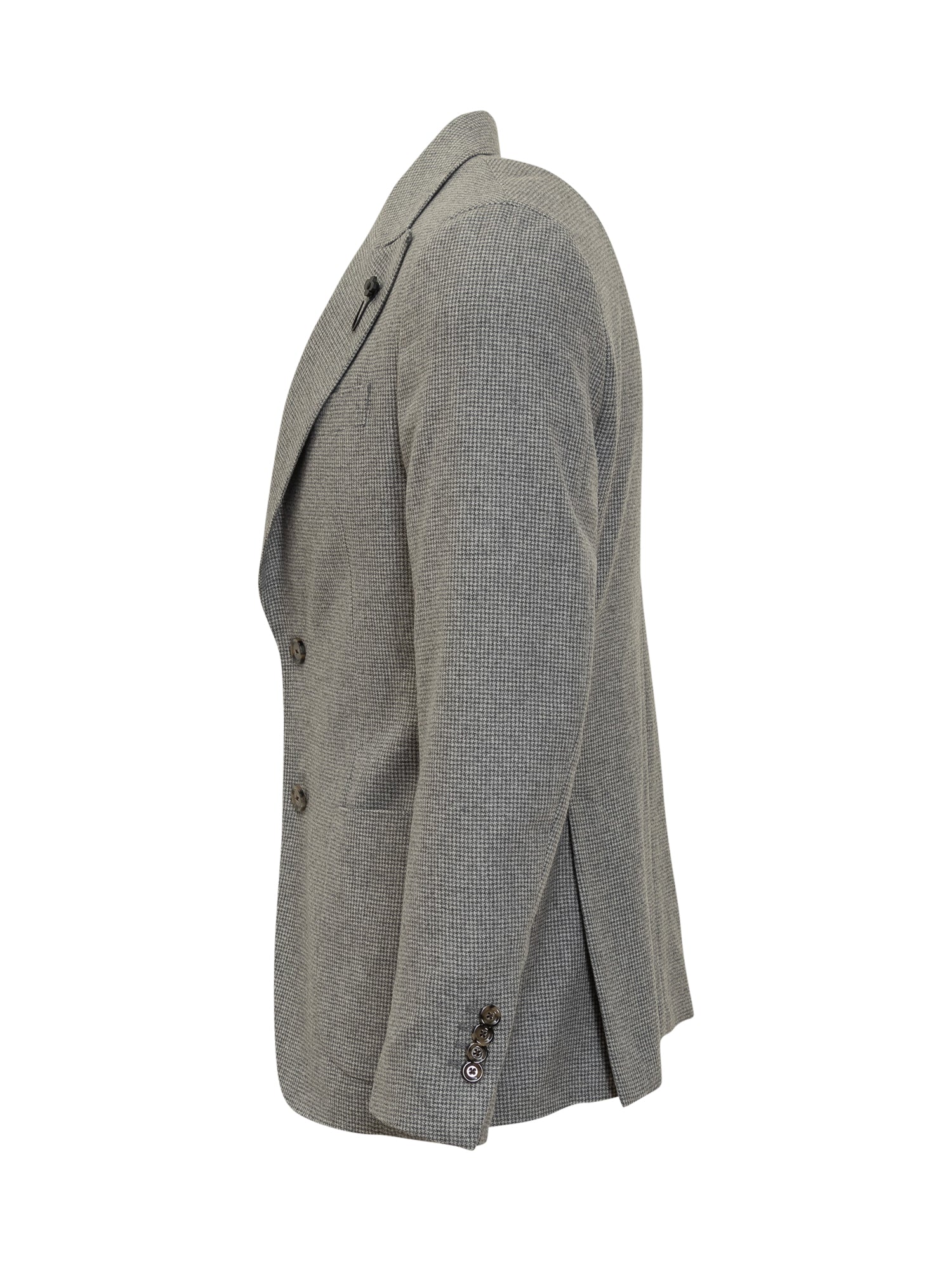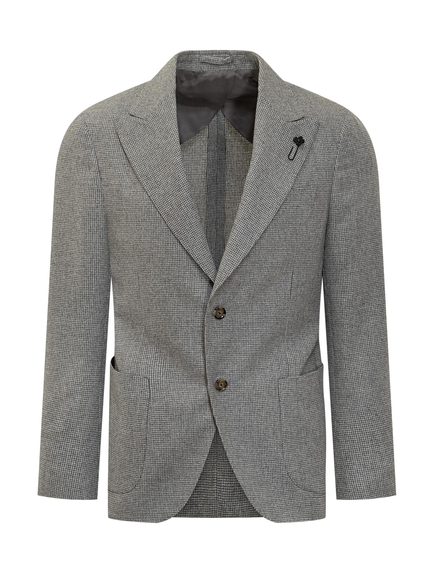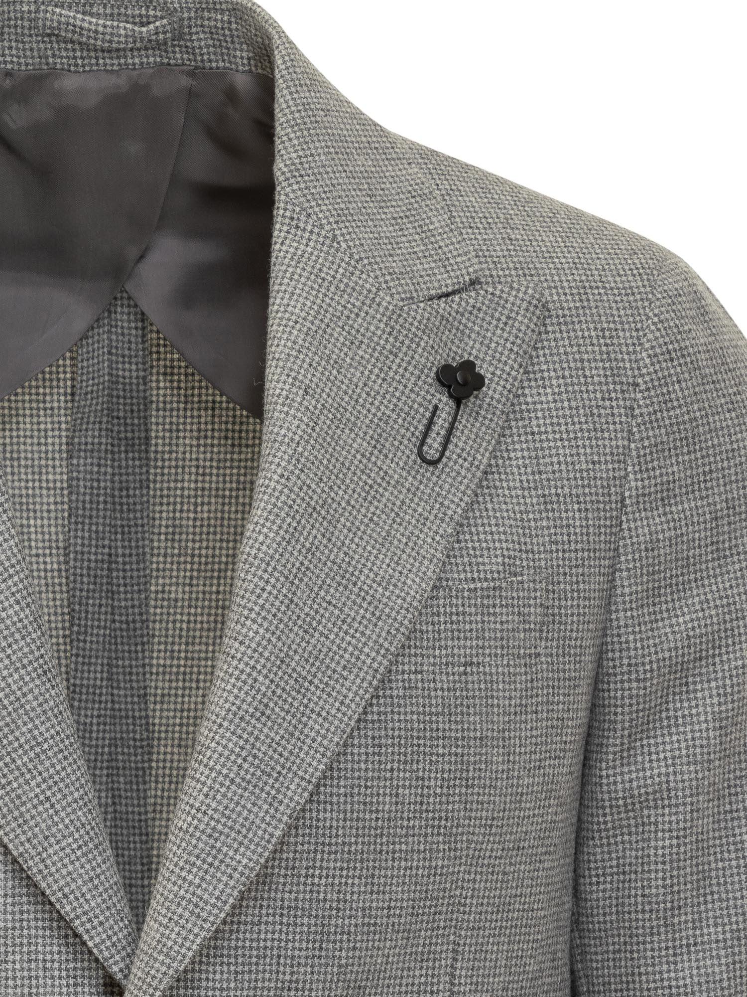 Giacca monopetto Lardini grigia con fantasia micro-check. Modello iconico con revers classico, chiusura a due bottoni e tasche applicate.