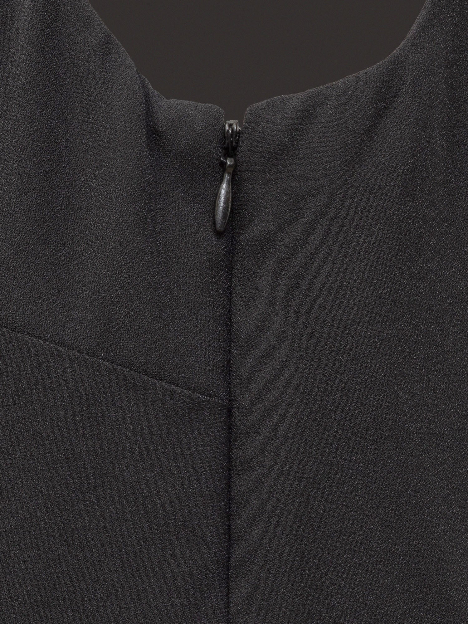 Abito corto nero. Maniche lunghe. Zip sul retro. Vestibilità ampia.