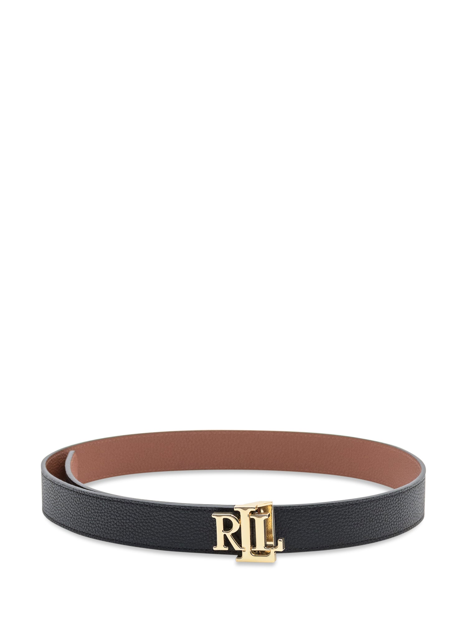 Cintura in pelle nera e marrone reversibile Polo Ralph Lauren con fibbia dorata logo RLL.