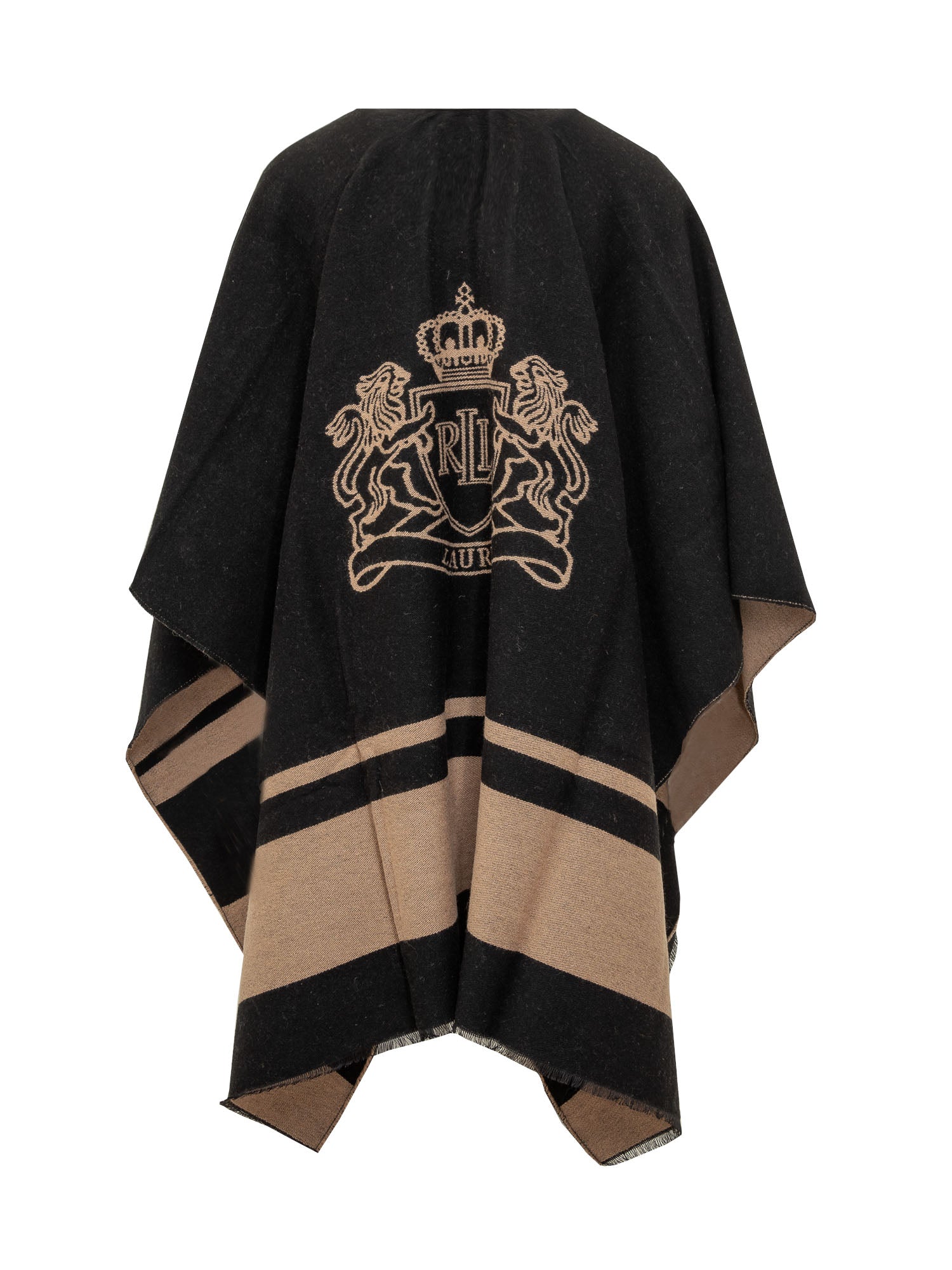 Poncho avvolgente in tessuto morbido con motivo jacquard e ampio emblem crest sul retro. Linee fluide e taglio aperto che valorizzano il movimento.