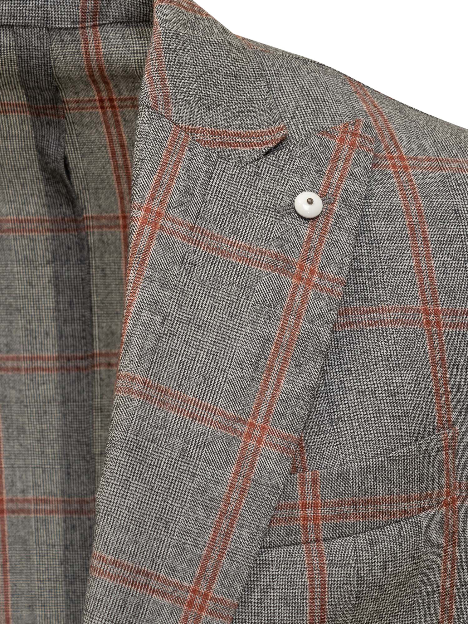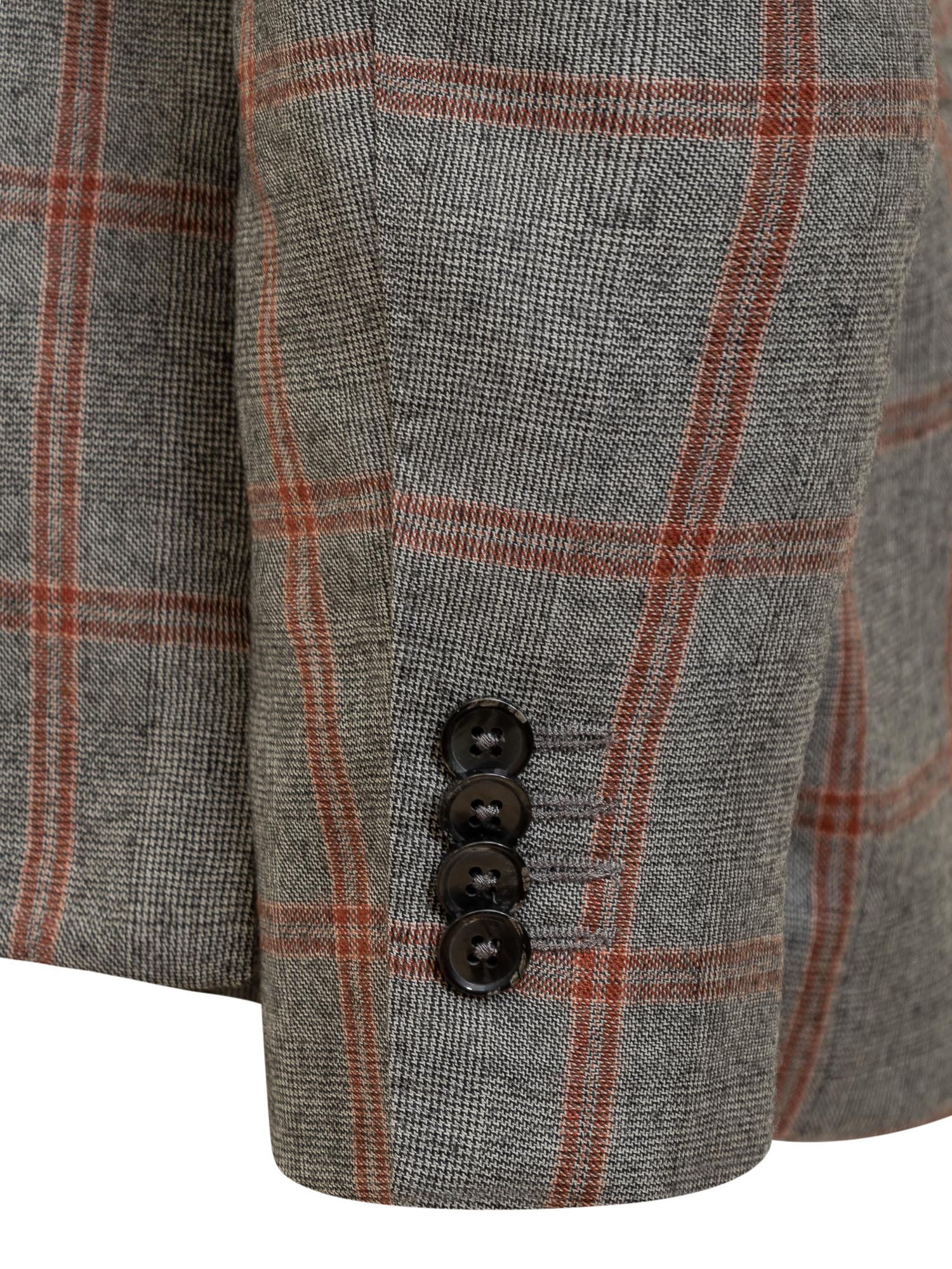 Abito due pezzi. Blazer a maniche lunghe. Chiusura con bottoni. Tre tasche con patta sul davanti e un taschino. Tasche interne. Polsini con bottoni. Spacchi sul retro. Pantaloni con chiusura zip e ganci