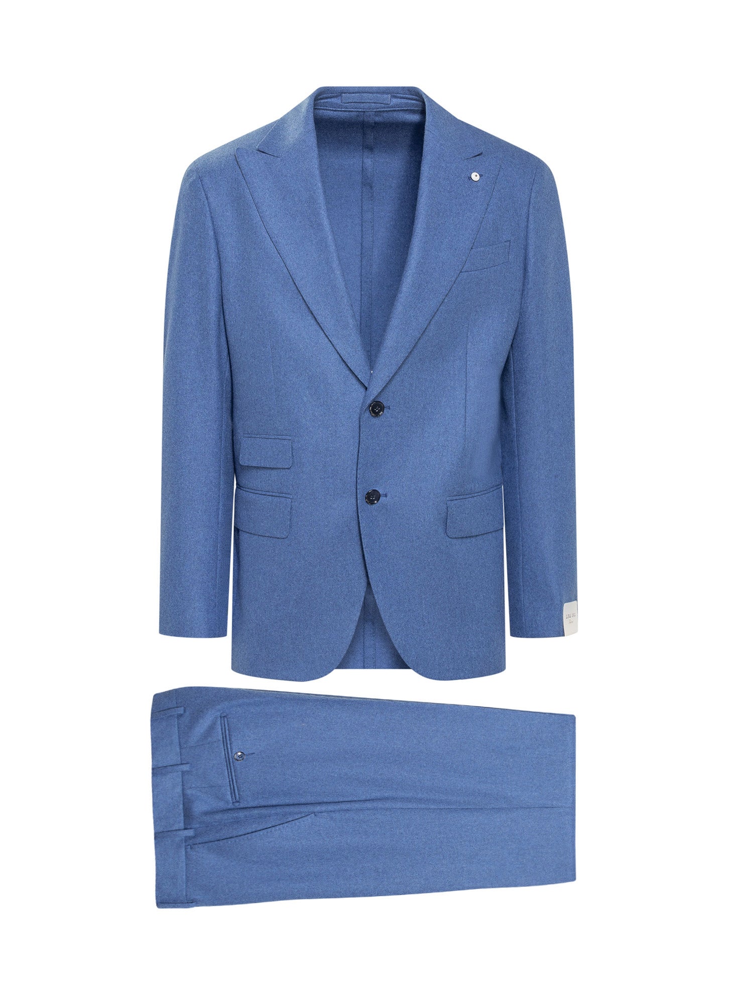 Giacca maniche lunghe con chiusura con bottoni. Tasche frontali. Taschino sul petto. Spacchi sul retro. Pantalone con passanti per cintura. 4 tasche. Chiusura con zip e bottoni.