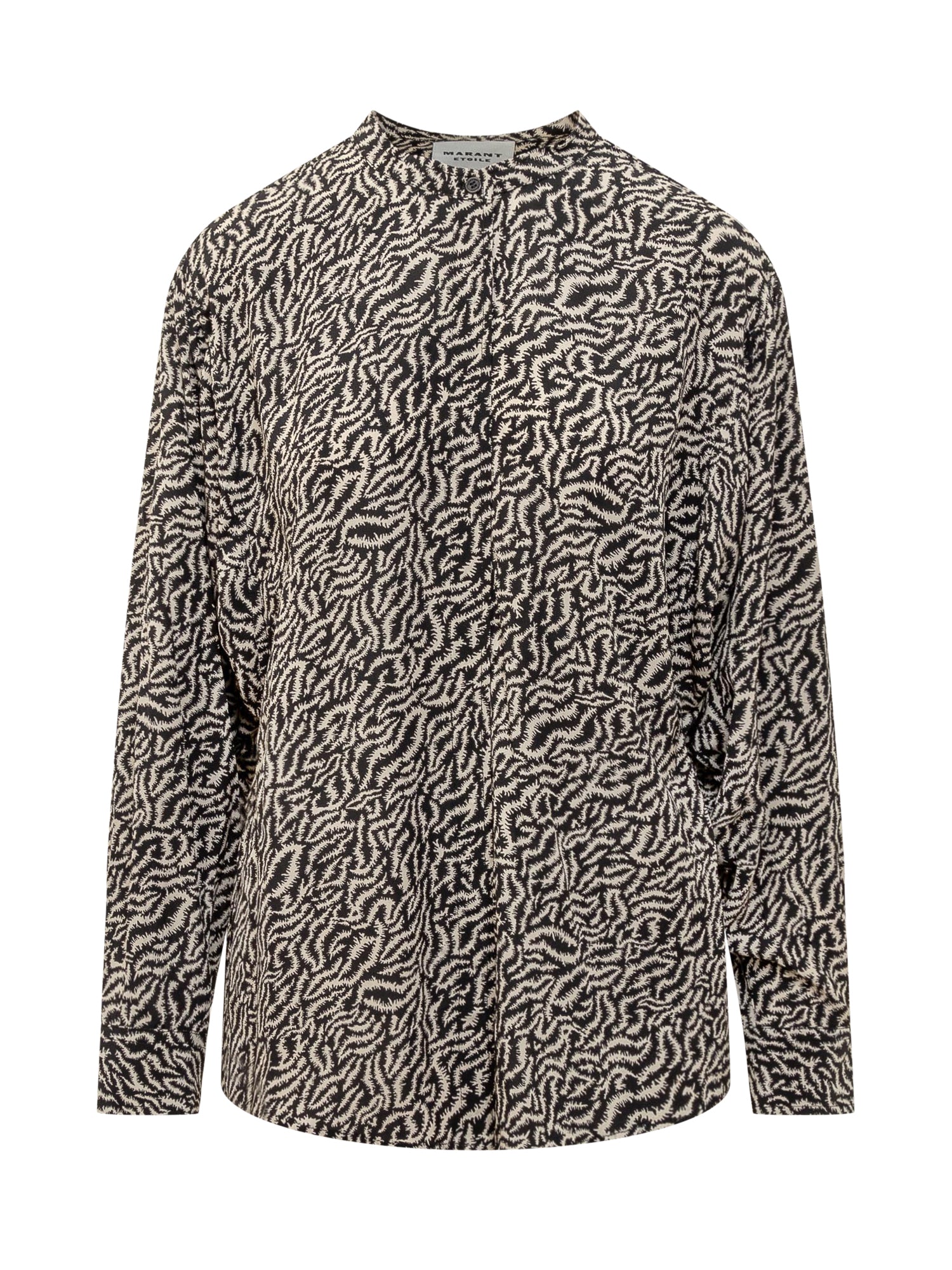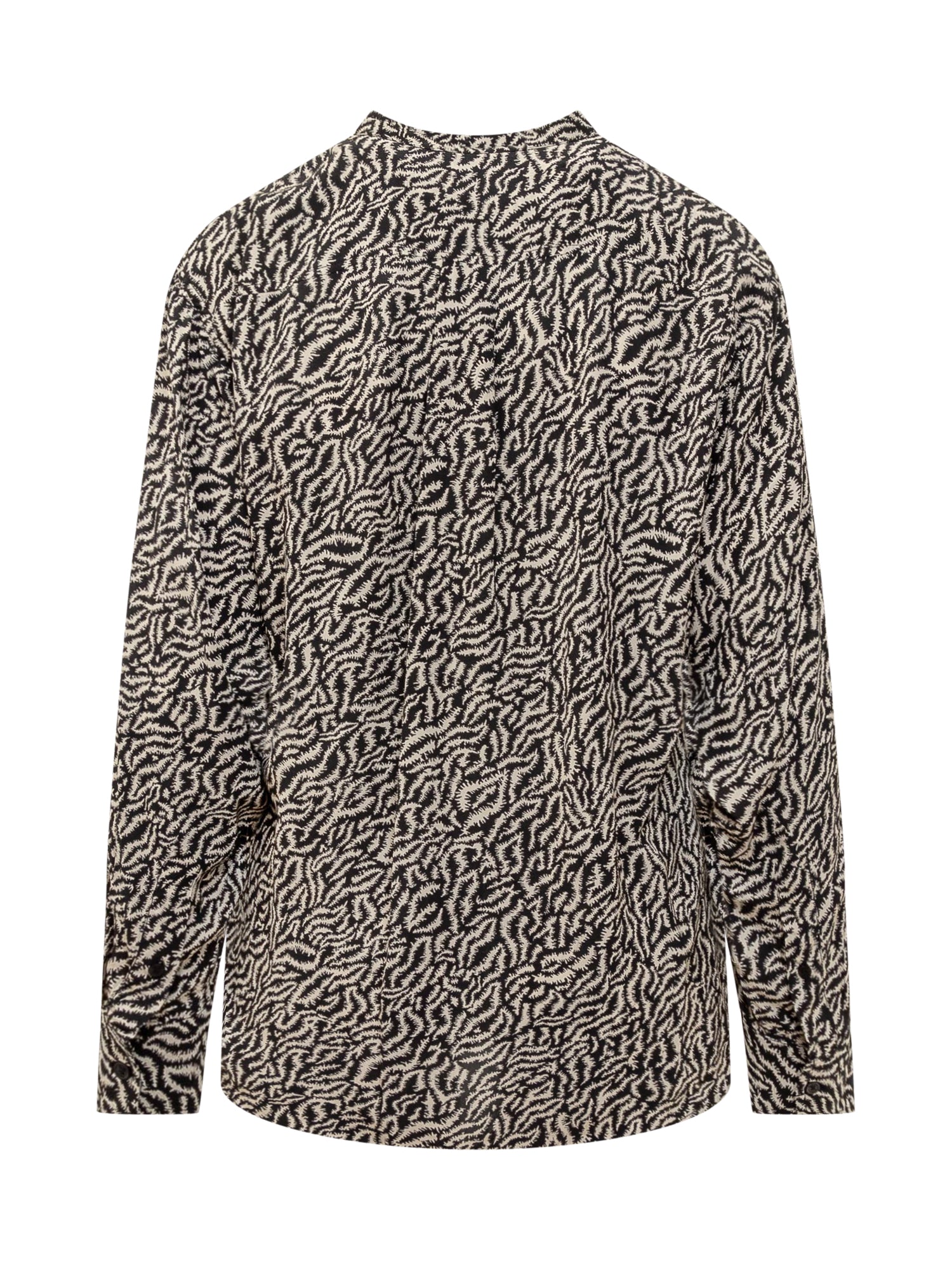 Camicia a maniche lunghe in viscosa. Girocollo. Chiusura con bottoni. Polsini con bottoni. Stampa astratta all over.