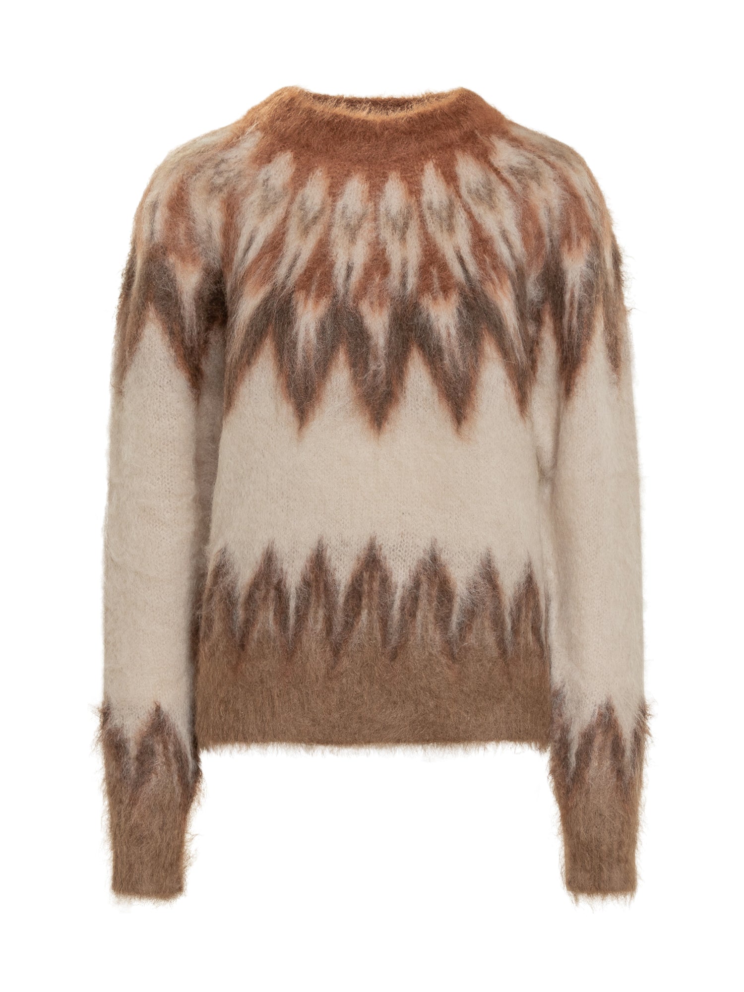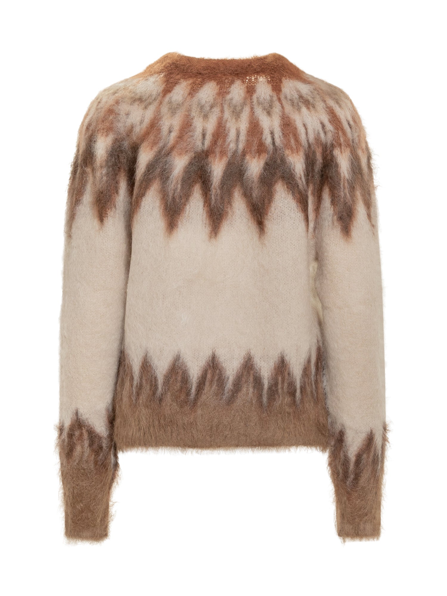 Maglione in misto mohair con motivo jacquard multicolor effetto sfumato. Fit comodo e texture morbida.