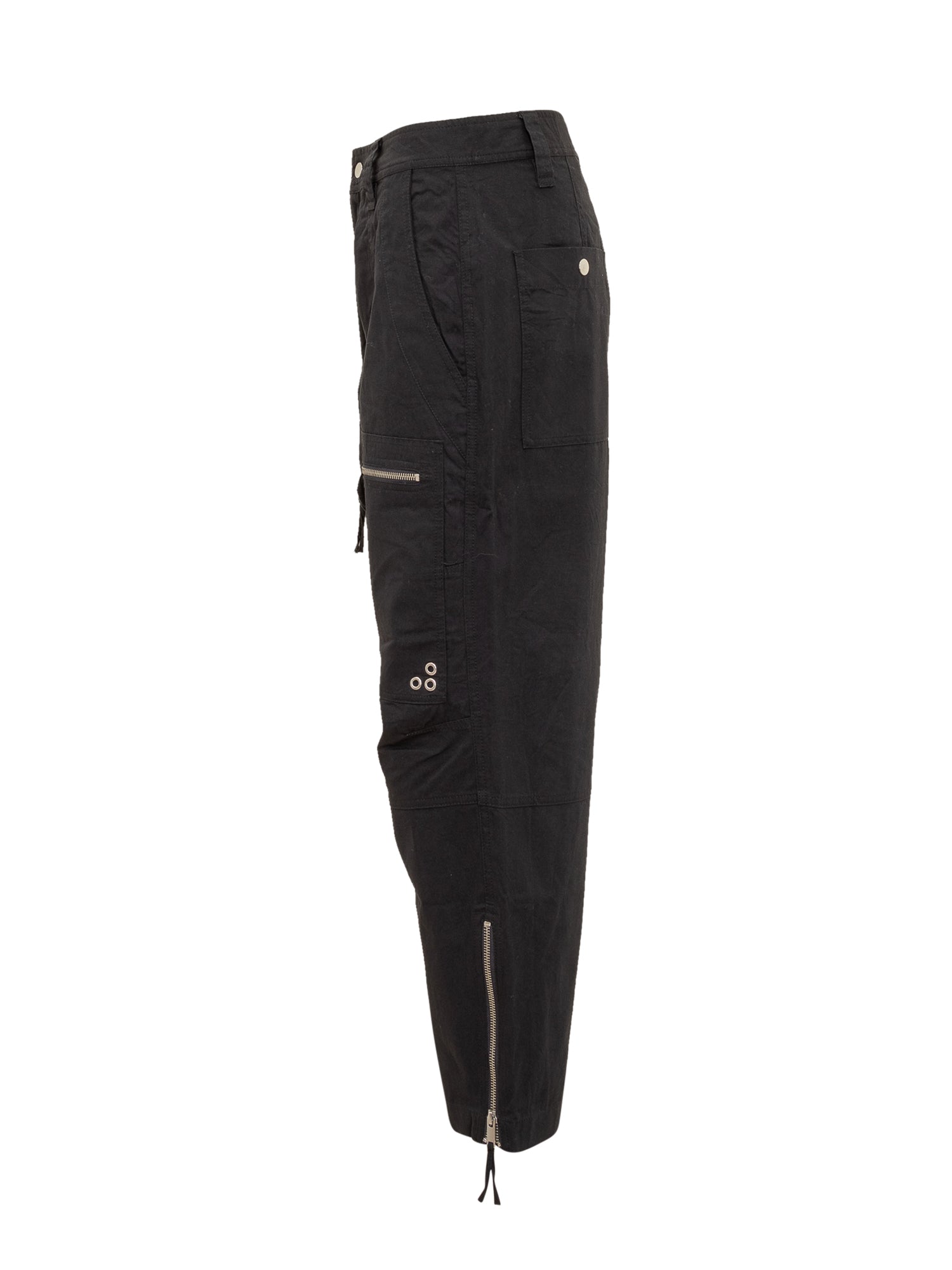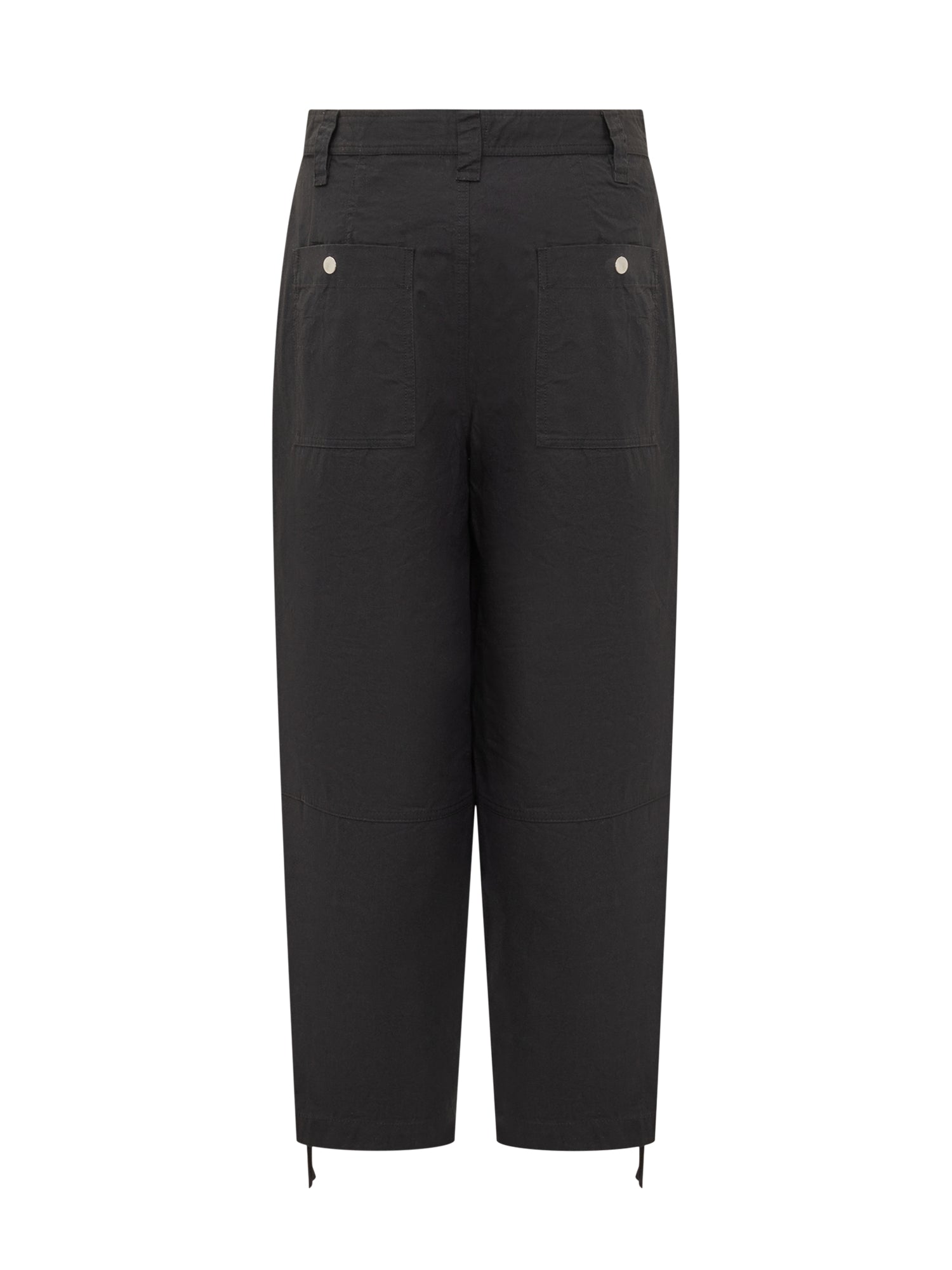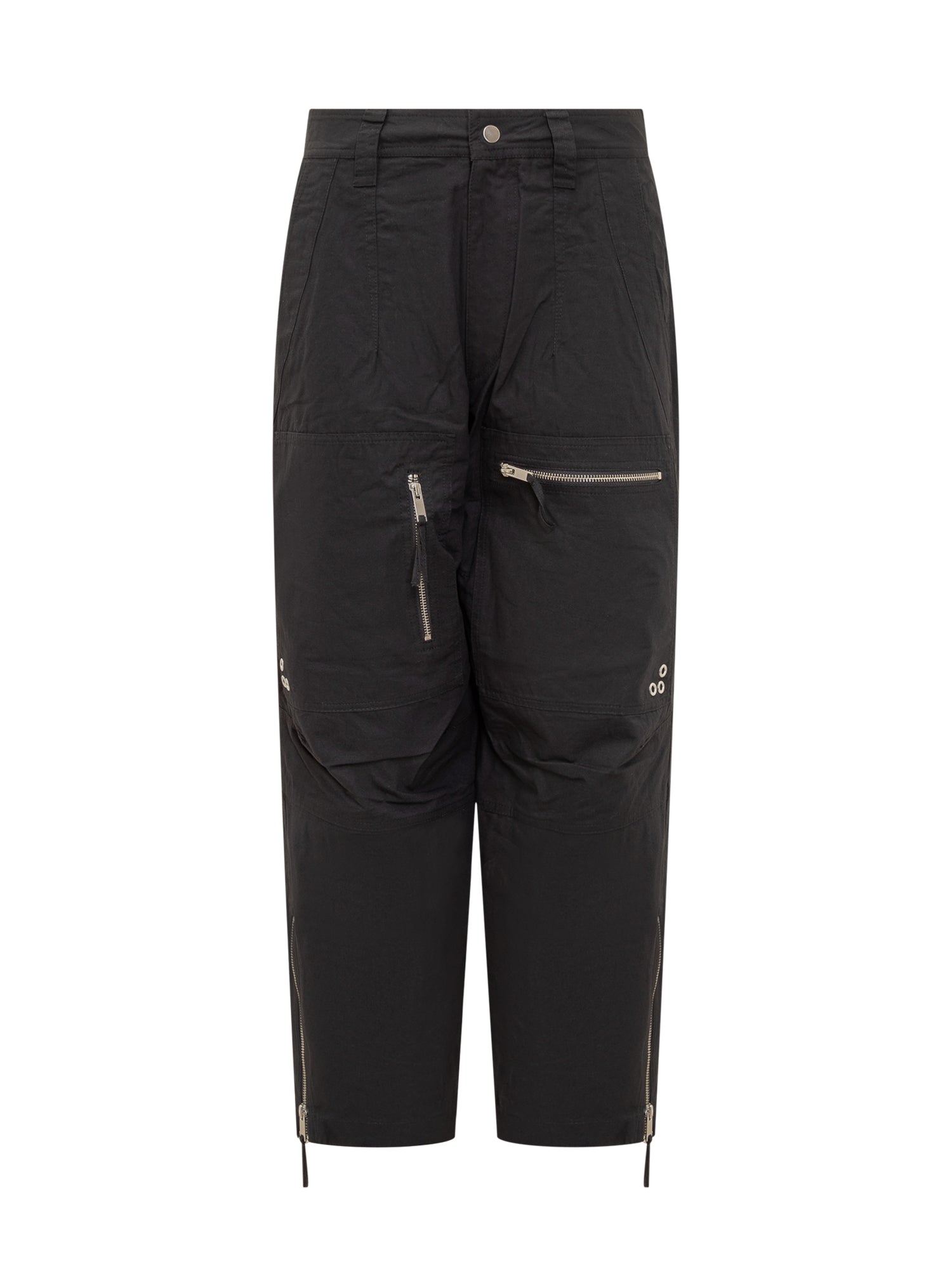 Pantaloni wide leg in cotone. Chiusura con bottone. Passanti per cintura. Zip sul fondo. Due tasche oblique sul davanti. Due tasche con zip sul davanti. Due tasche con bottone sul retro.