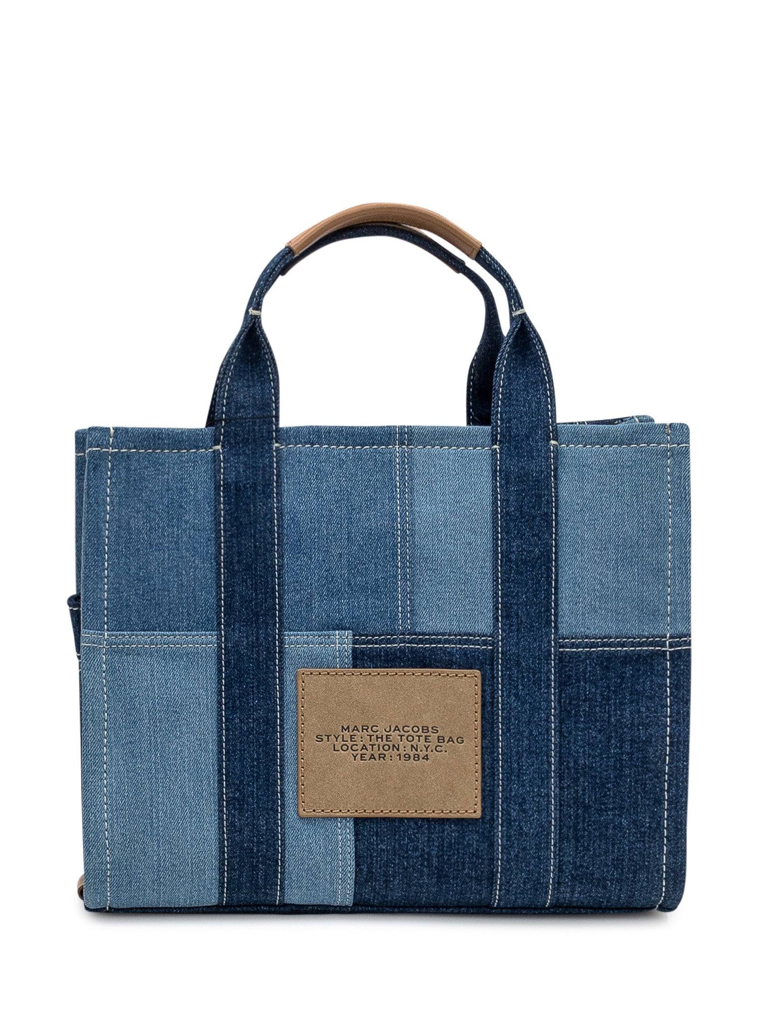 Tote Bag Marc Jacobs in denim patchwork bicolor con logo a contrasto e doppi manici.