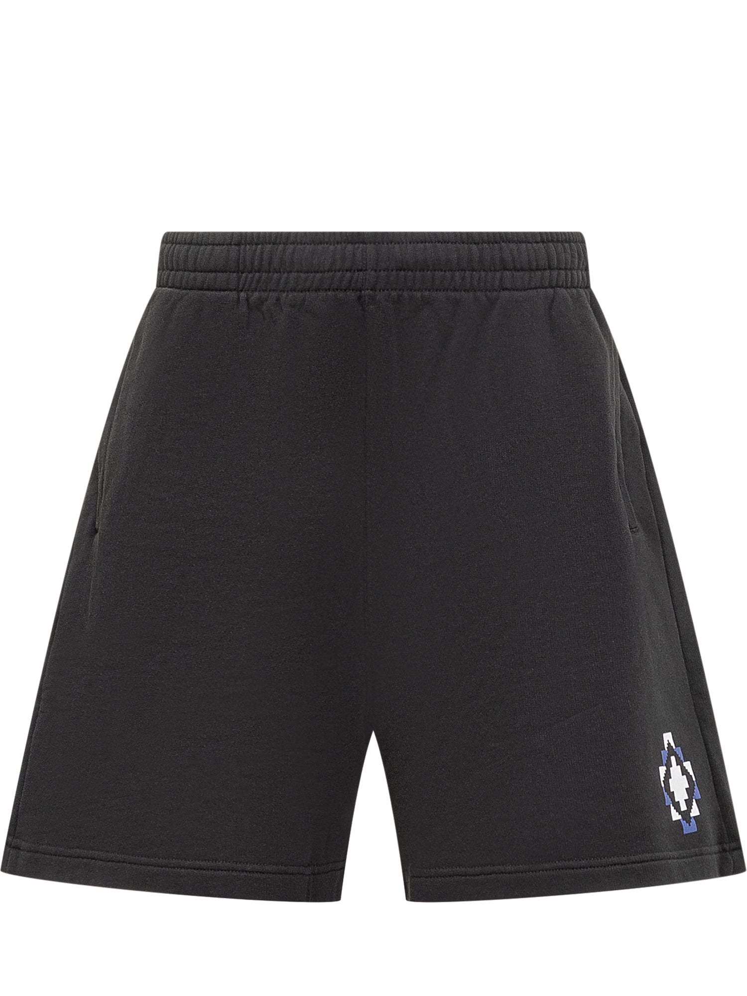 Shorts neri in cotone. Vita elasticizzata. Tasche laterali. Logo su gamba.