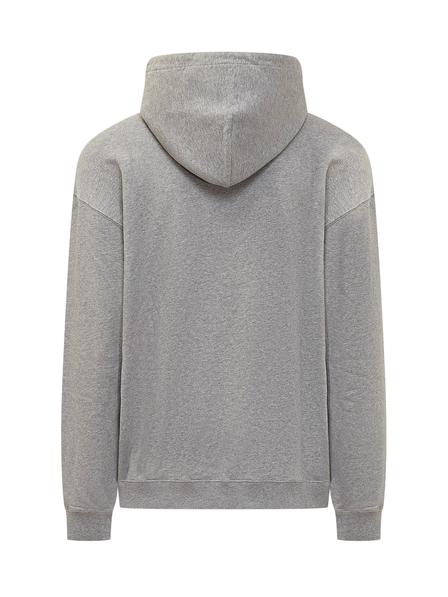 Felpa grigia in cotone. Cappuccio con coulisse. Maxi tasca sul davanti. Logo ricamato.