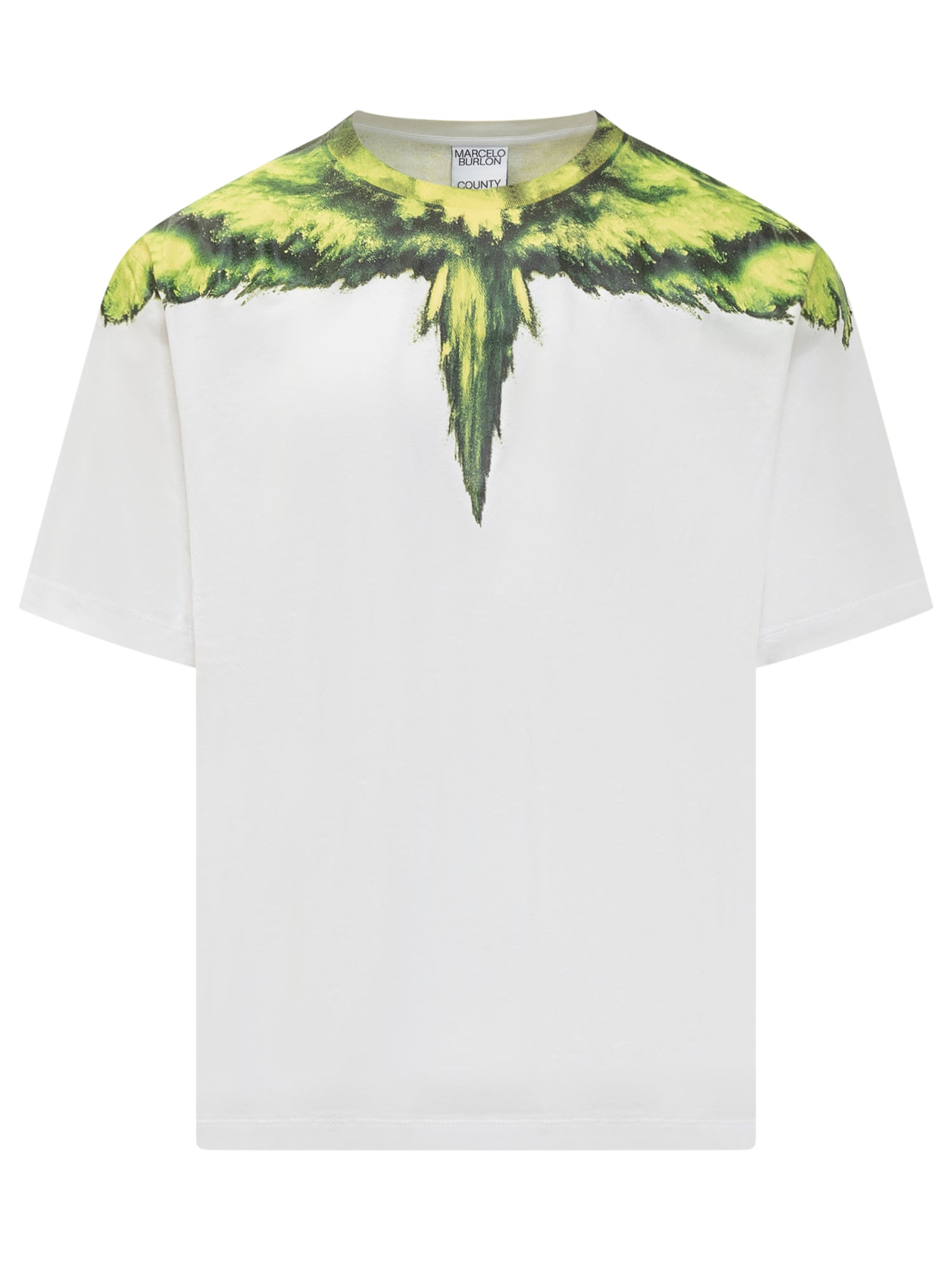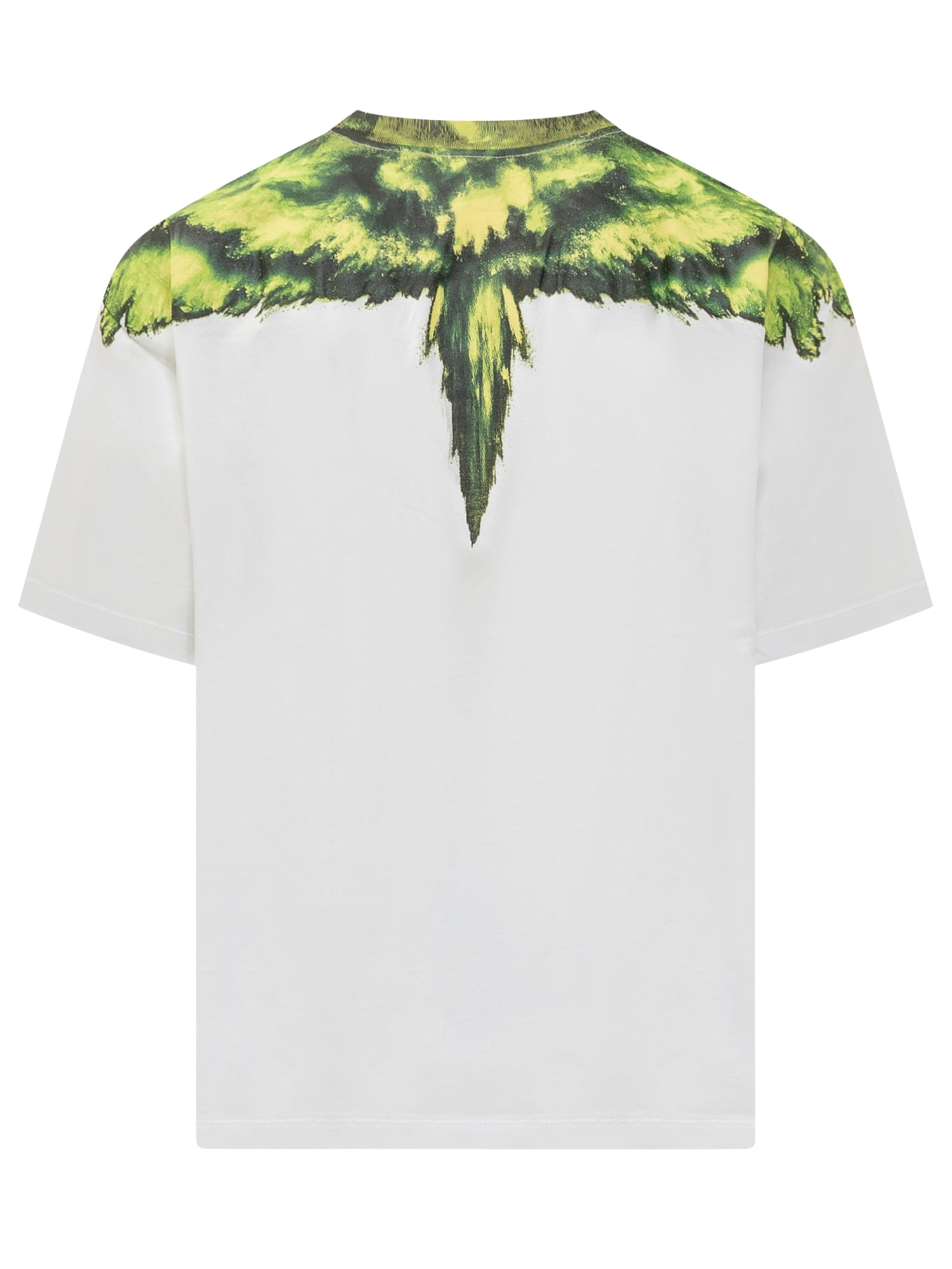 T-shirt bianca in cotone. Girocollo. Stampa Icon Wings.