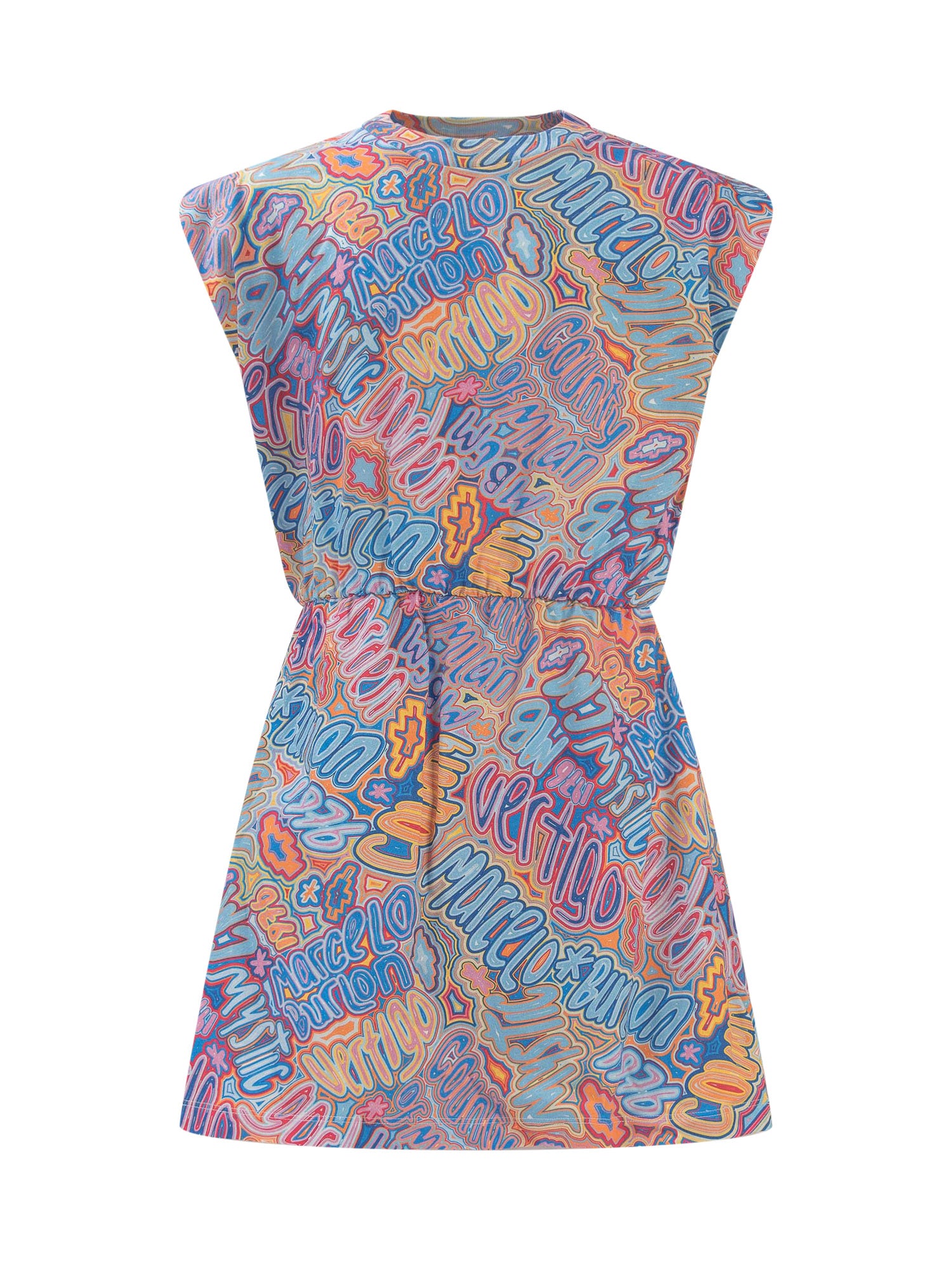 Abito con maniche corte. Girocollo. Stampa multicolore all-over.