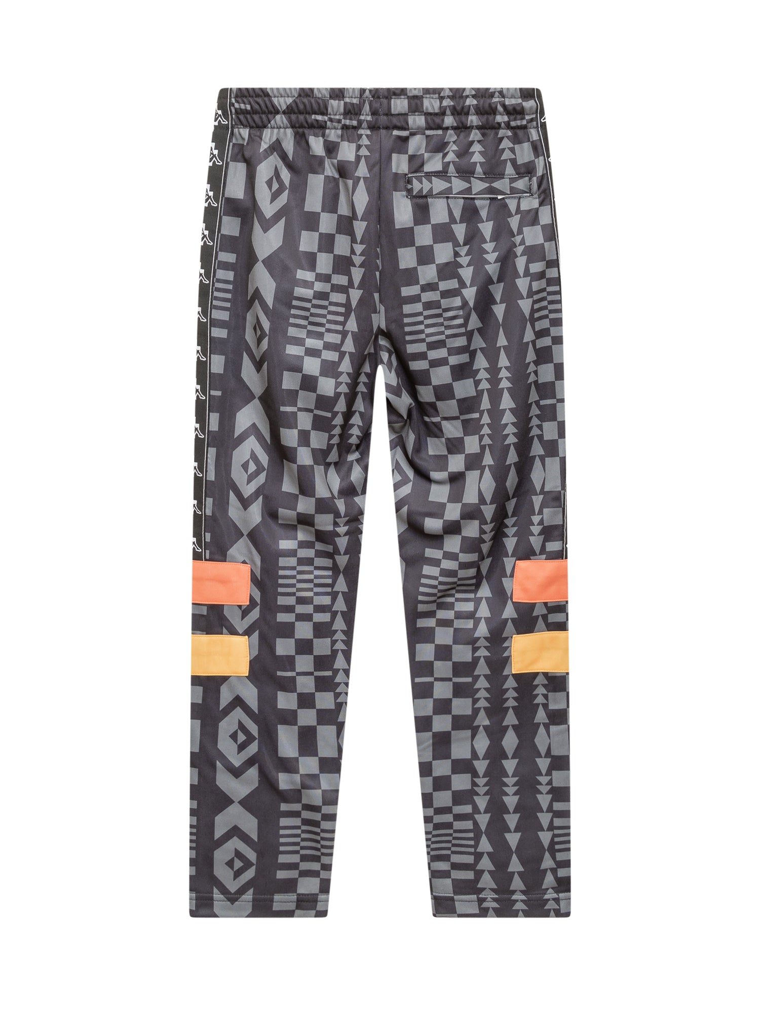 Pantalone lungo. Coulisse interna. Due tasche laterali. Tasca dietro. Stampa geometrica all-over. Logo su fronte e fianchi.