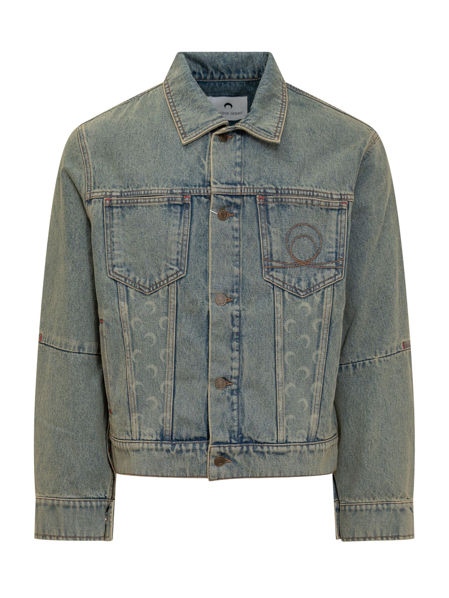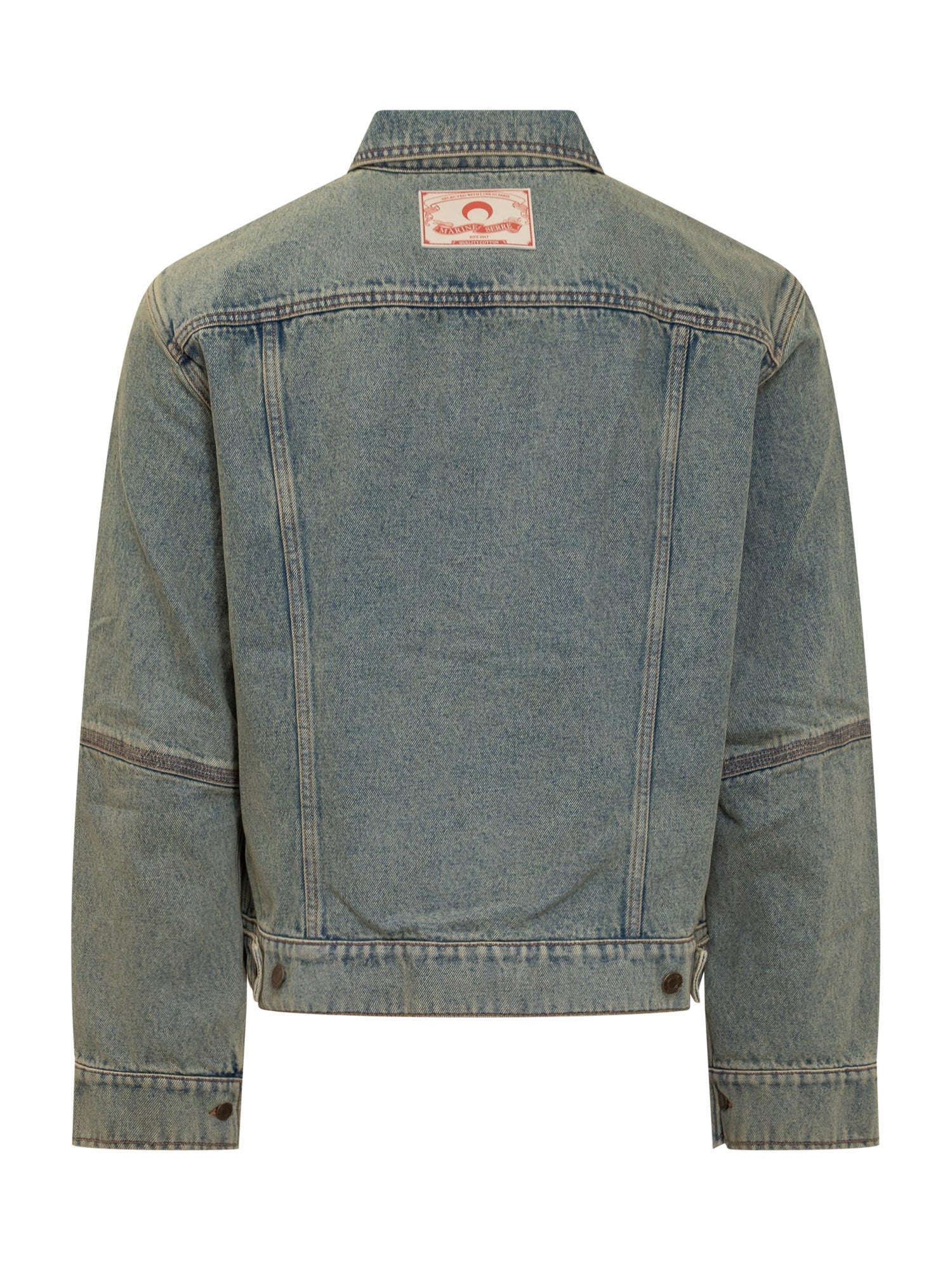 Giubbino in jeans. Colletto classico. Chiusura con bottoni. Polsini con bottone. Tasche sul petto. Targhetta logo sul retro.