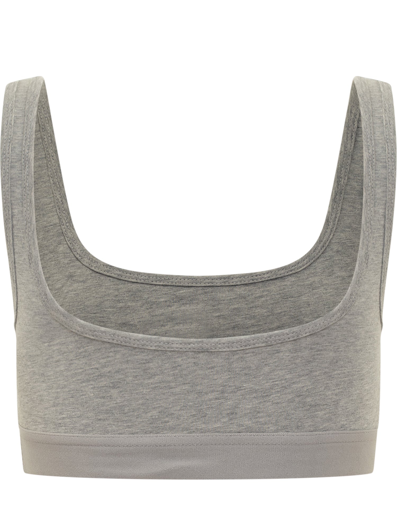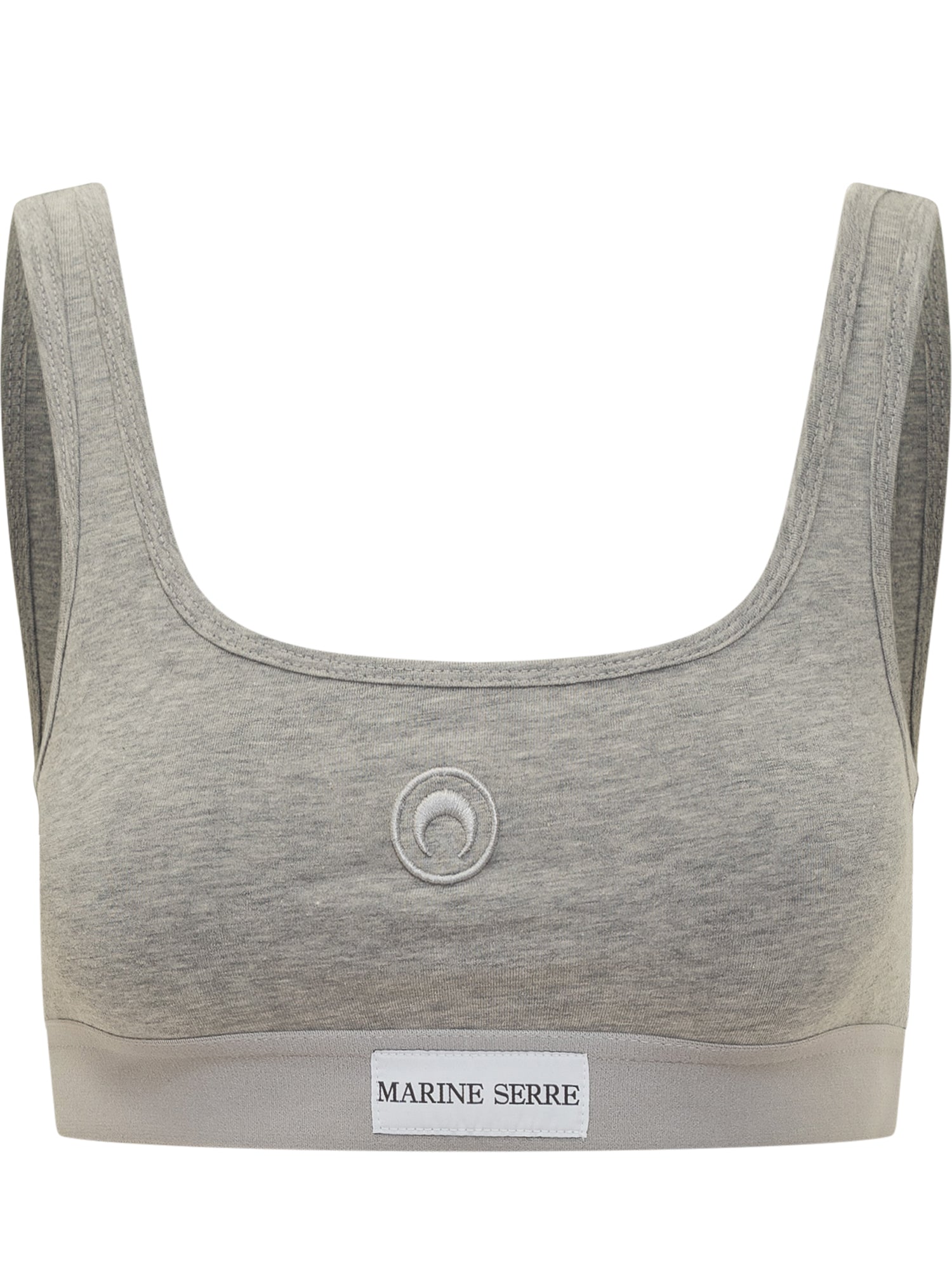 Reggiseno sportivo Marine Serre in cotone grigio, con fascia elastica e logo luna ricamato sul davanti.