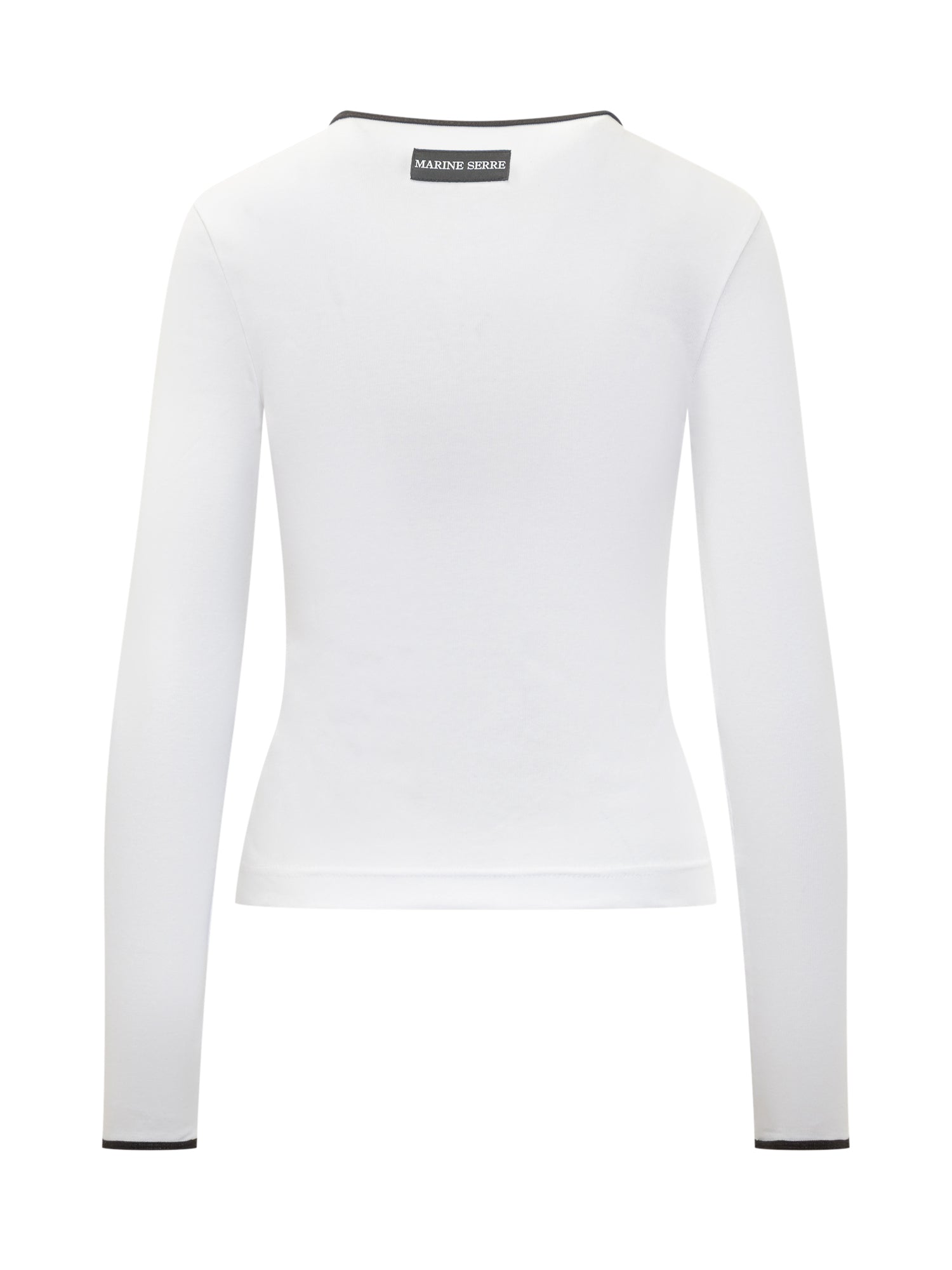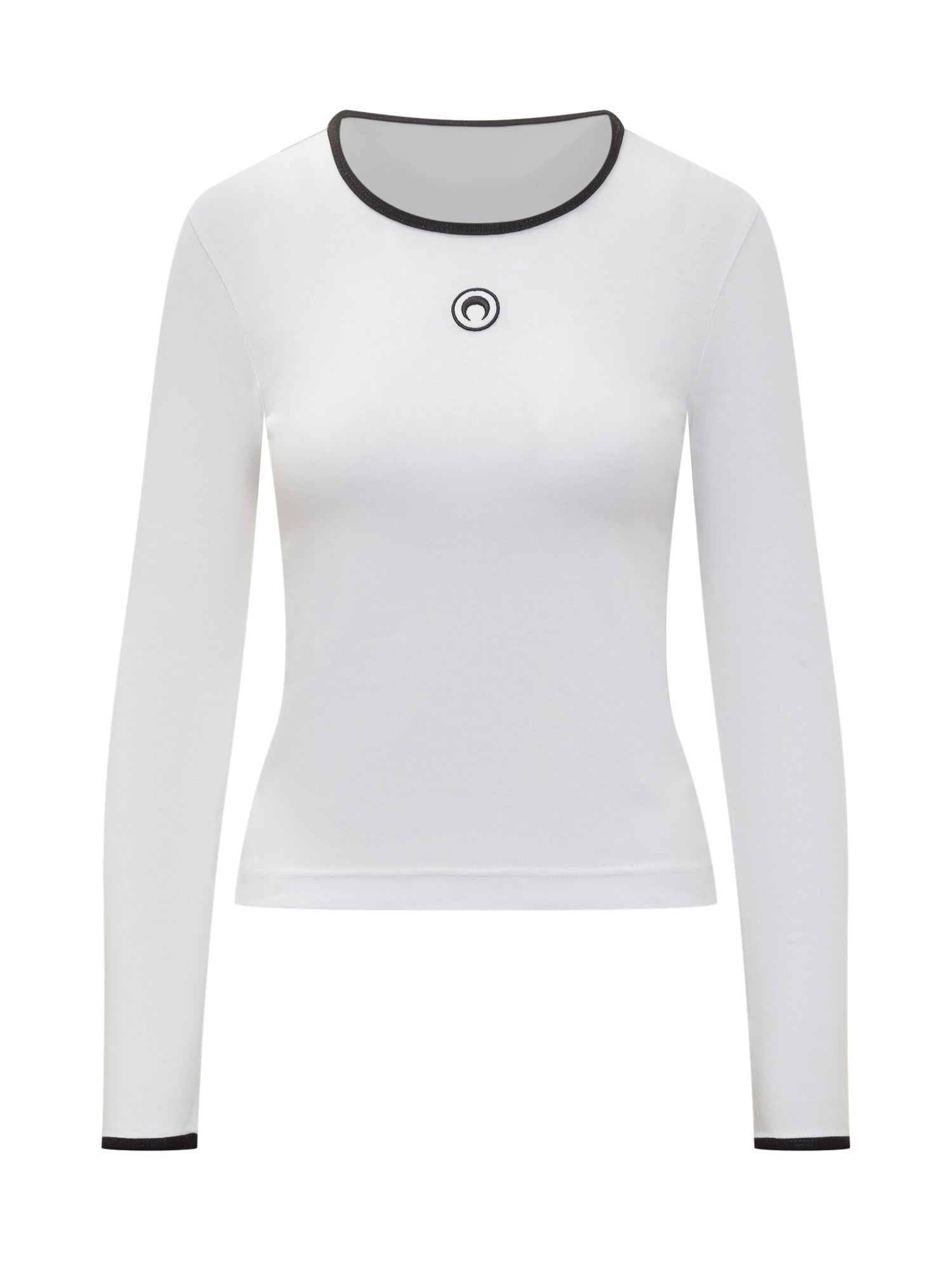 Top Marine Serre a maniche lunghe in cotone bianco, con bordi a contrasto e iconico logo luna ricamato sul davanti.