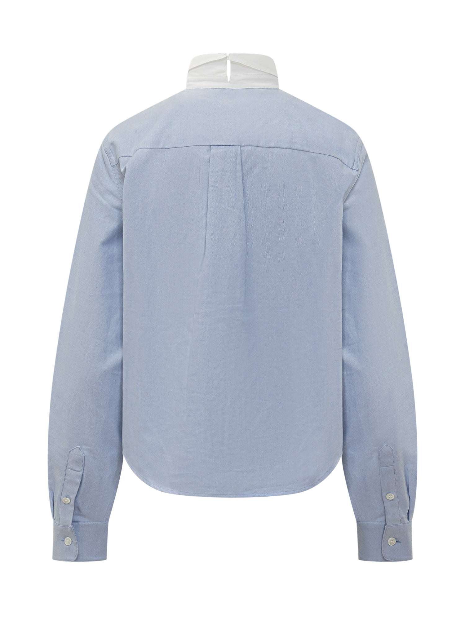 Camicia Marni in cotone con design color block nei toni dell azzurro, rosa e beige. Colletto bianco a contrasto e taschino con ricamo.