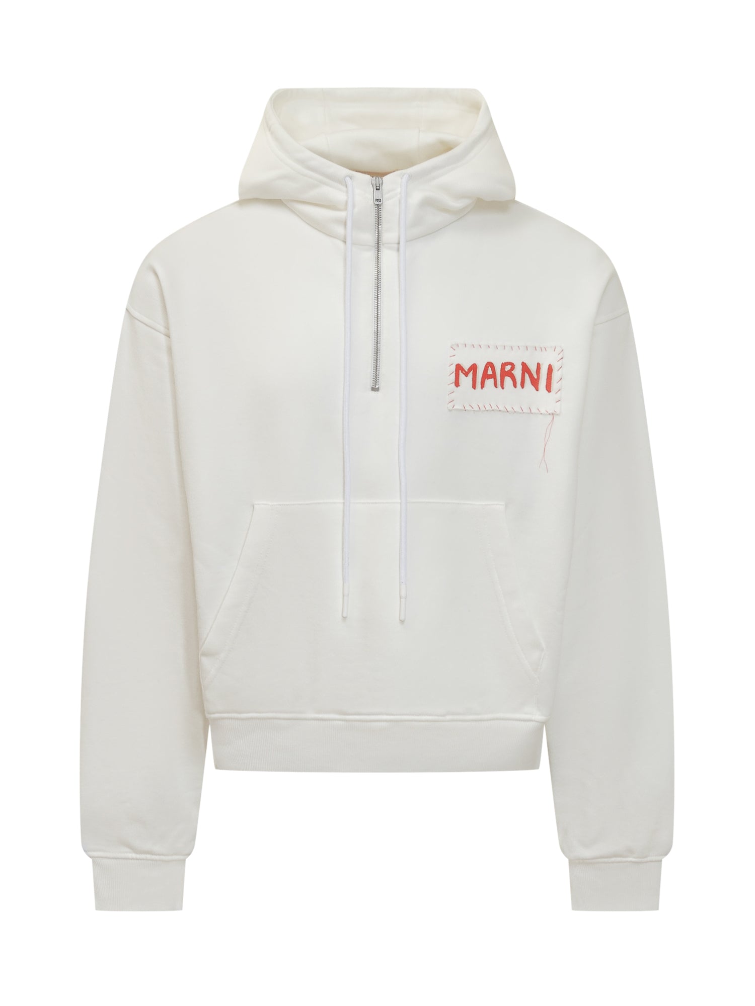Felpa a maniche lunghe in cotone. Cappuccio con coulisse. Chiusura con zip. Orli a costine. Tasca sul davanti. Logo sul davanti.