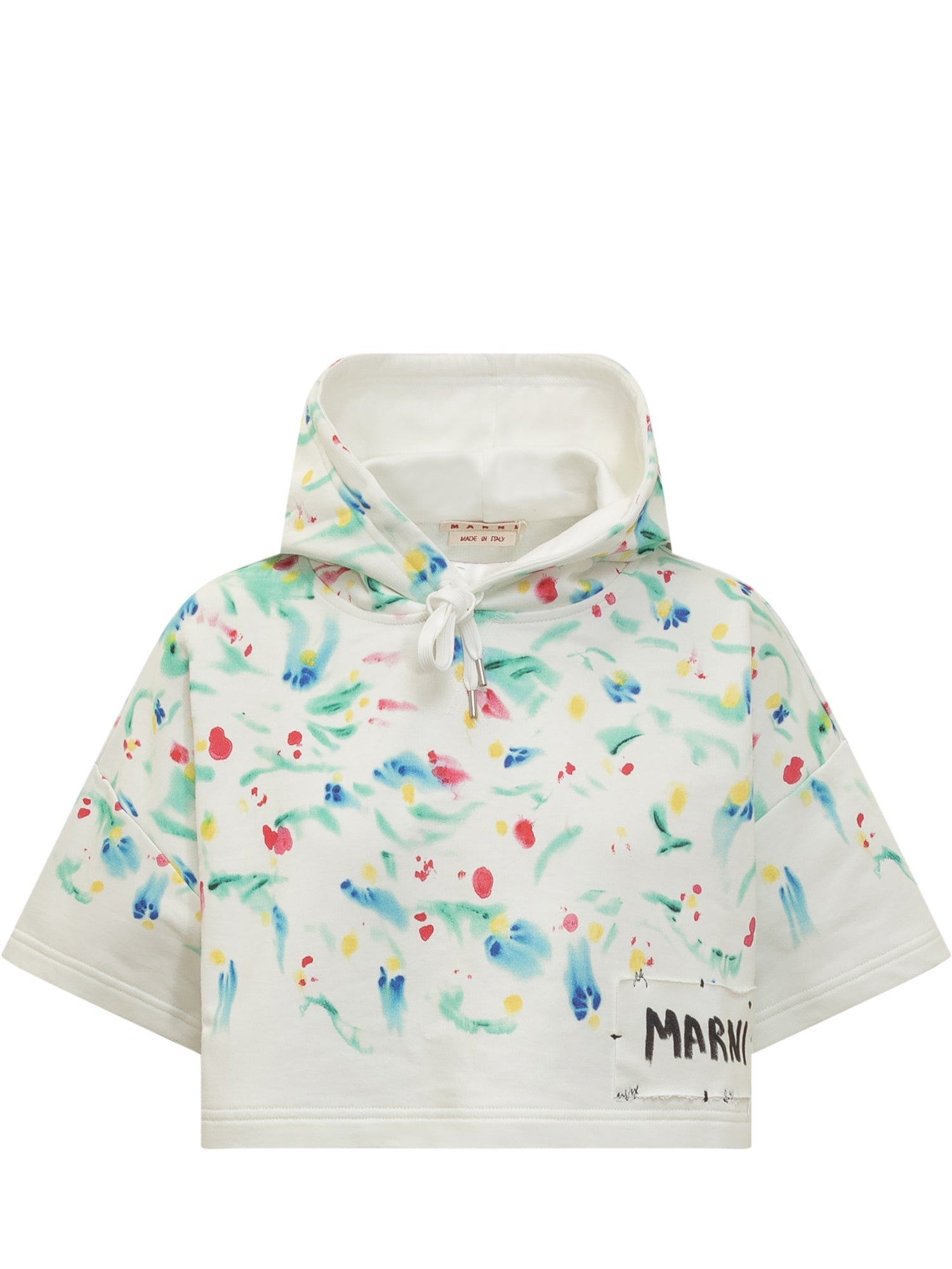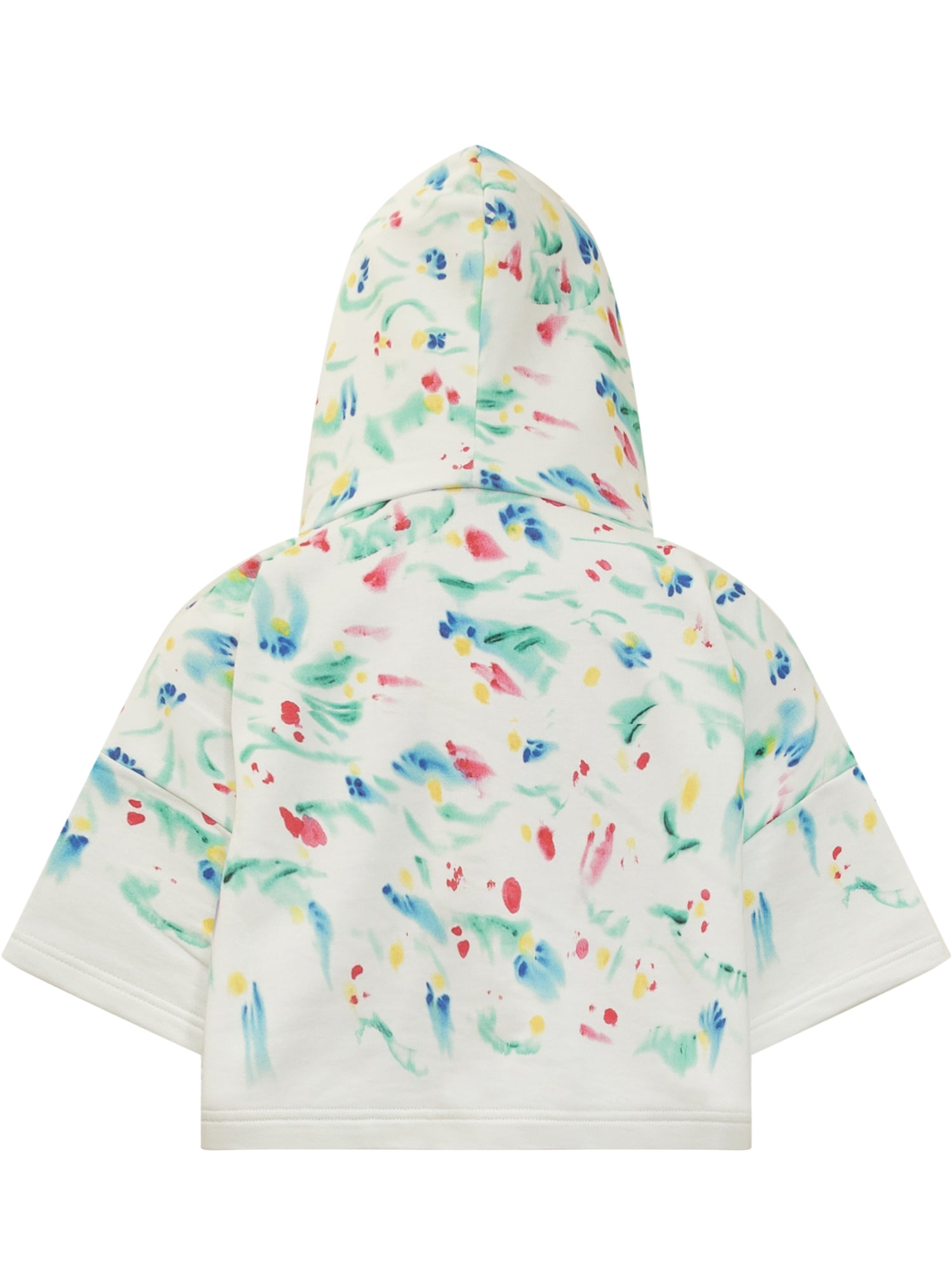 Felpa cropped a maniche corte. Cappuccio con coulisse. Logo ricamato sul davanti. Stampa Fiori.