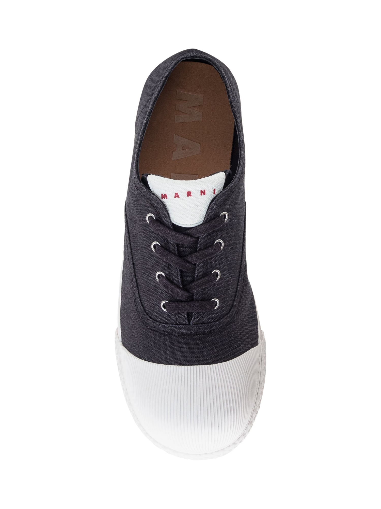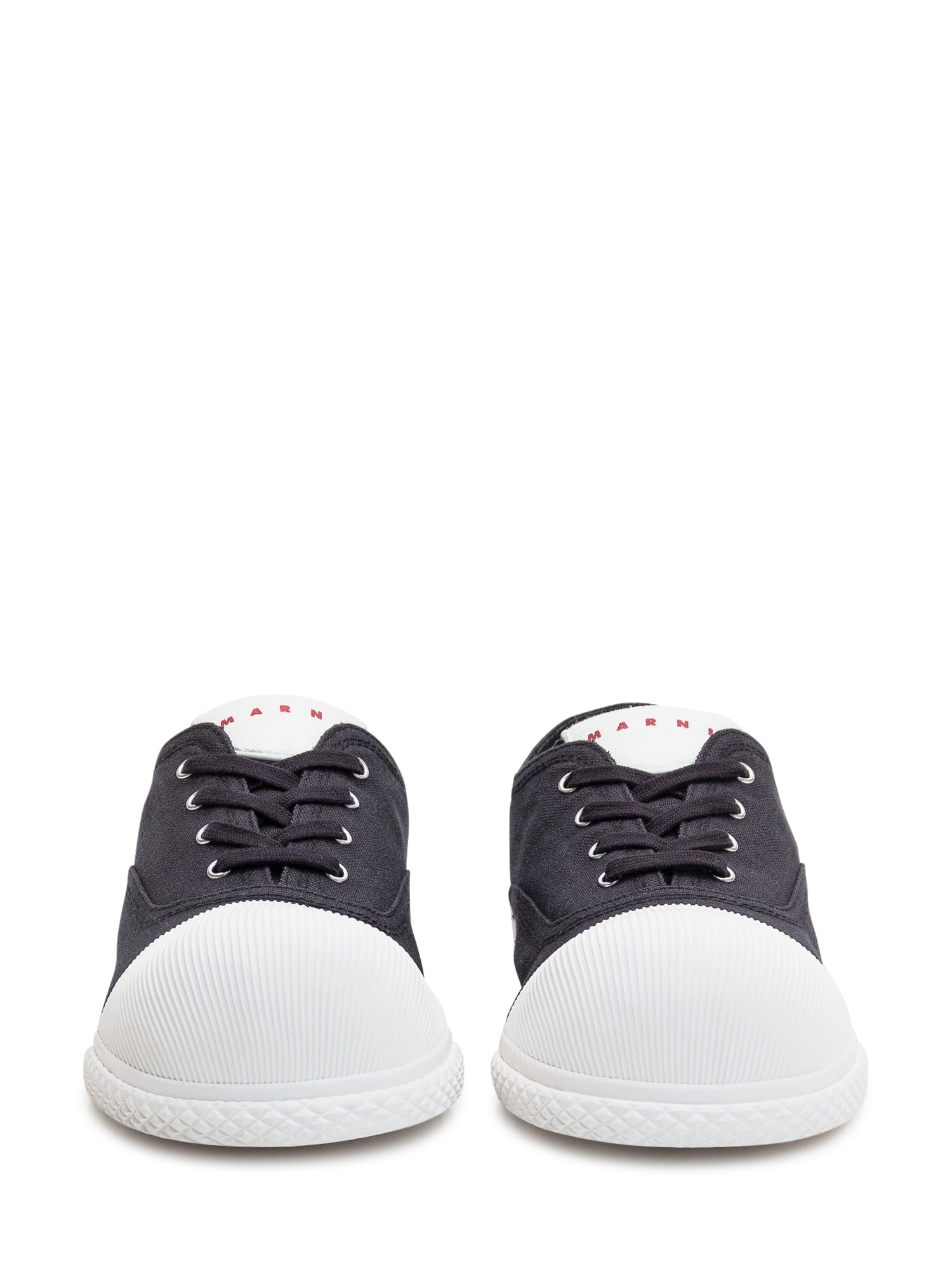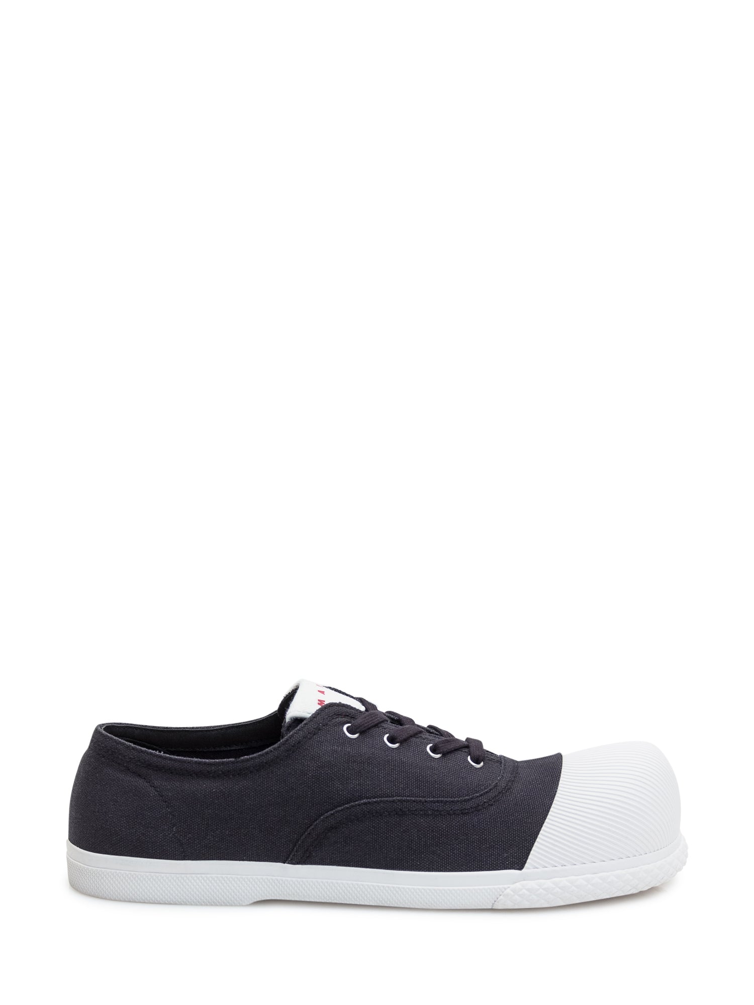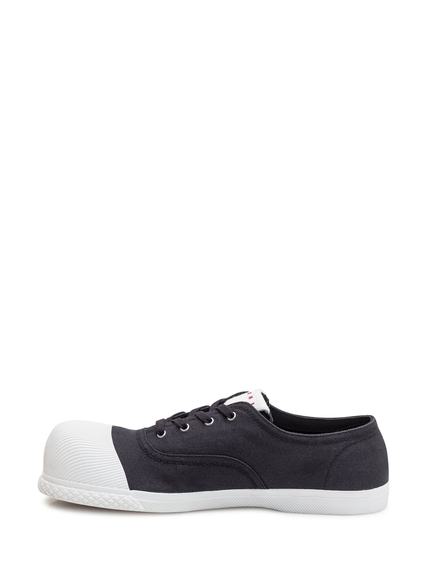 Sneaker unisex in tela di cotone con fodera in tono. Effetto sfoderato. Iconica punta a bolla ricoperta in gomma rigata. Suola in gomma vulcanizzata flessibile. Logo Marni sul sottopiede e sulla linguetta.
