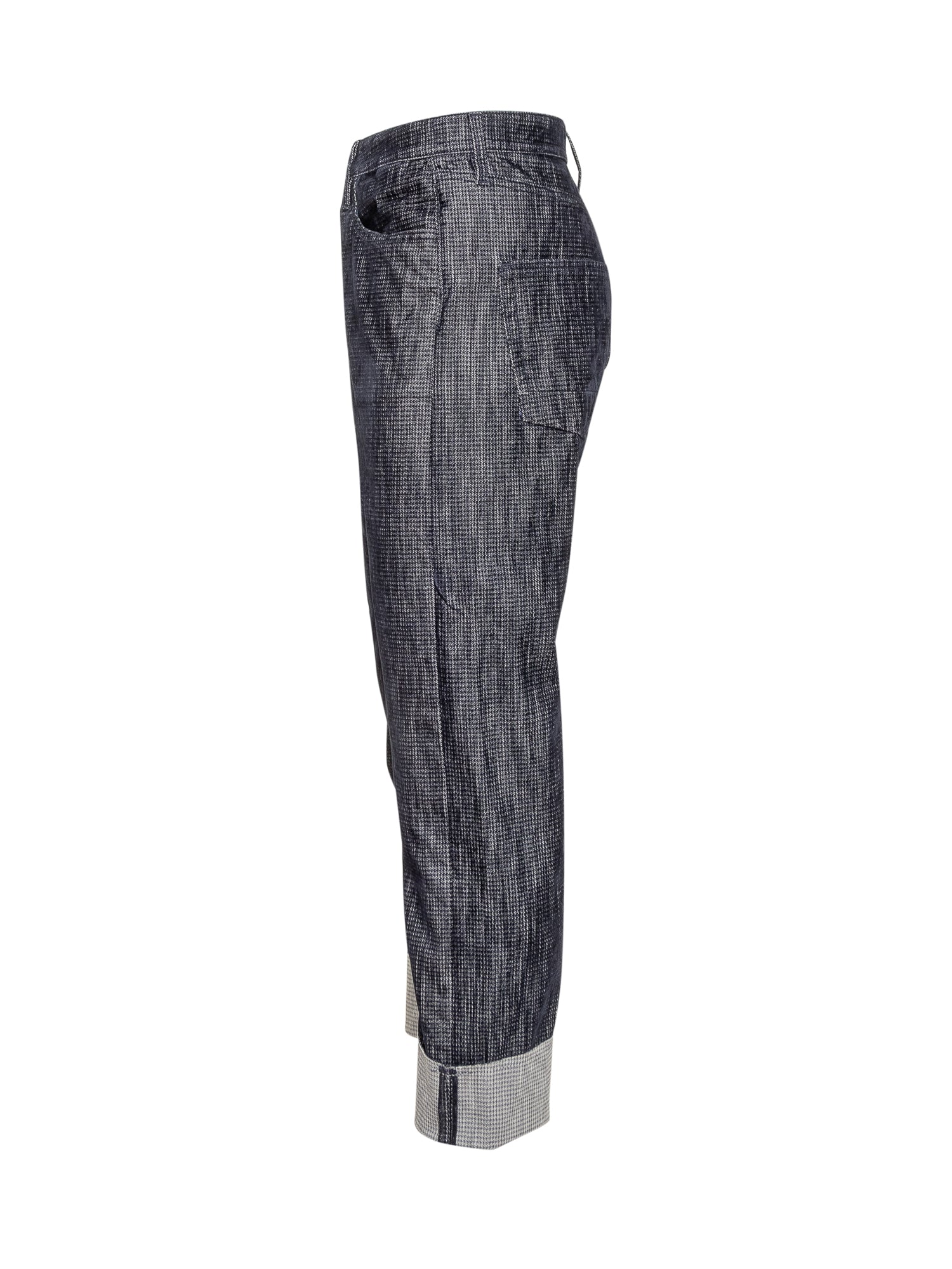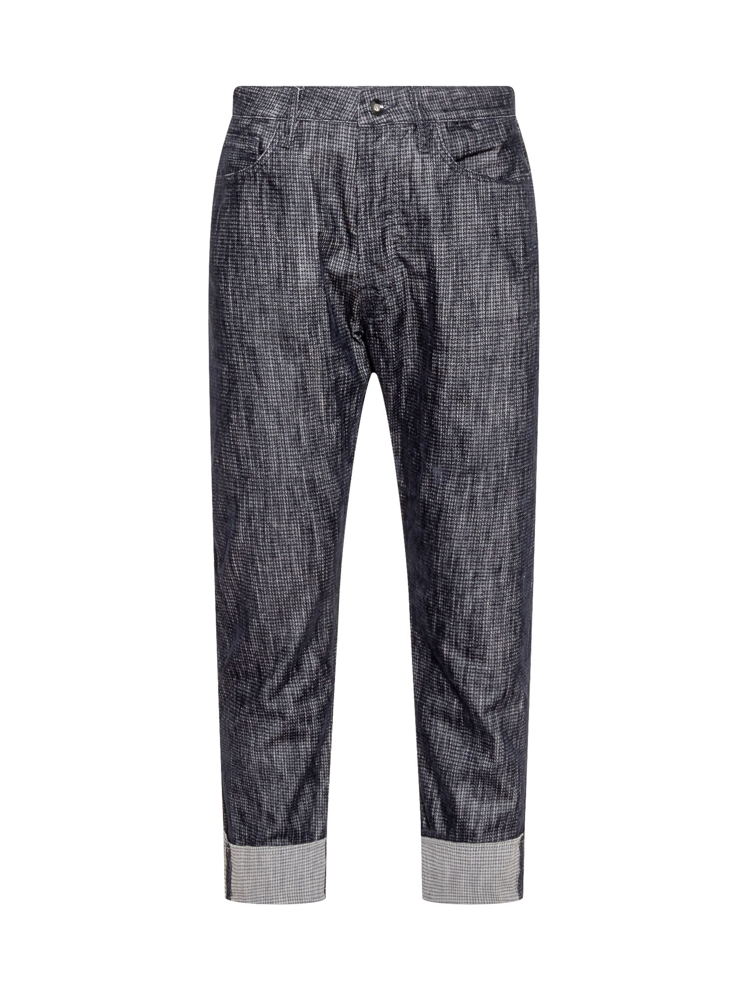 Jeans nero. Chiusura con zip. Passanti per cintura. Quattro tasche.