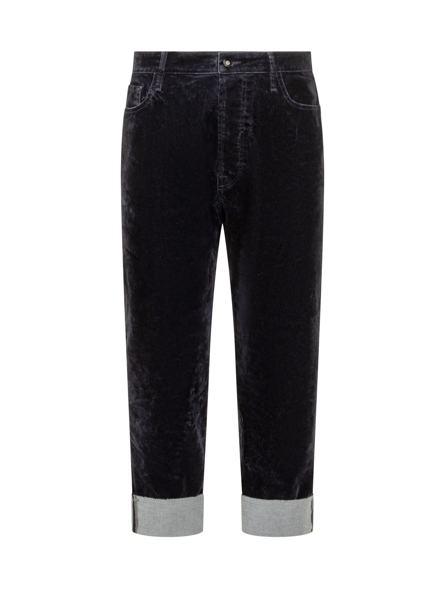 Pantalone jeans lungo. Chiusura con bottoni. Cinque tasche. Tasche applicate sul retro. Passanti per cintura. Regular fit. Colore blu.