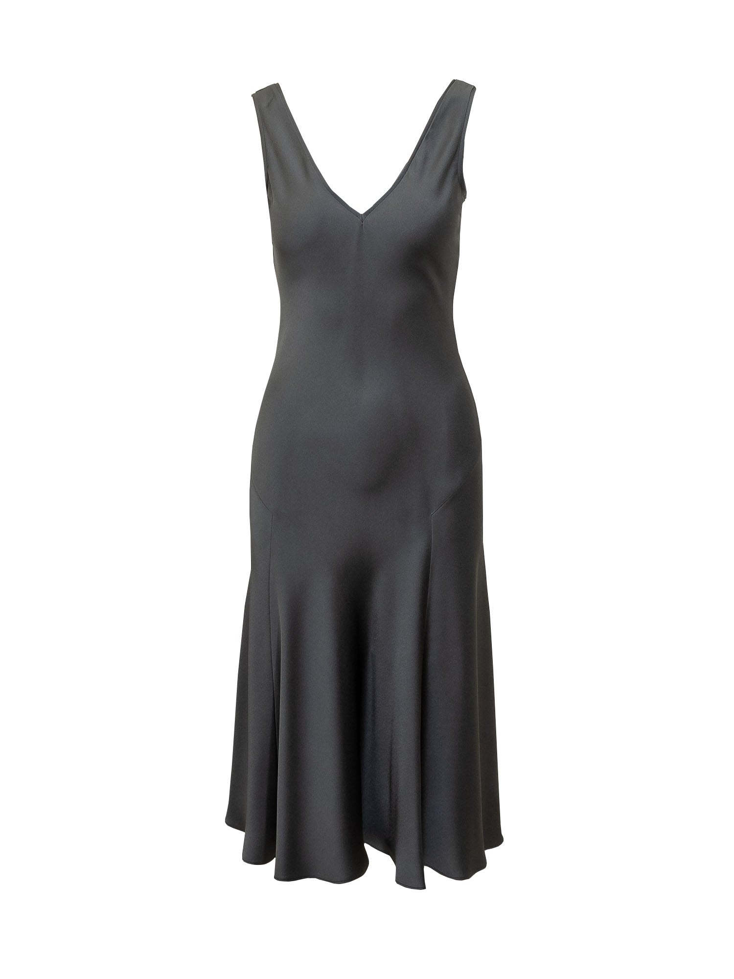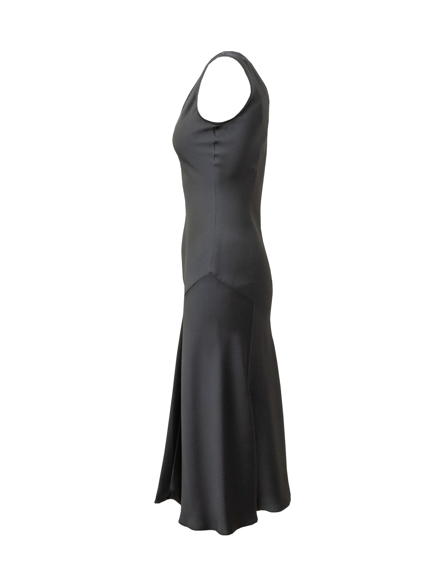 Abito smanicato lungo realizzato in envers satin. Scollo a V profondo davanti e sul retro. Linea fluida con motivo di tagli sui fianchi.