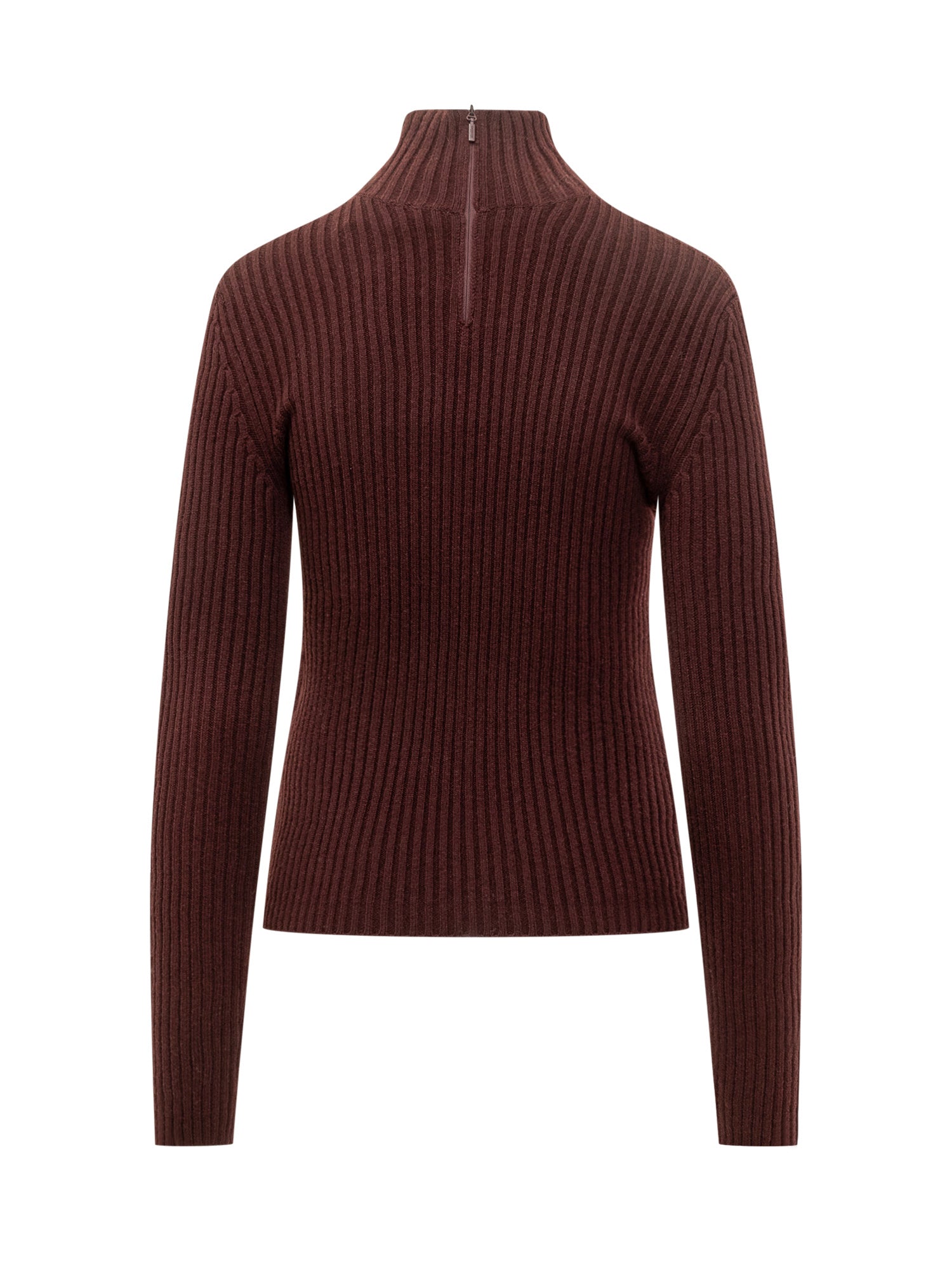 Dolcevita Max Mara in maglia a coste color bordeaux, dal taglio aderente e dal design minimal. Collo alto e maniche lunghe.