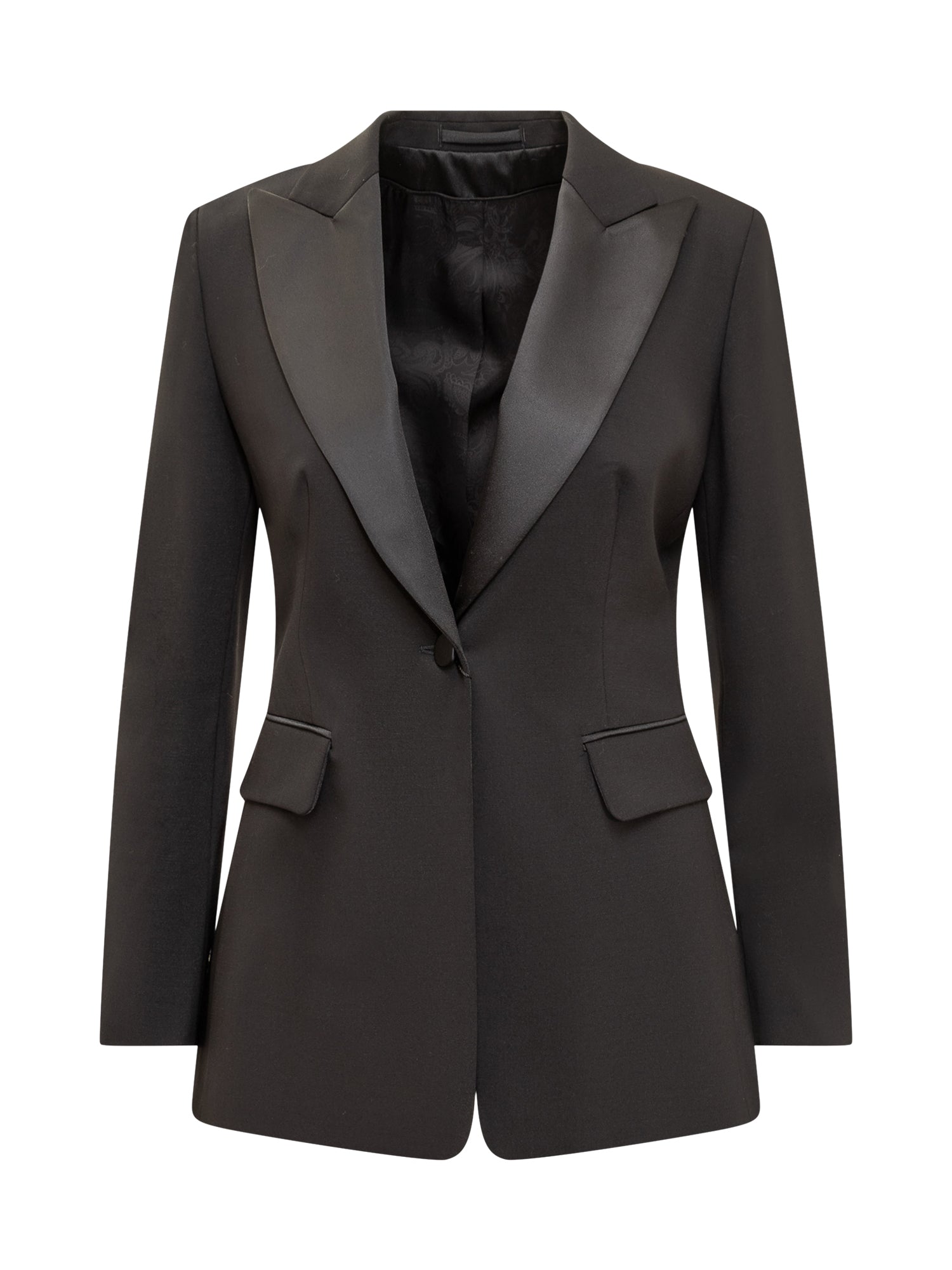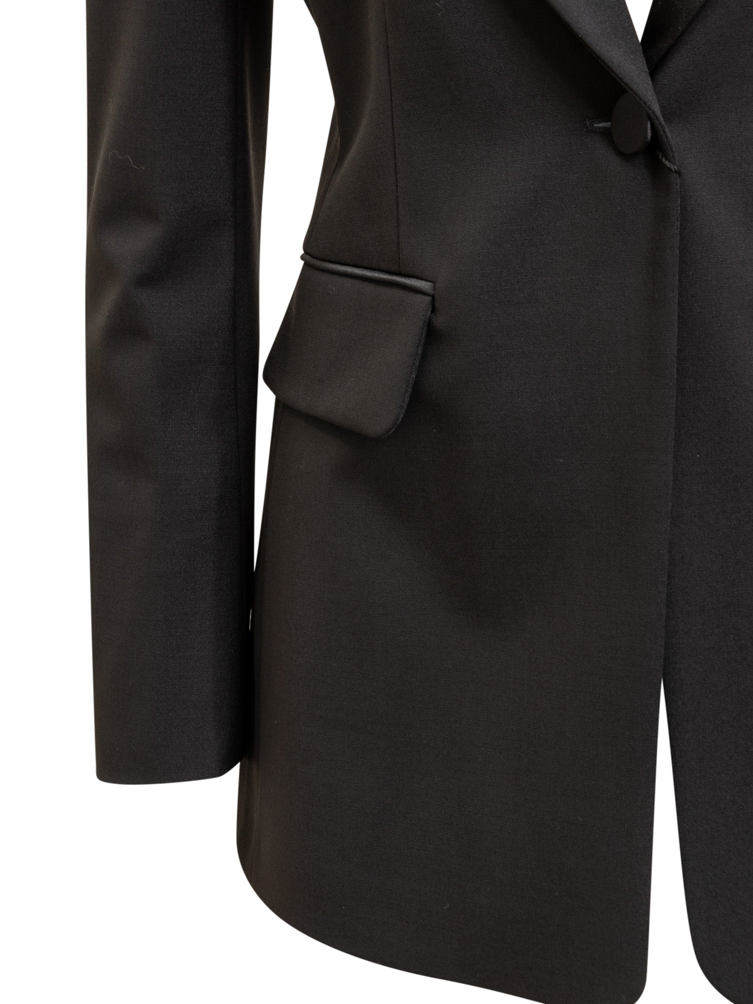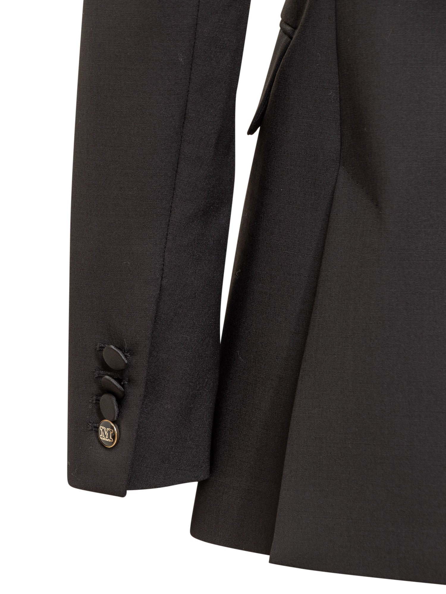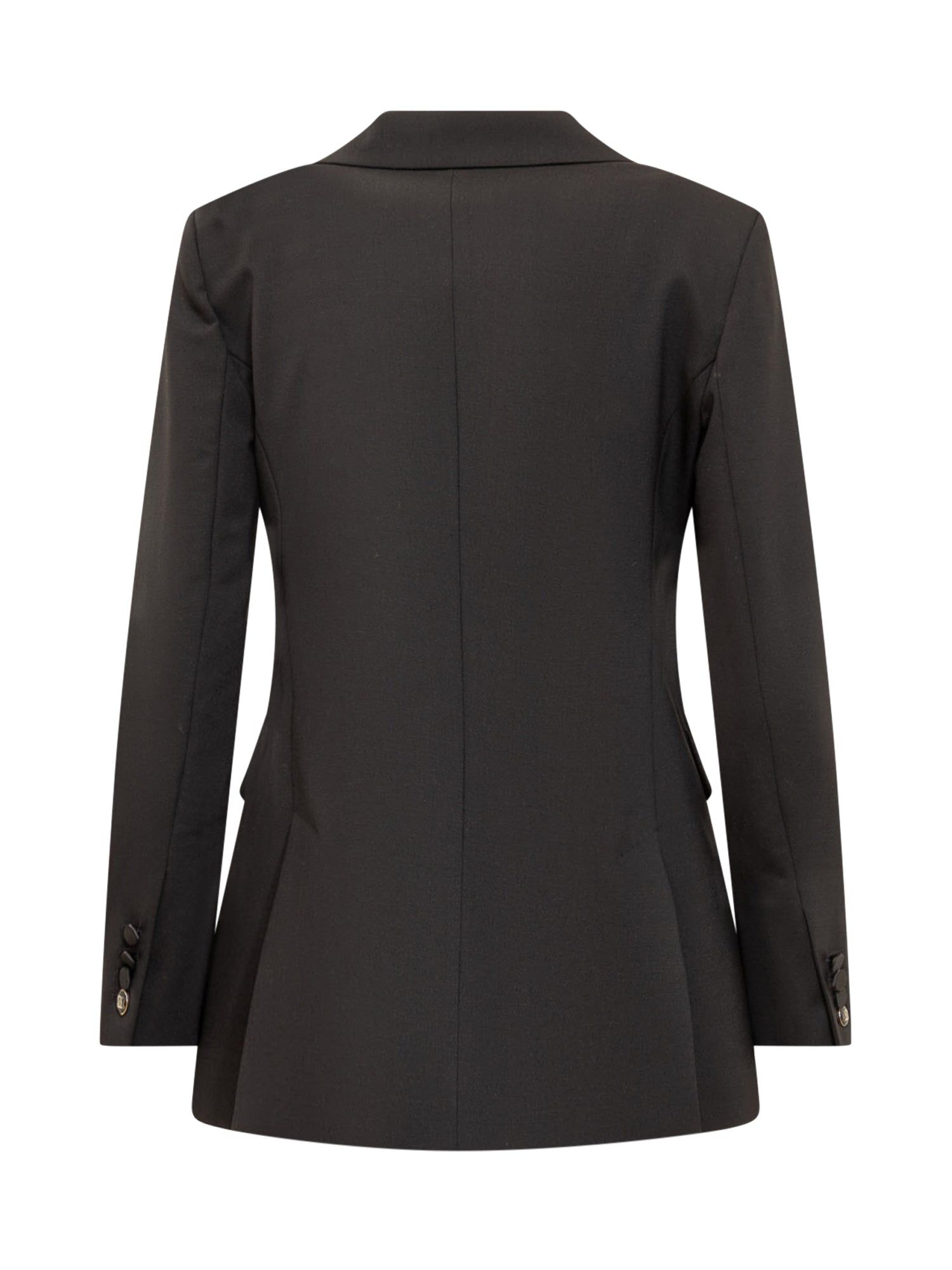 Blazer monopetto nero. Scollo a V sul davanti. Polsini con bottoni. Due tasche sul davanti.
