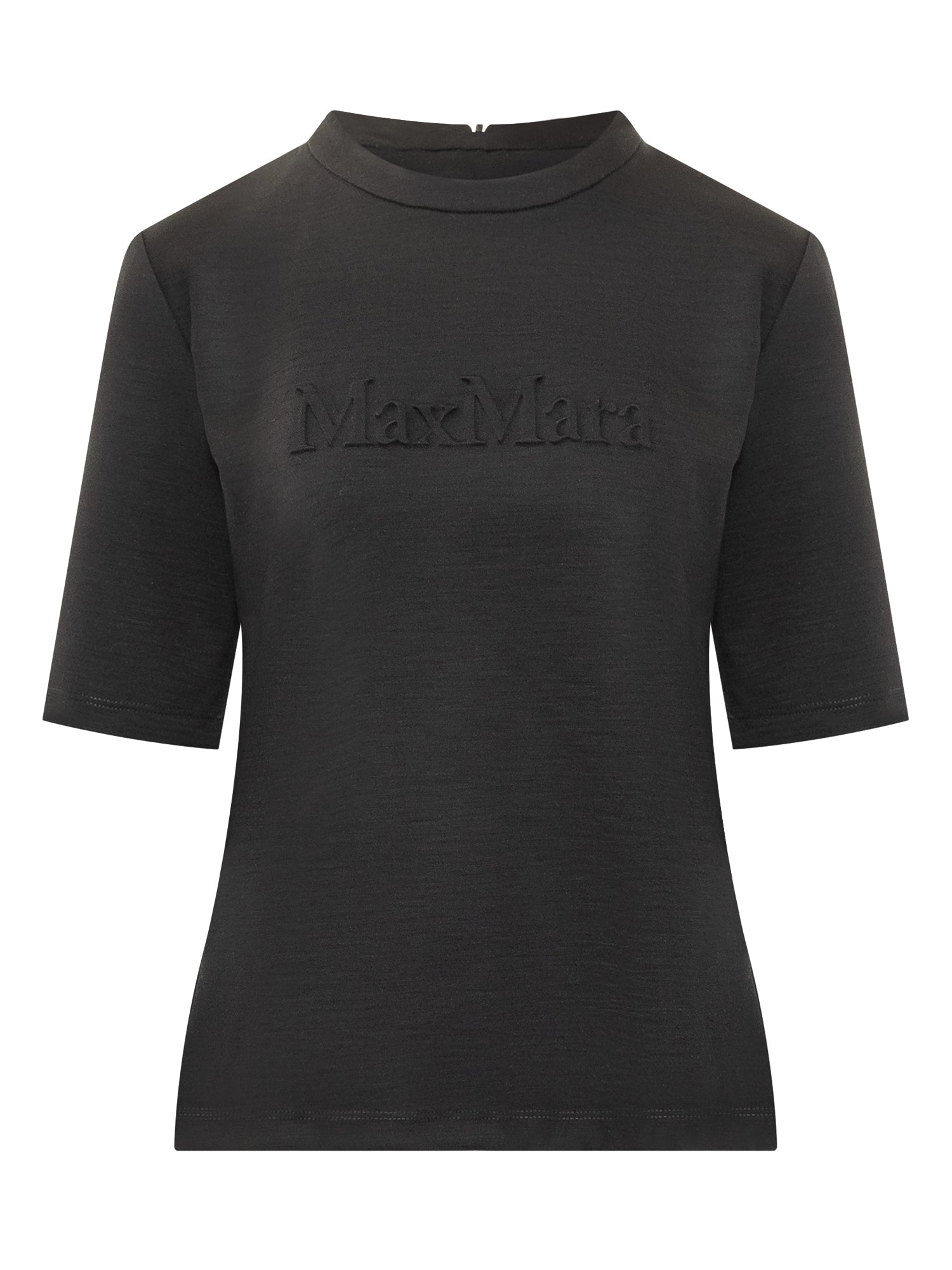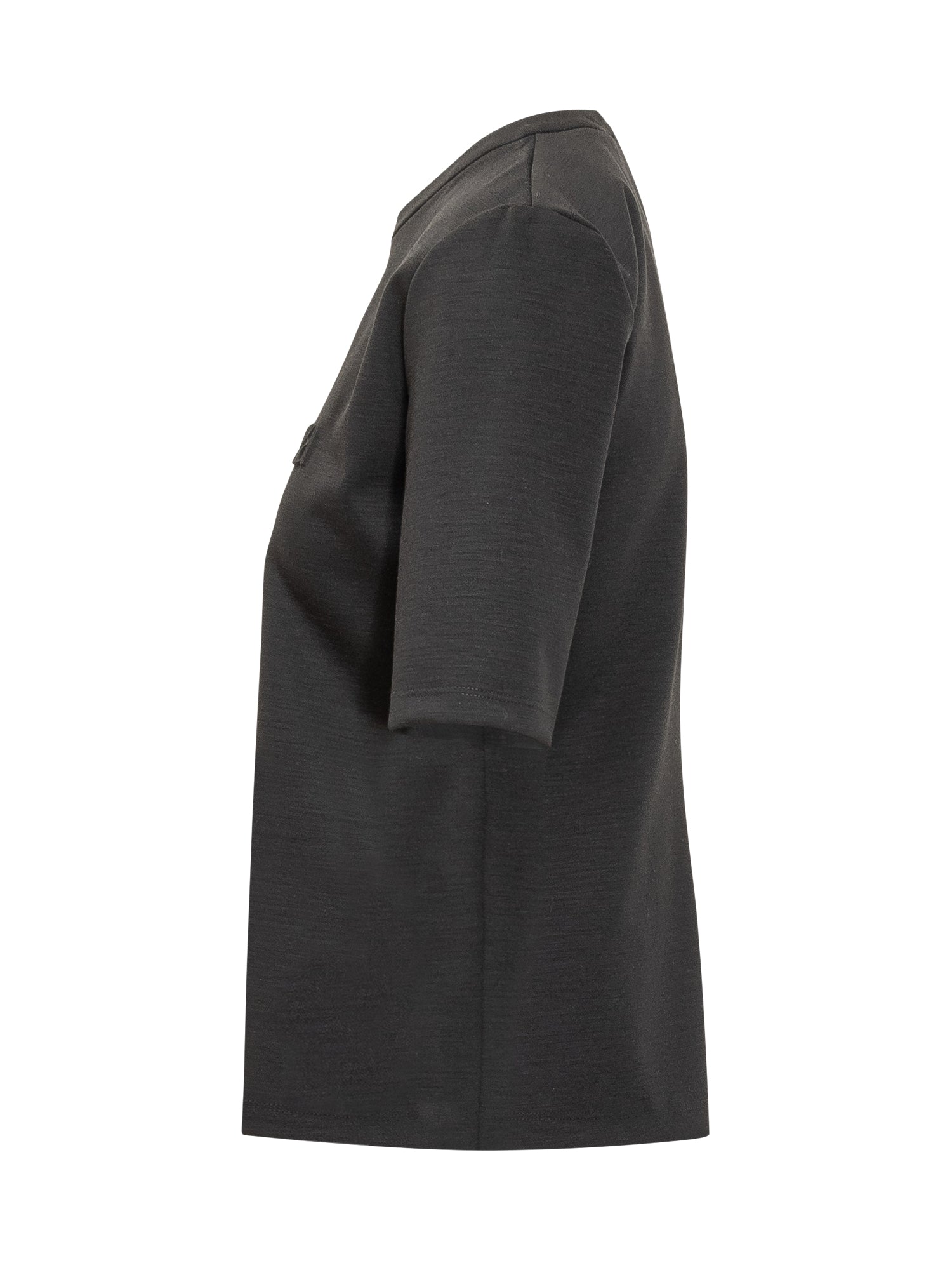T-Shirt nera. Maniche corte. Girocollo. Logo ricamato. Zip sul retro.