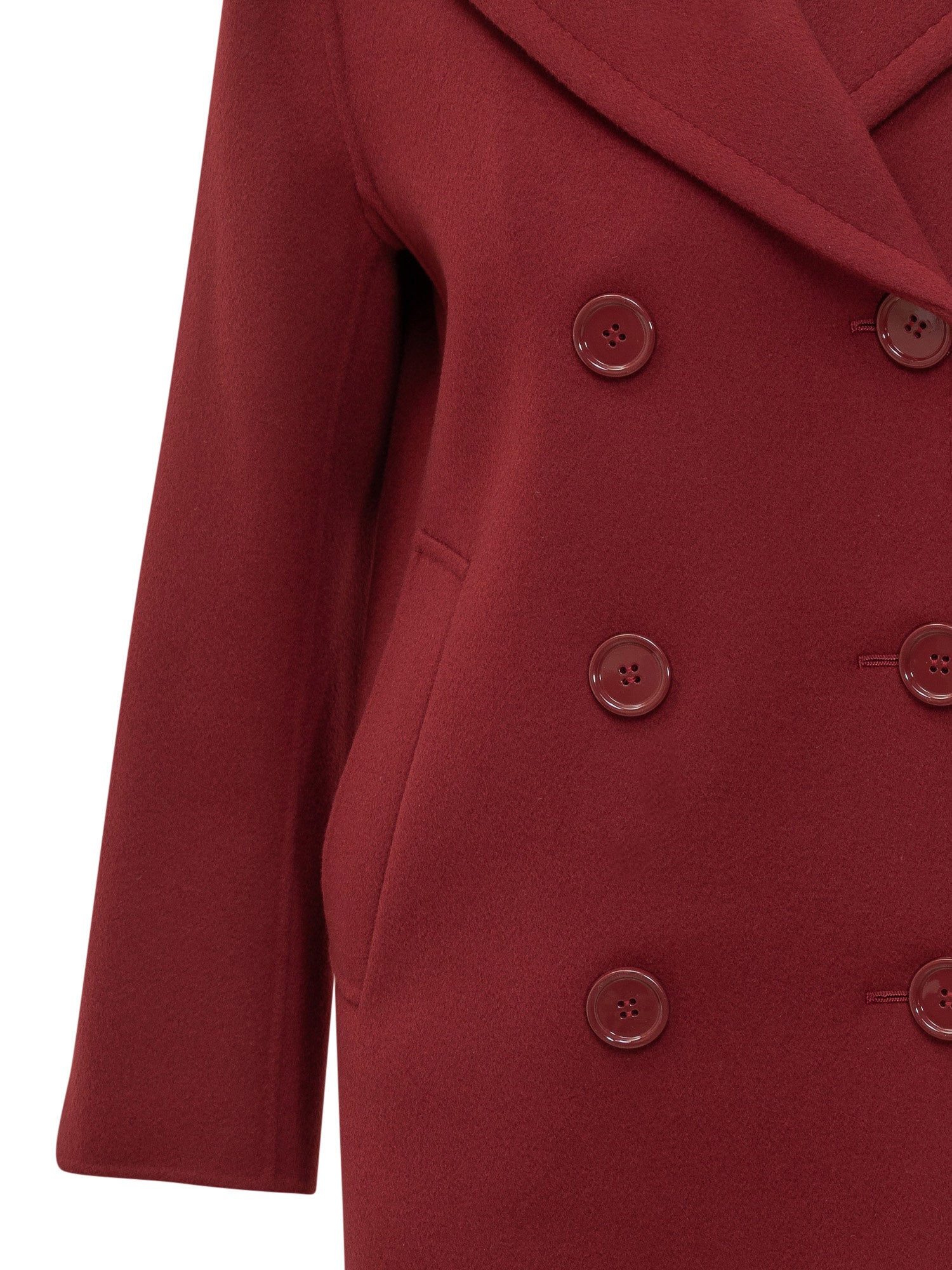 Giacca doppiopetto Max Mara S Elise in lana bordeaux con ampi revers e chiusura a bottoni.
