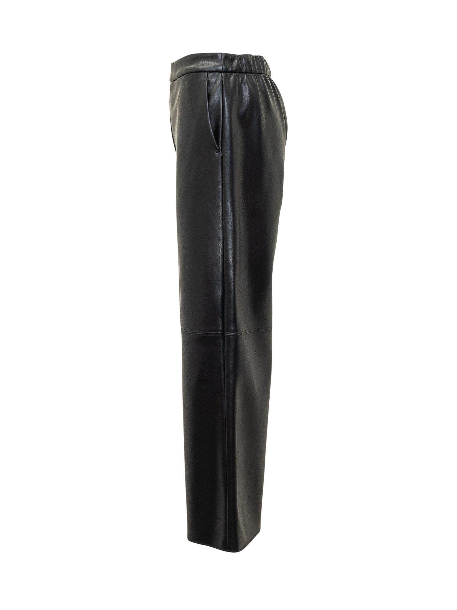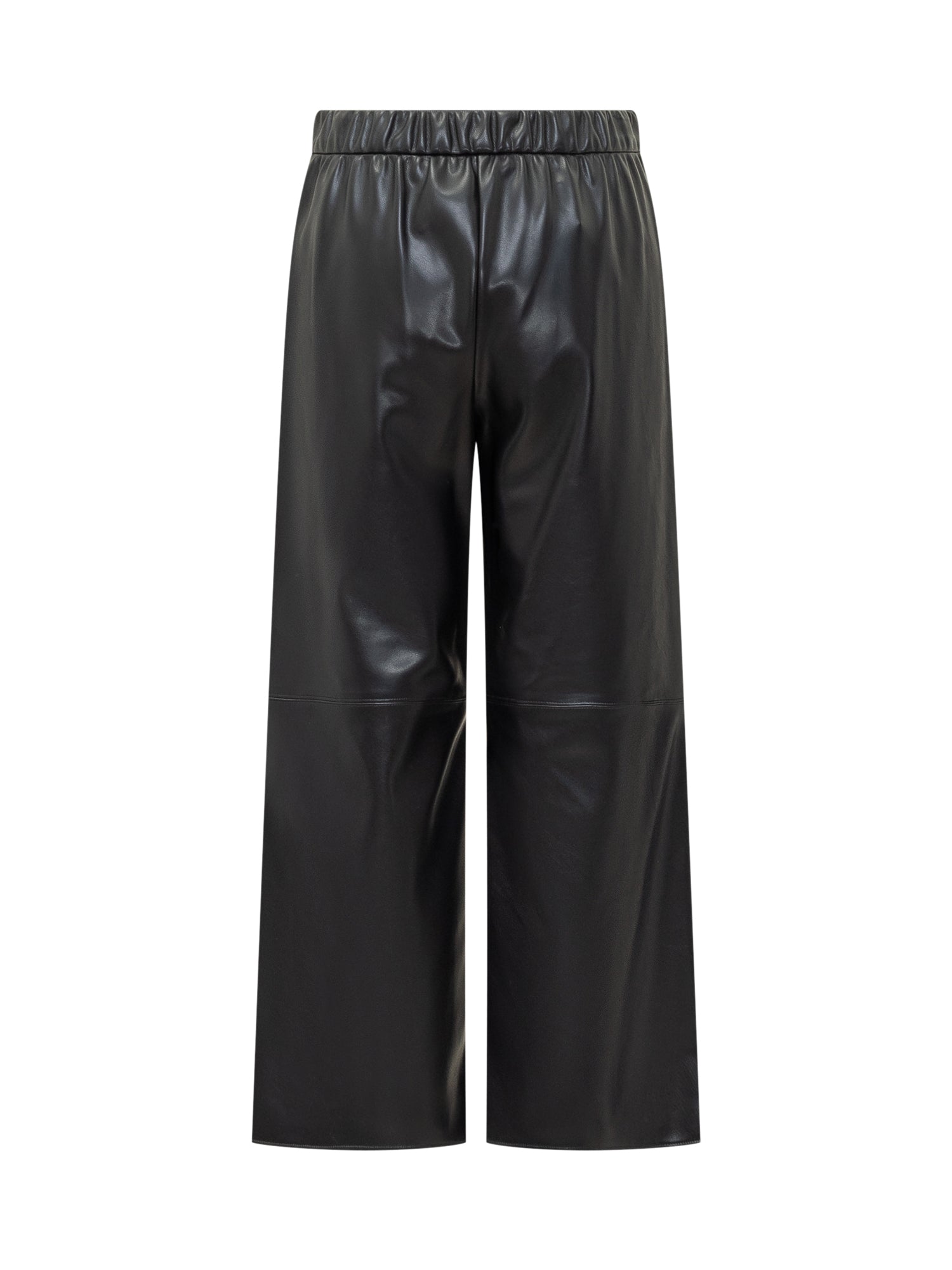Pantaloni culotte Max Mara Studio in pelle nera, caratterizzati da linea ampia e dritta.